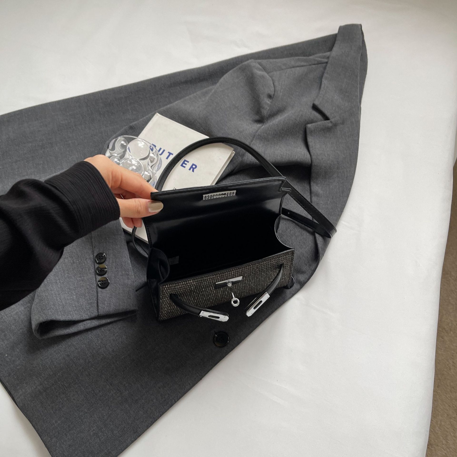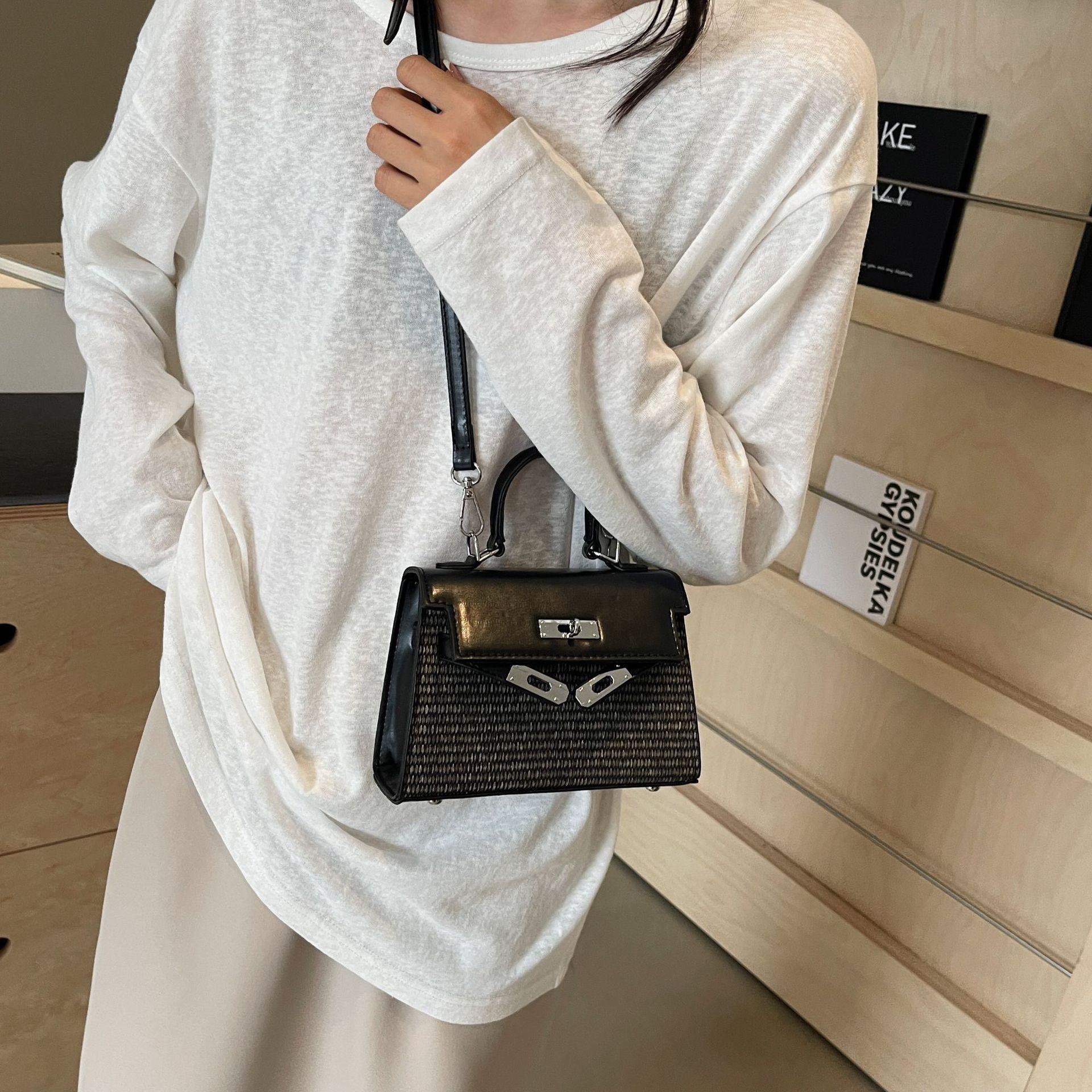 Bolso cuadrado pequeño portátil de alta gama para mujer, bolso de hombro de moda de estilo coreano, bolso Kelly sencillo de nicho de verano 2024 para mujer