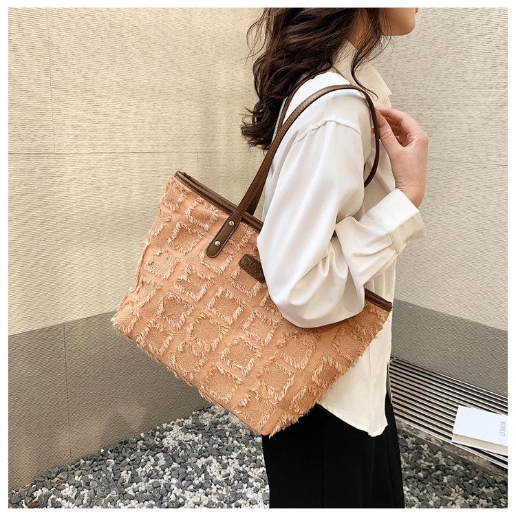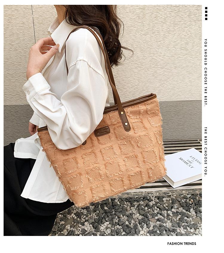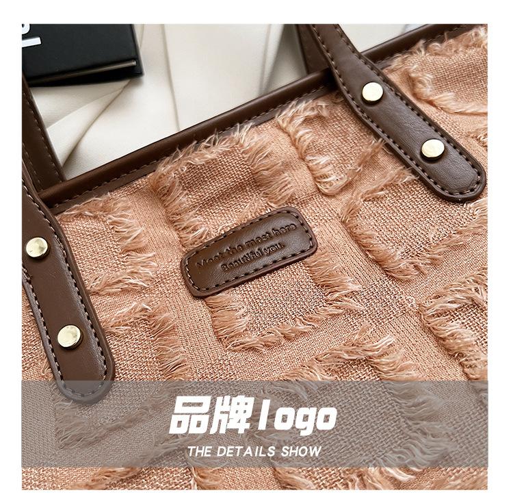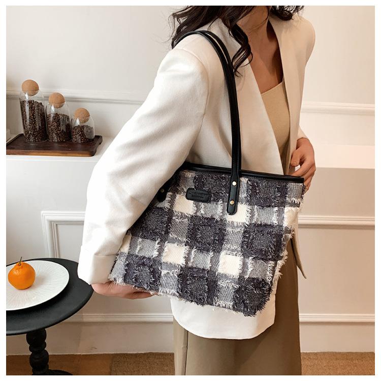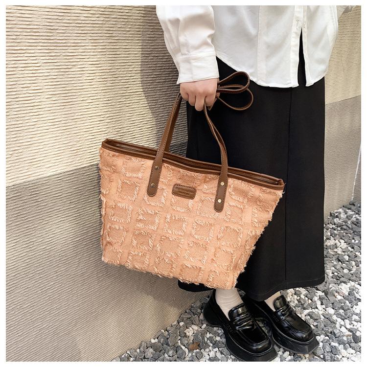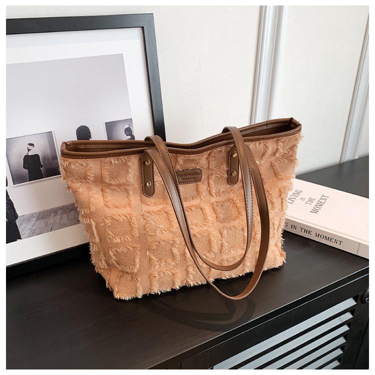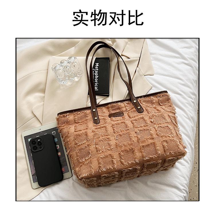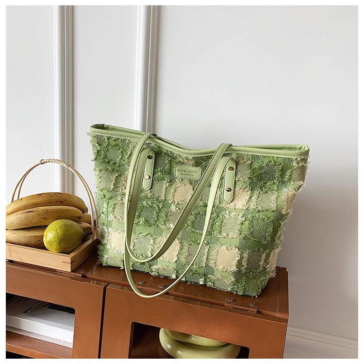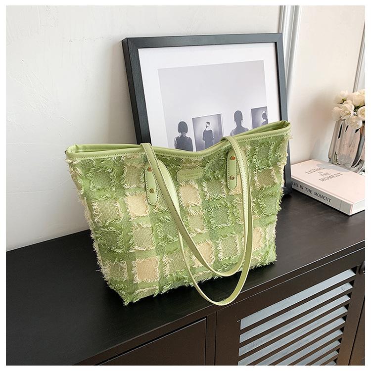 Bolsa de Lona para Mujer de Gran Capacidad 2023 Nuevo Verano Combinable Bolso de Hombro para Compras Textura a Cuadros Bolso Tote para Ir al Trabajo