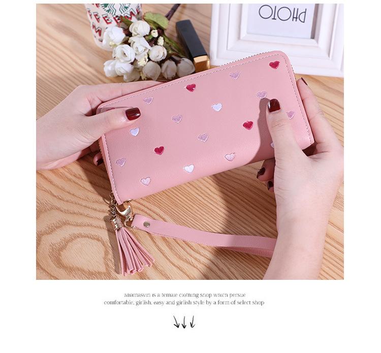 Cartera larga Love 2020 para mujer, bolso de mano con borlas, estilo japonés y coreano, de gran capacidad, con cremallera