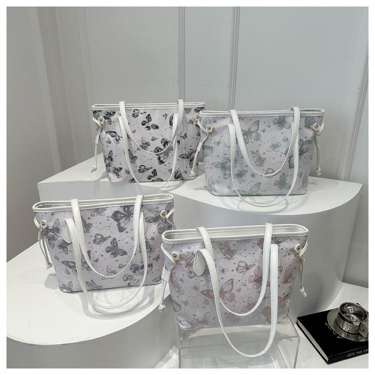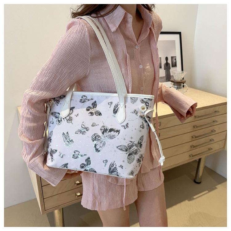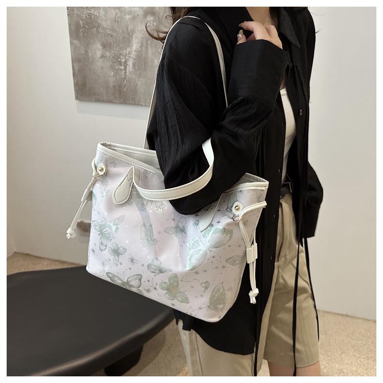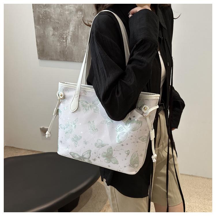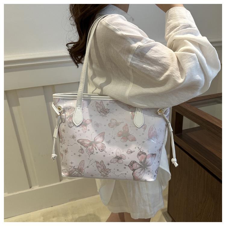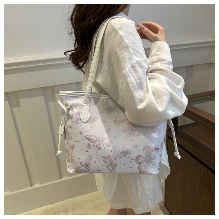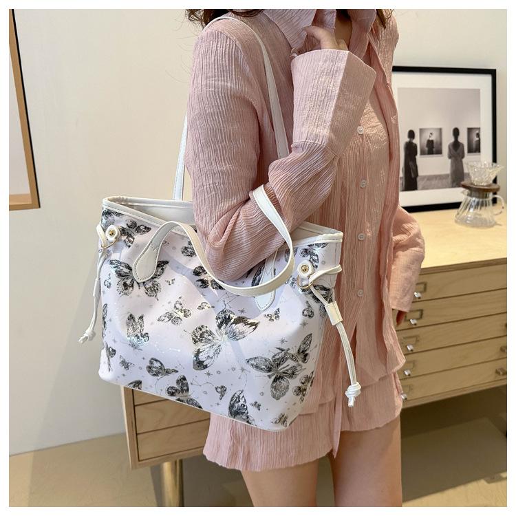 Bolso Alto para Viajeros Bolso de Gran Capacidad para Mujer para Clase Nueva Moda Mariposa Combinable Casual Estudiante Universitario Bolso Tote de Hombro
