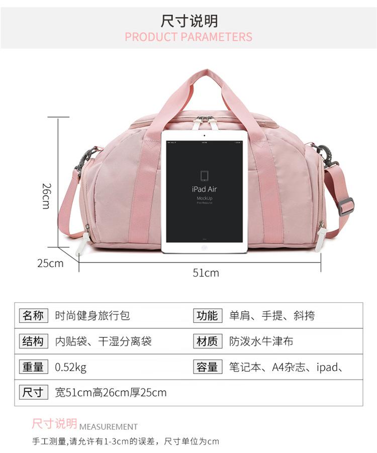 Bolsa de viaje de corta distancia para hombre y mujer de gran capacidad, bolsa de almacenamiento de equipaje de fitness con separación húmeda y seca para viaje, bolso de mano pendiente