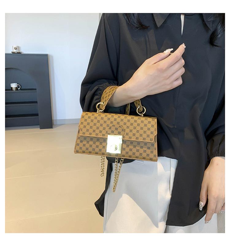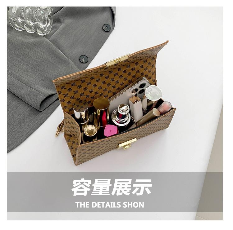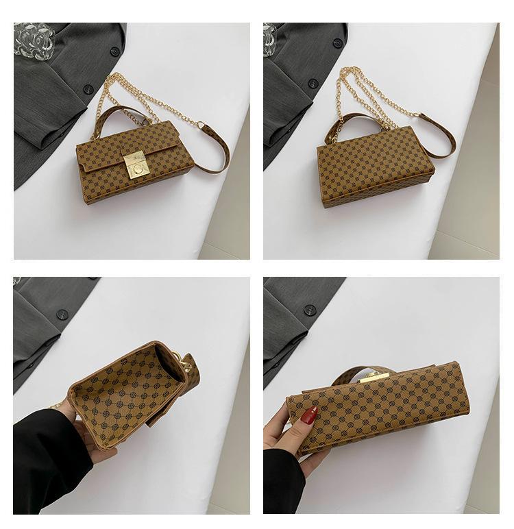 Bolso de mano 2024, nuevo bolso de hombro cruzado retro con estampado de moda para mujer, elegante y moderno, con cierre, pequeño bolso cuadrado.