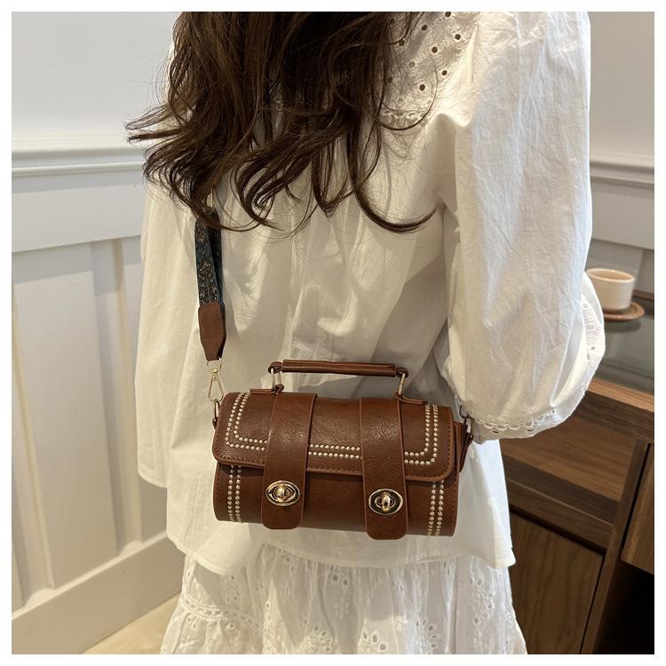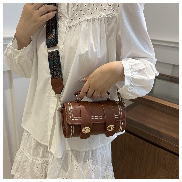 Bolso Retro Nicho para Mujer 2025 Nuevo Bolso Bandolera Versátil de Moda Trendy Bolso Satchel Trendy Bolso Cilíndrico Boston