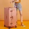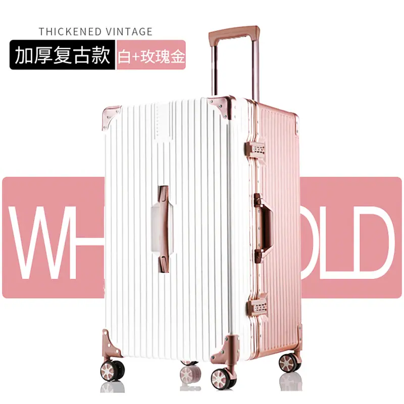 Maleta de aluminio con ruedas para mujer, resistente y duradera, para estudiantes, gran capacidad, tamaño grande, con contraseña, para viaje y embarque