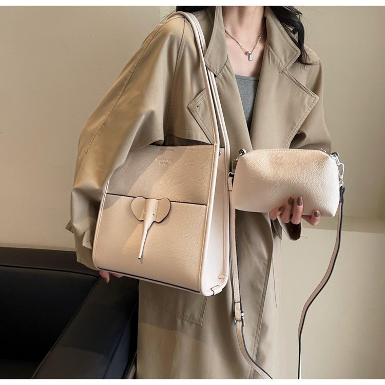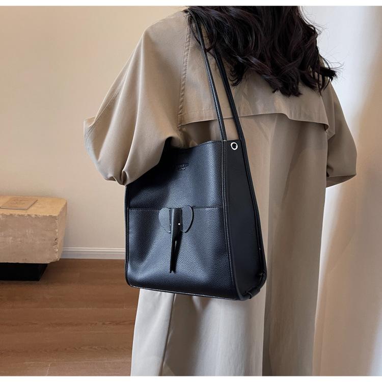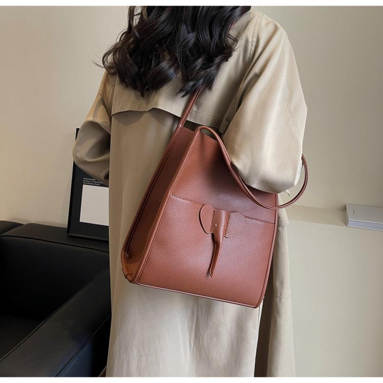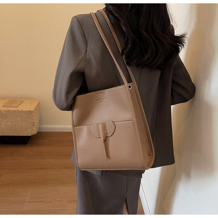 Bolso de mano para mujer, bolso bandolera de gran capacidad para otoño e invierno 2023, nueva textura, bolso de hombro retro, bolso tipo cubo para niños y madres.