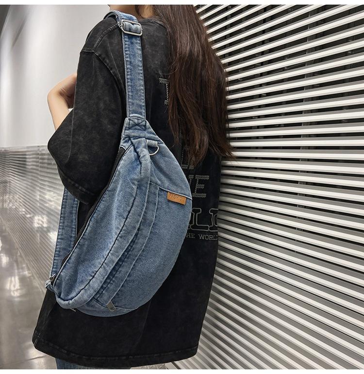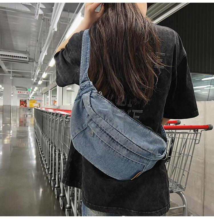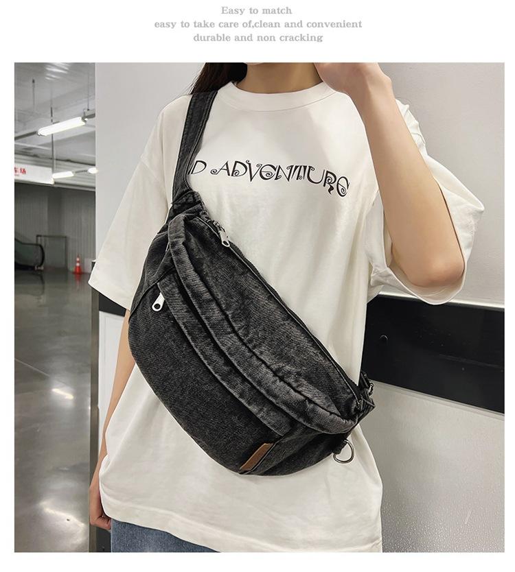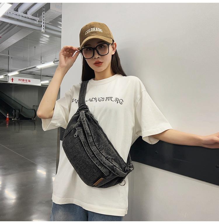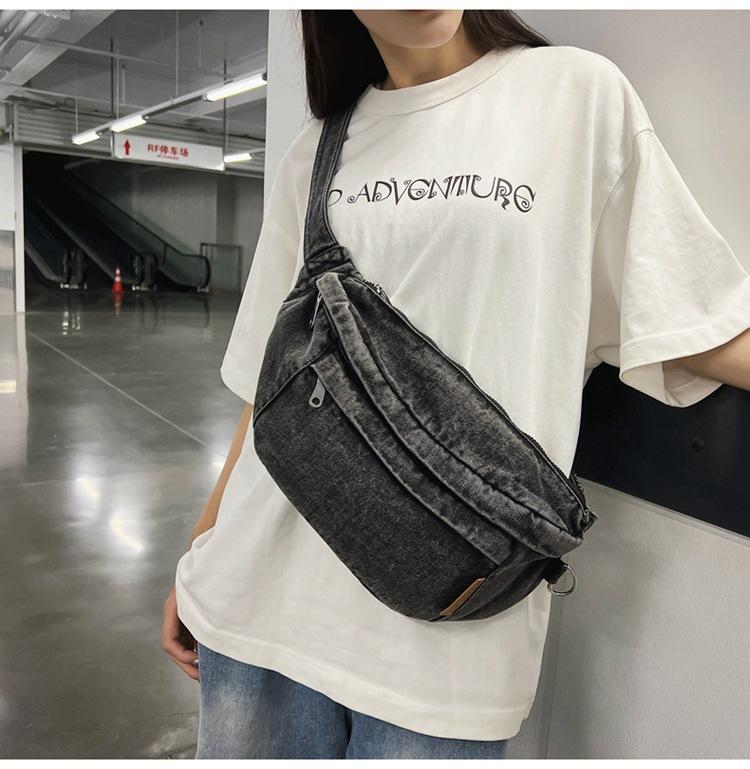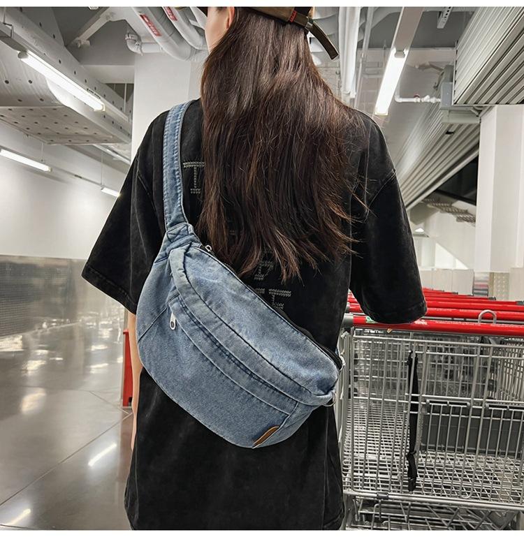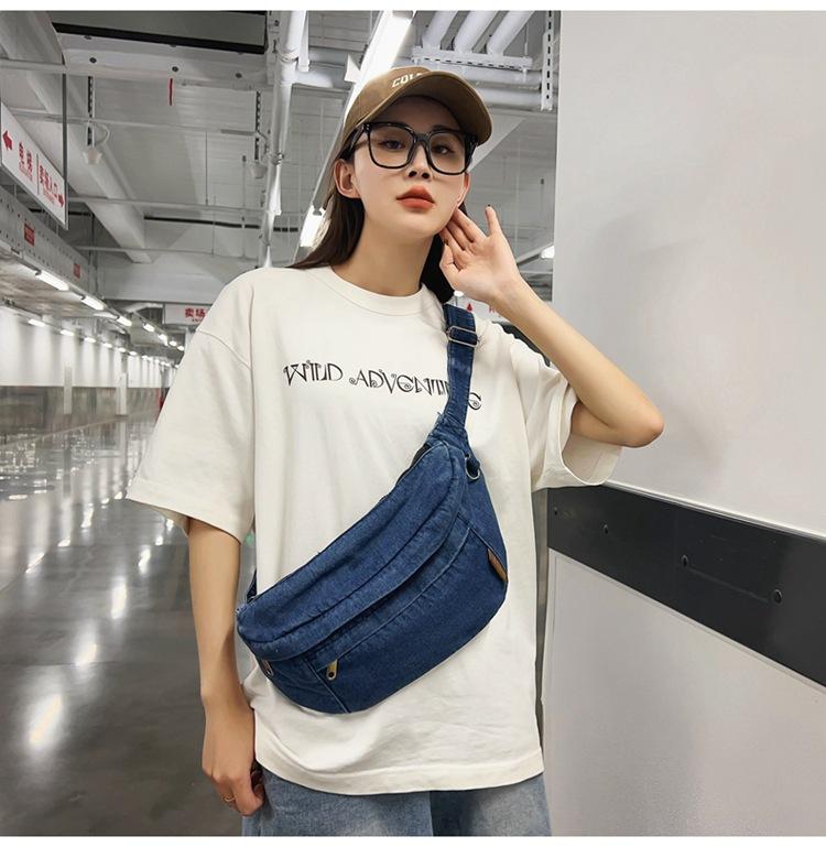 Bolso estilo Harajuku de Hong Kong, bandolera para mujer, versátil bolso de mezclilla para el pecho, riñonera para hombre, bolso de hombro para estudiante de la marca Ruiying Tide
