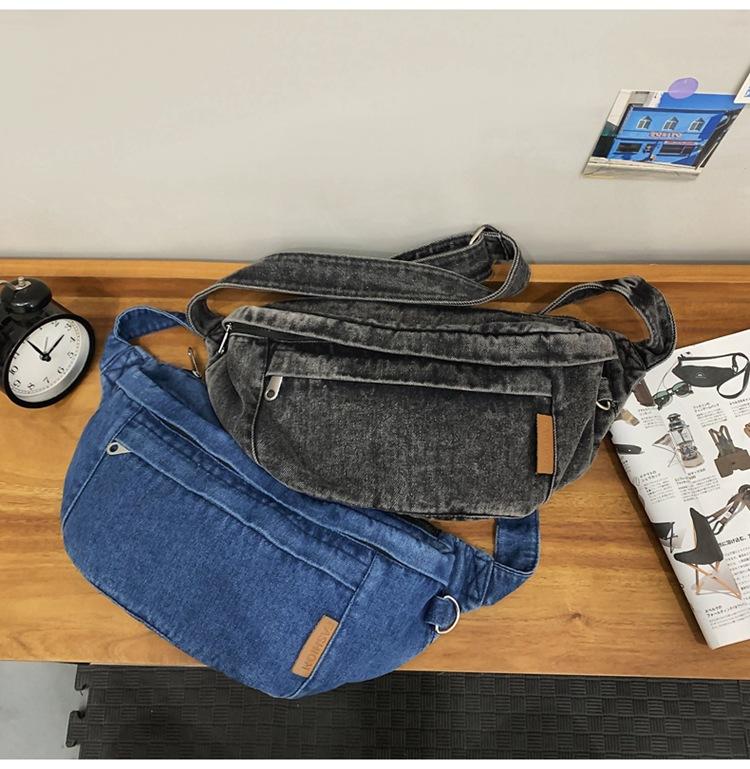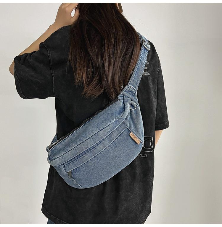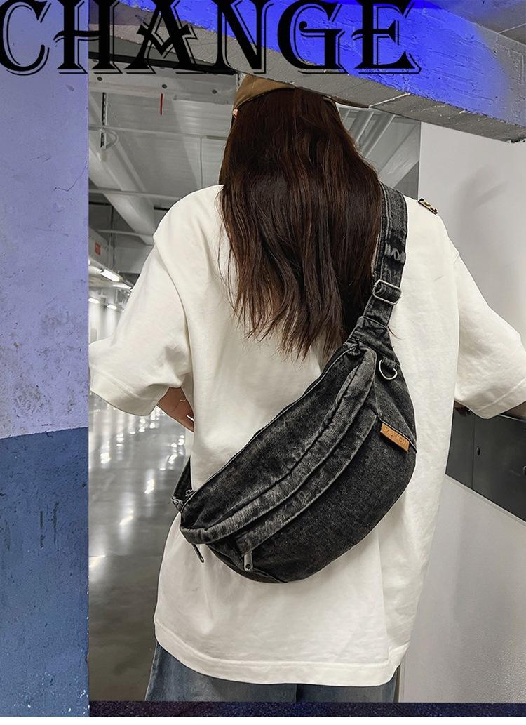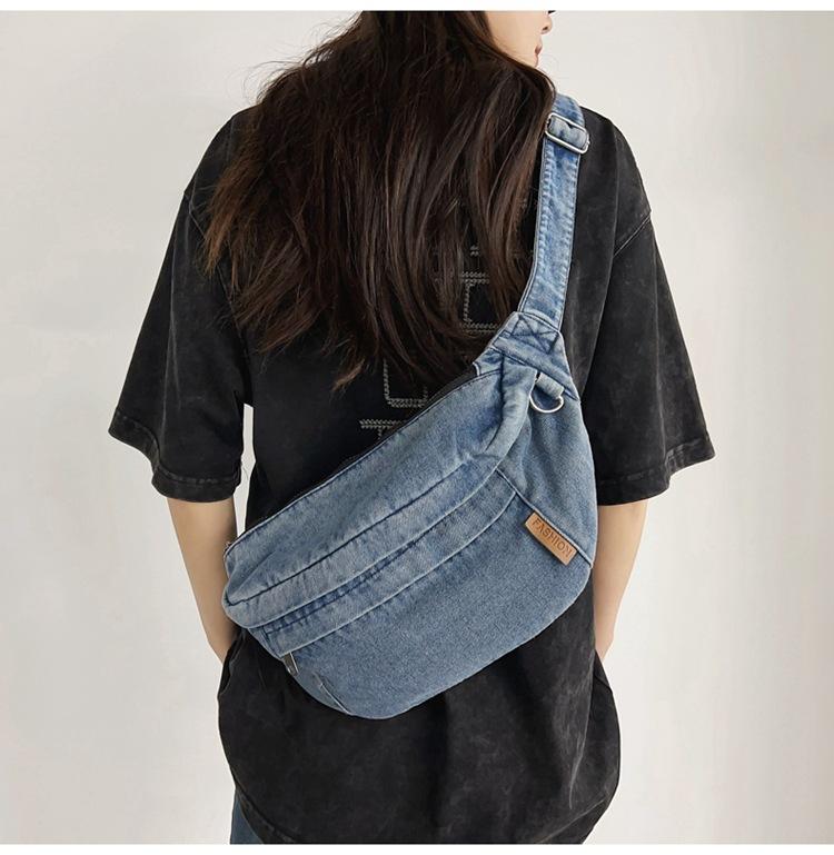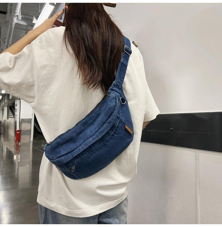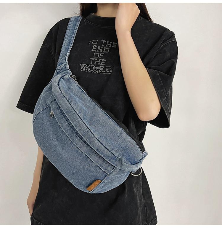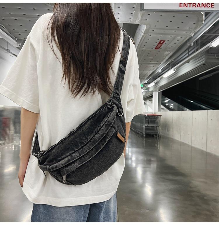 Bolso estilo Harajuku de Hong Kong, bandolera para mujer, versátil bolso de mezclilla para el pecho, riñonera para hombre, bolso de hombro para estudiante de la marca Ruiying Tide