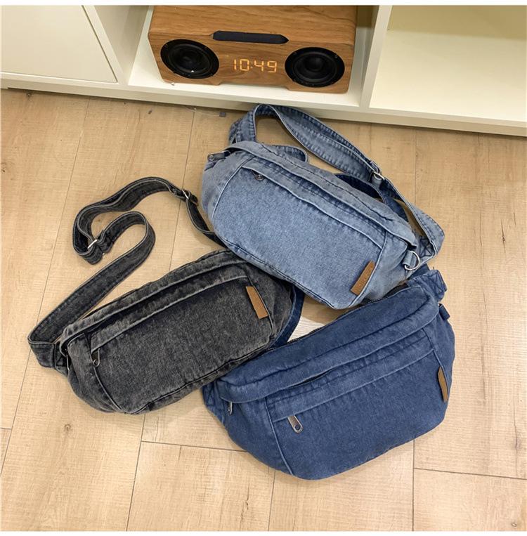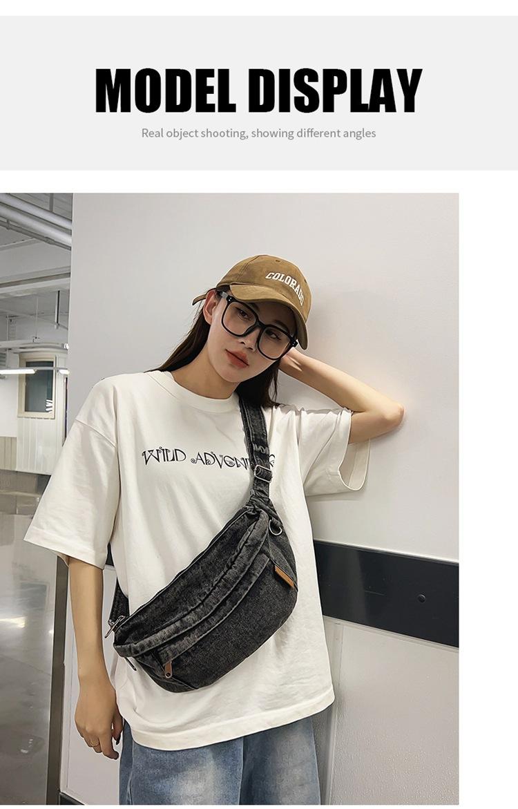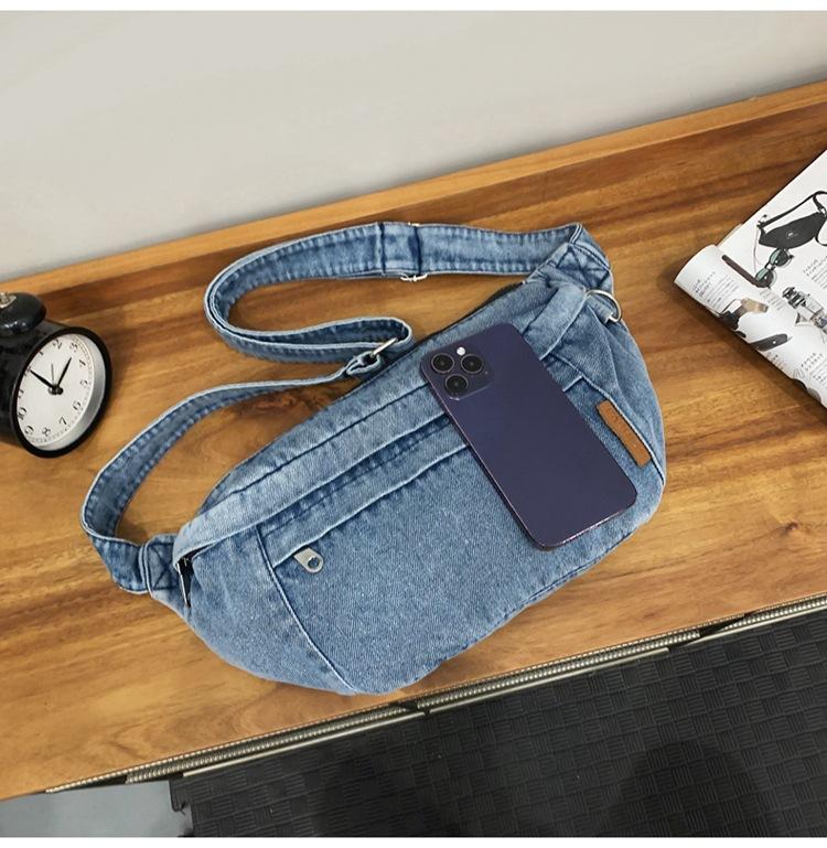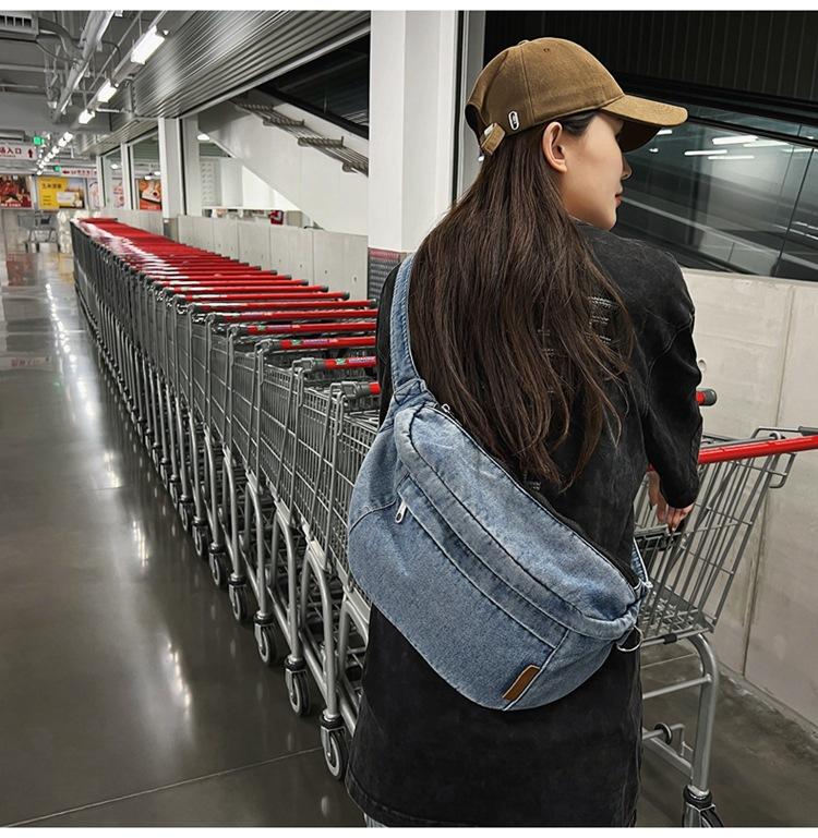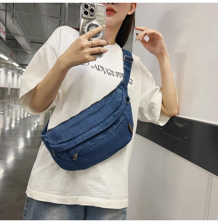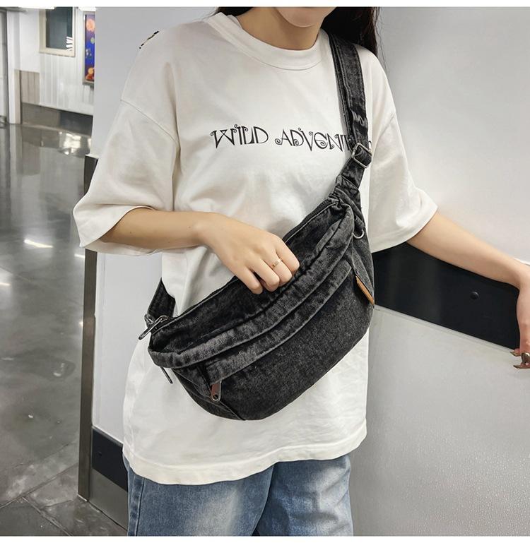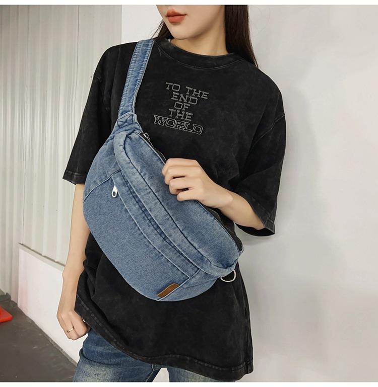 Bolso estilo Harajuku de Hong Kong, bandolera para mujer, versátil bolso de mezclilla para el pecho, riñonera para hombre, bolso de hombro para estudiante de la marca Ruiying Tide