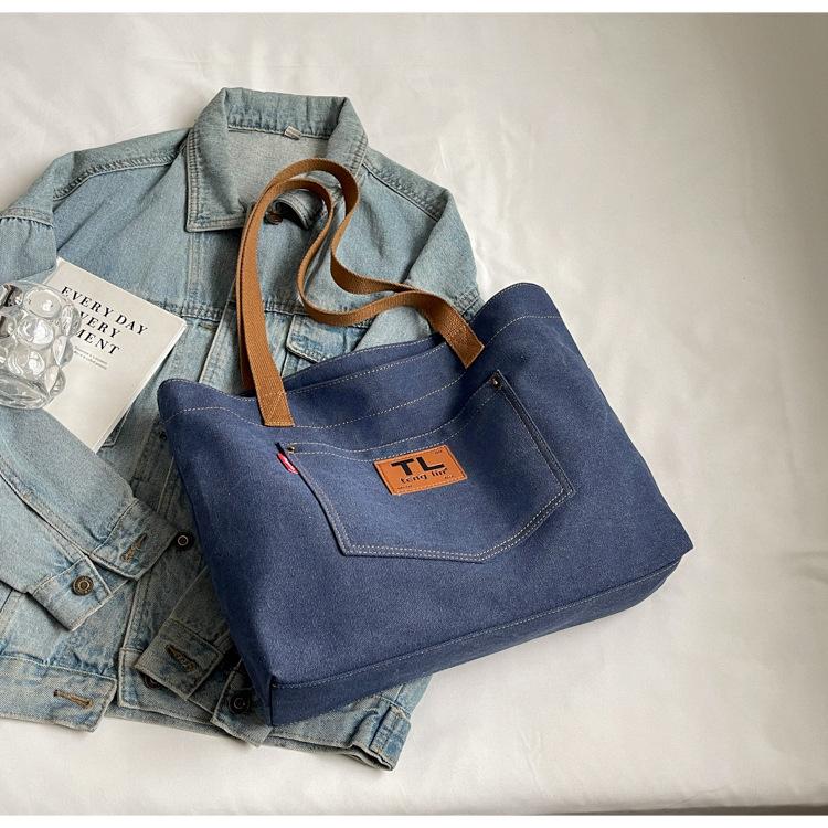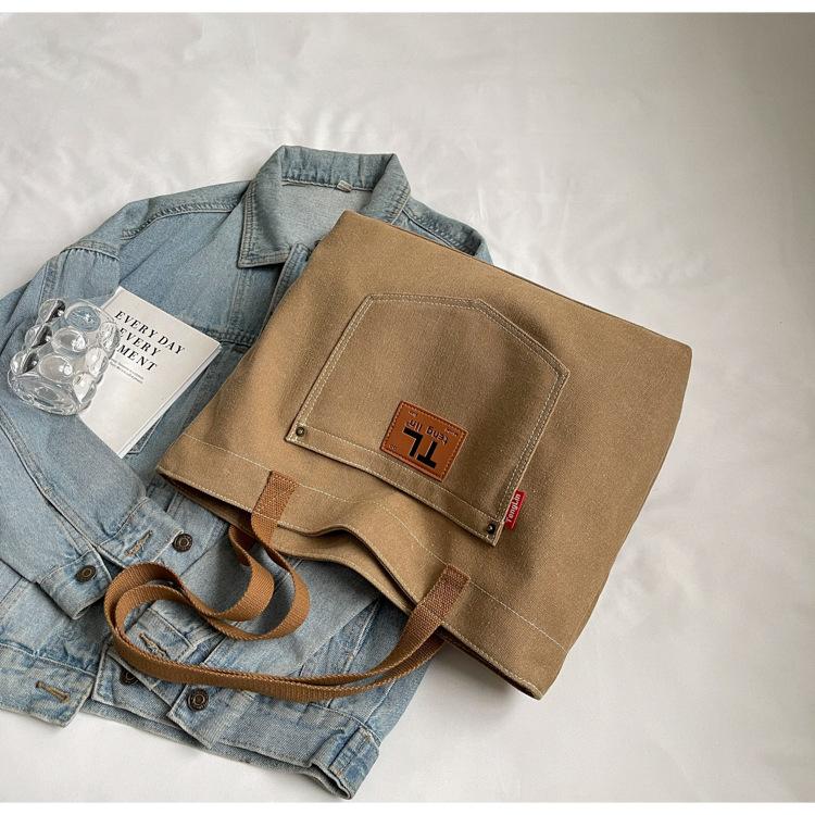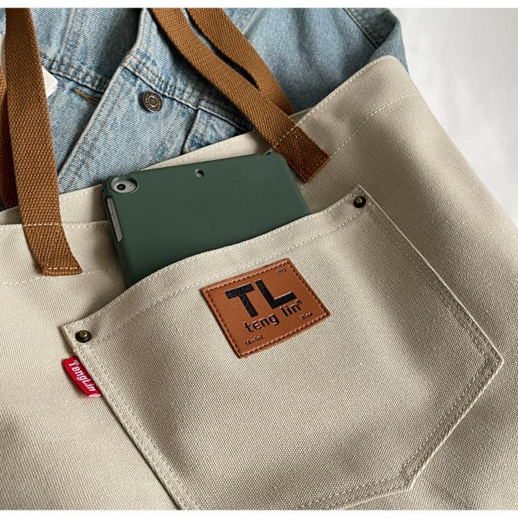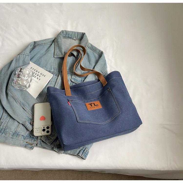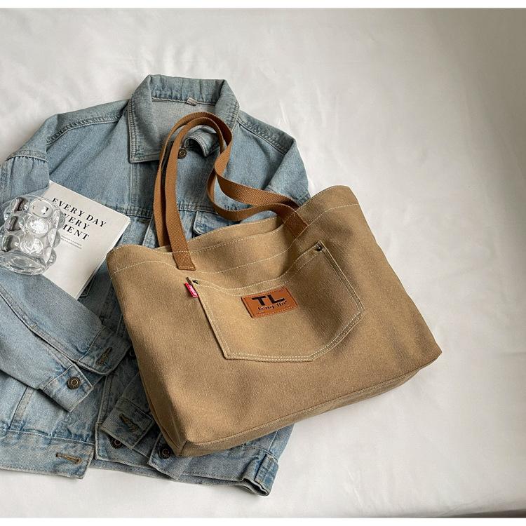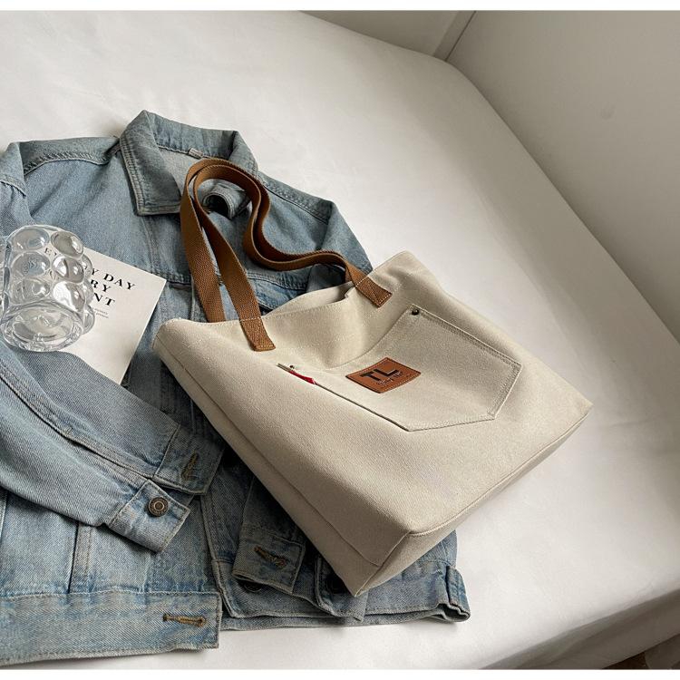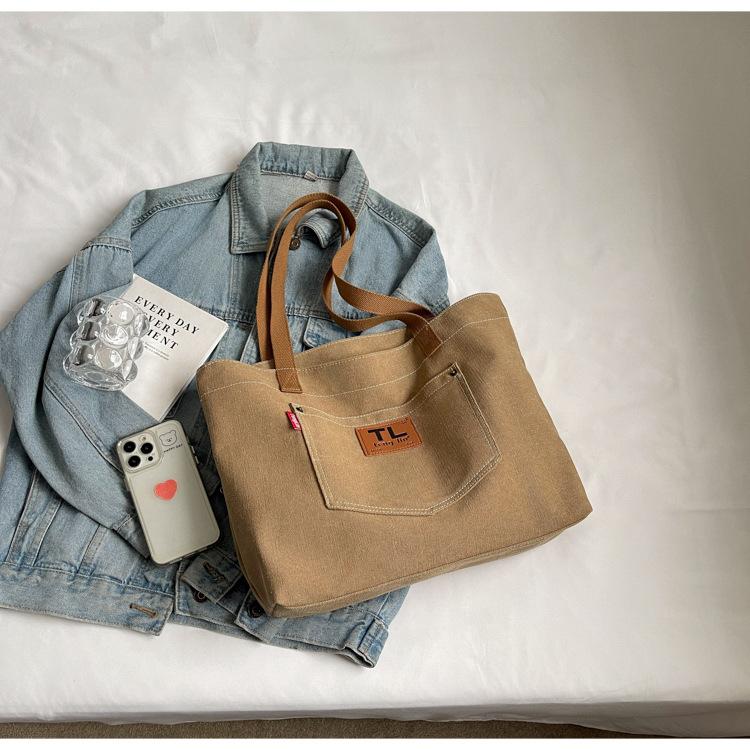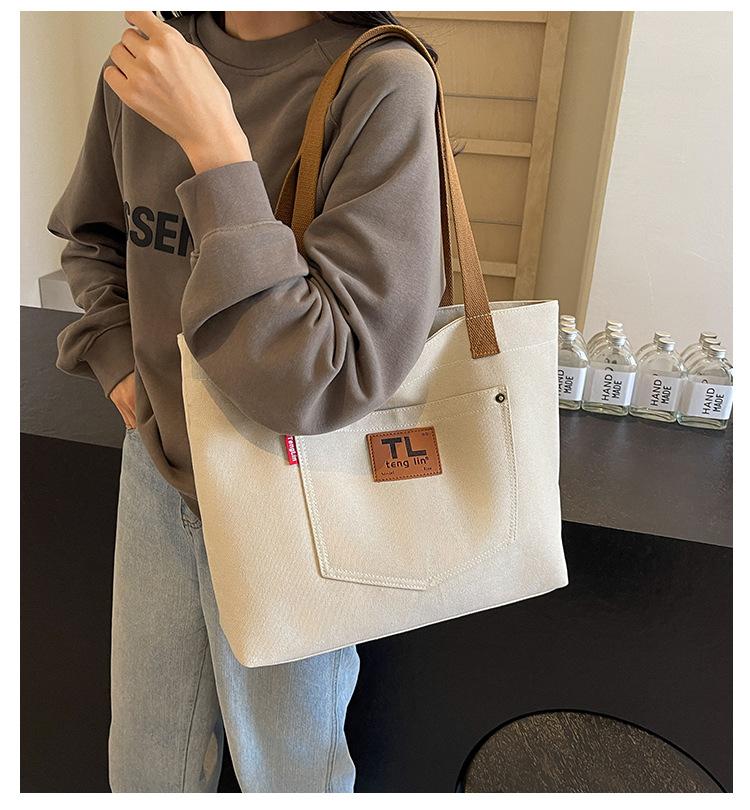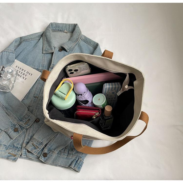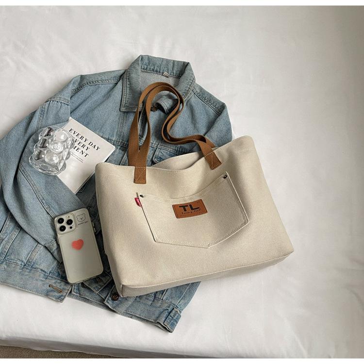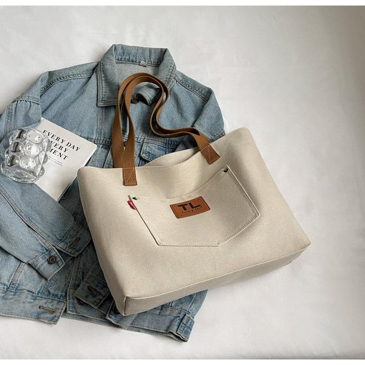 Bolso de Lona para Mujer 2025 Nuevo Popular Bolso de Hombro Bolso Tote de Gran Capacidad Verano Estudiante Clase Bolso para Ir al Trabajo