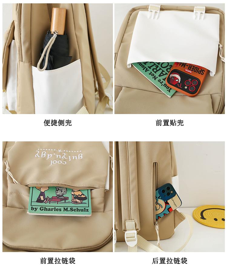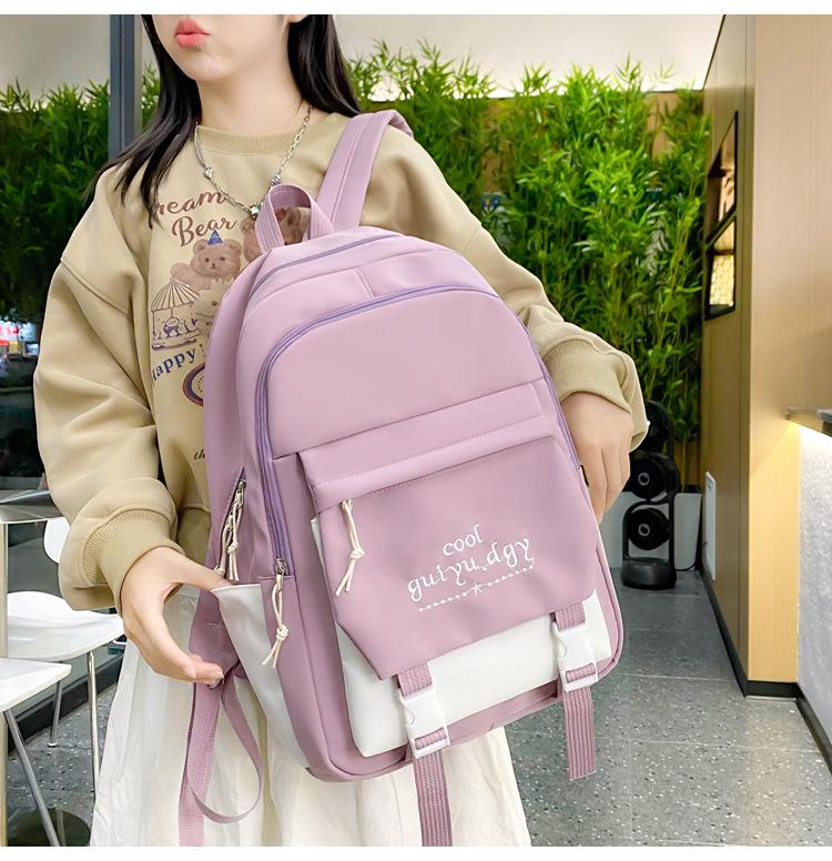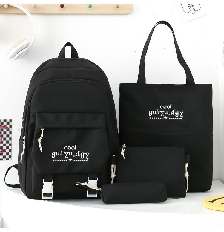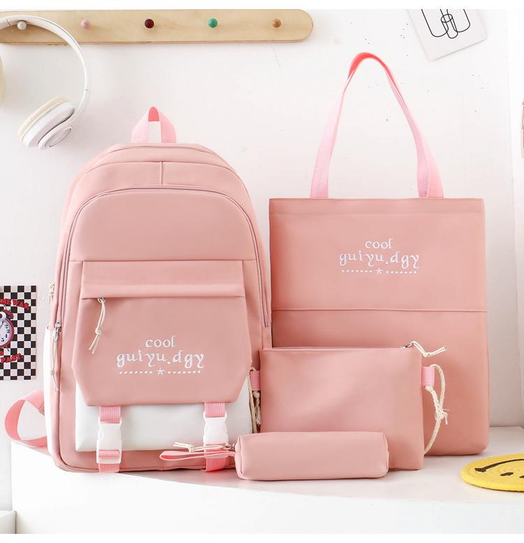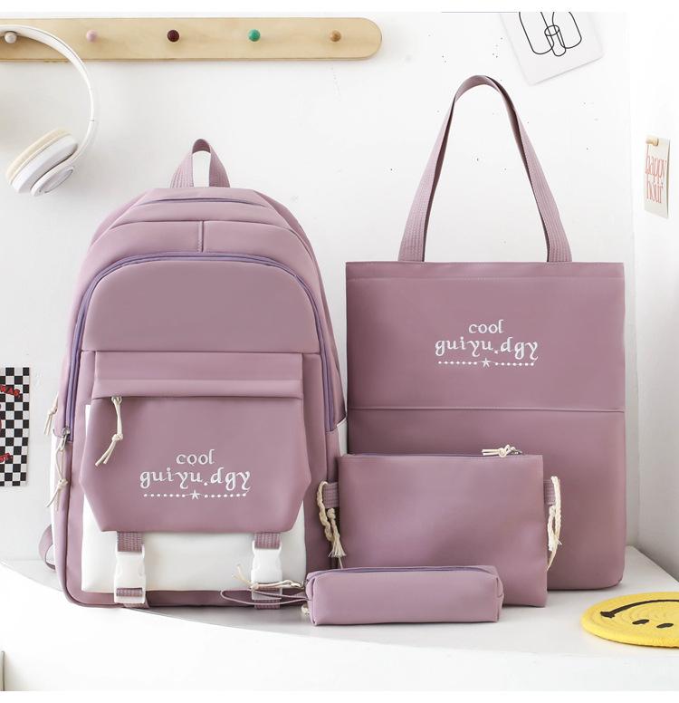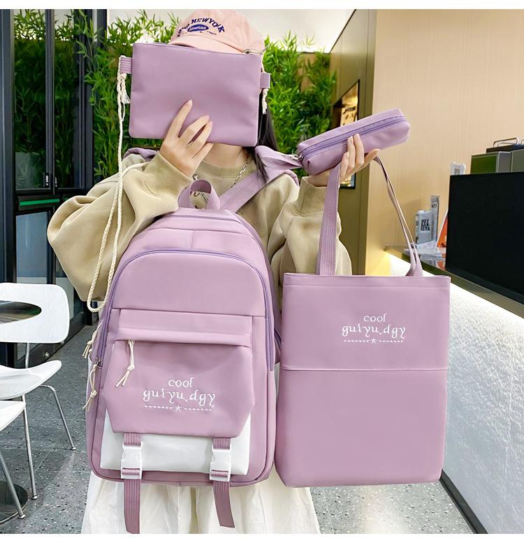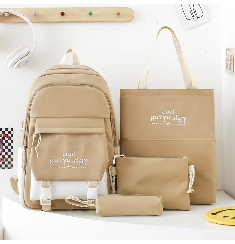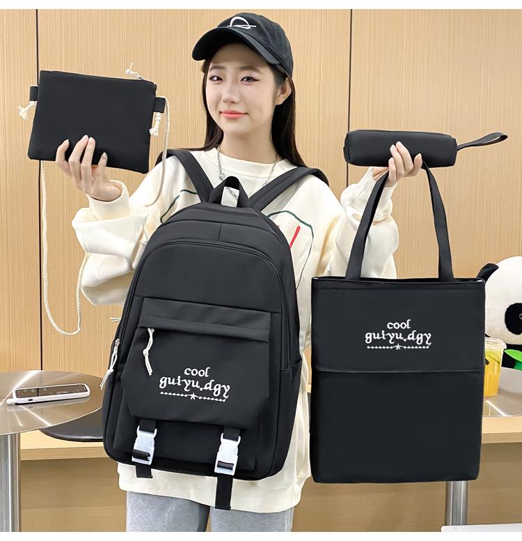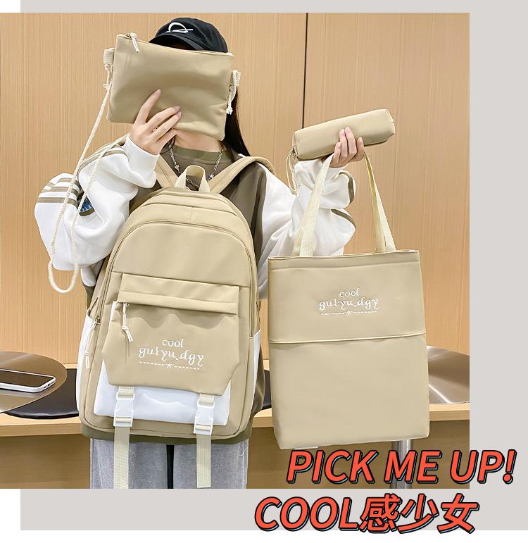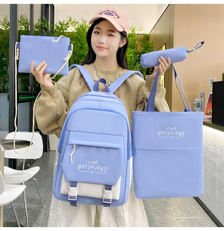 Mochila Escolar para Estudiantes de Cuatro Piezas 2025 Nueva Moda Gran Capacidad Casual Mochila de Viaje Color Sólido Mochila Simple