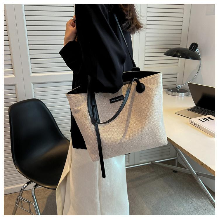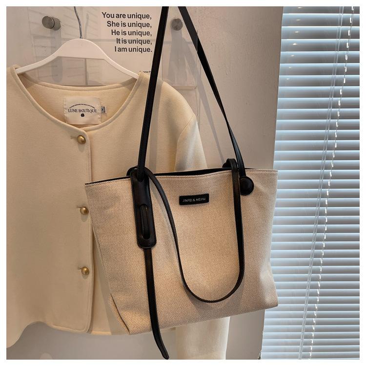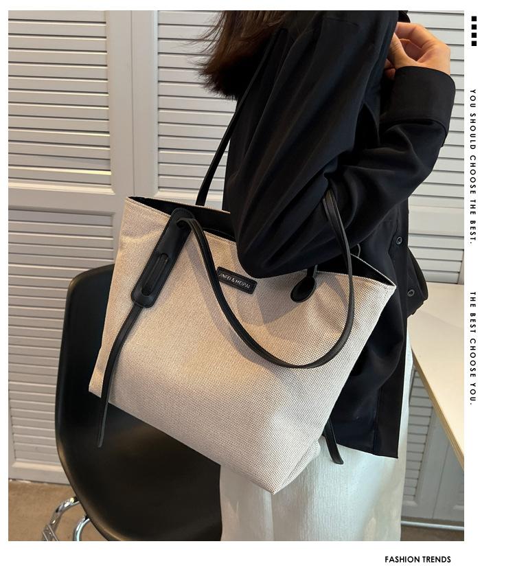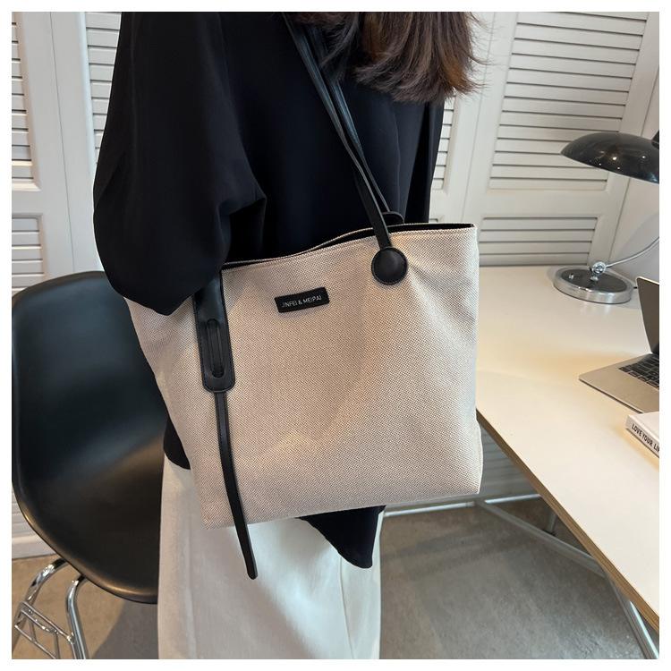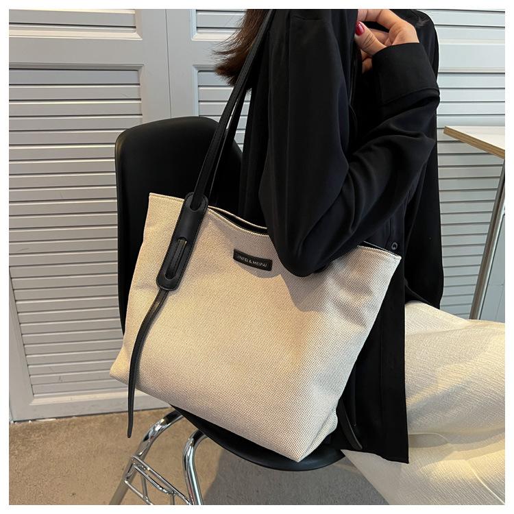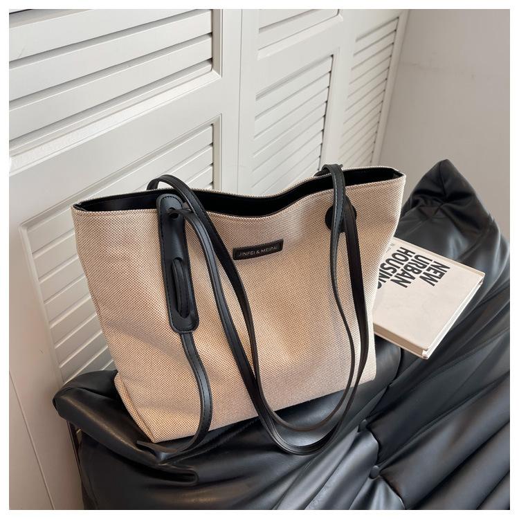 Bolso de Lona para Mujer de Gran Capacidad 2023 Nueva Llegada Verano Combinable Bolso de Hombro Texturizado Sencillo Clase Viajero Bolso Tote