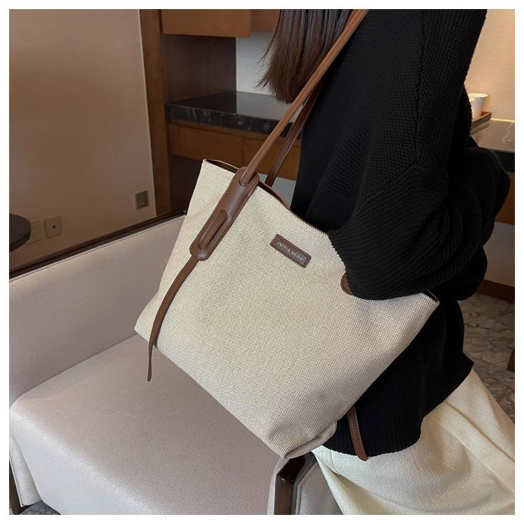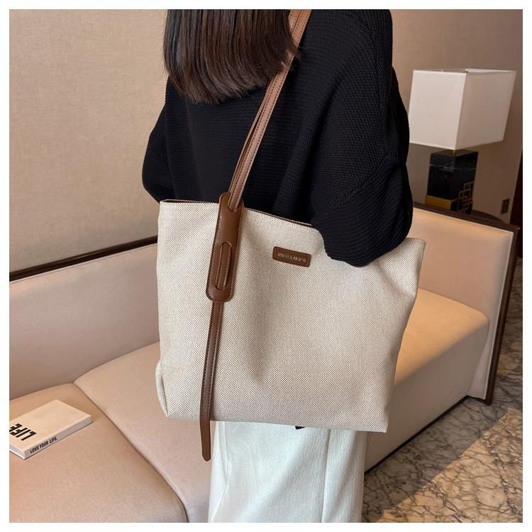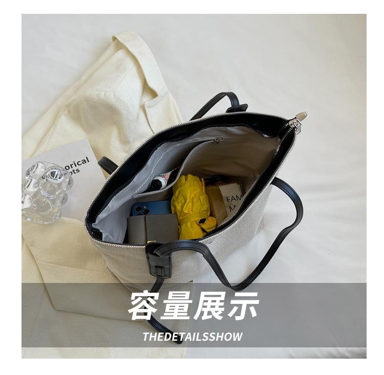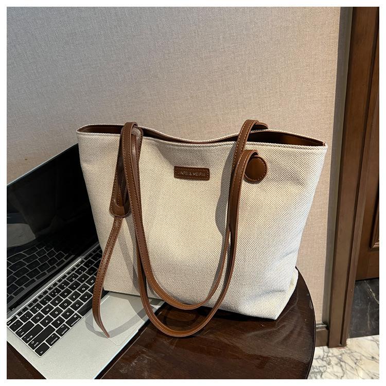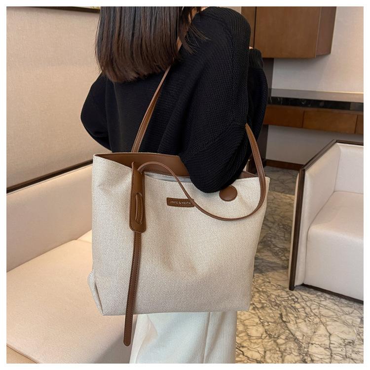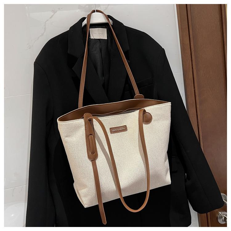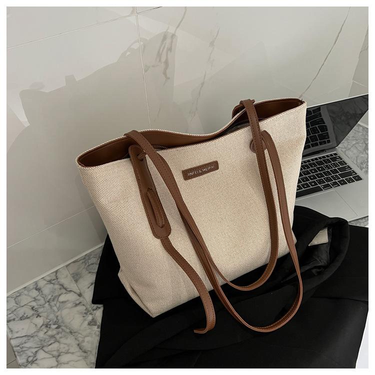 Bolso de Lona para Mujer de Gran Capacidad 2023 Nueva Llegada Verano Combinable Bolso de Hombro Texturizado Sencillo Clase Viajero Bolso Tote