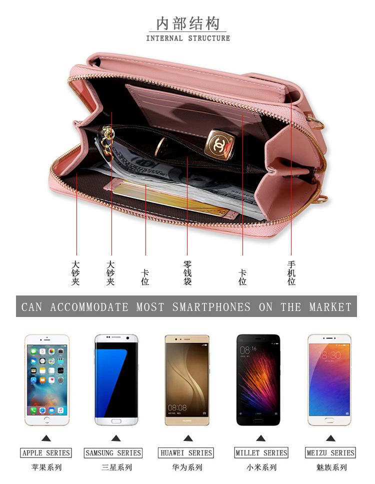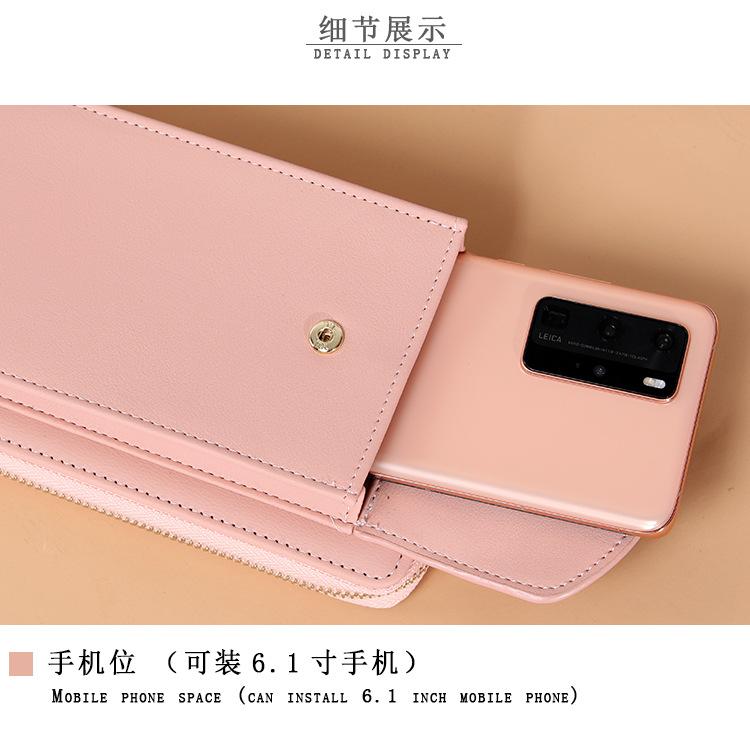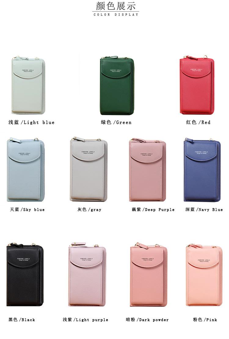 Bolso de mano largo para mujer, cartera para teléfono móvil de gran capacidad, con cremallera, color liso, bandolera, 2021