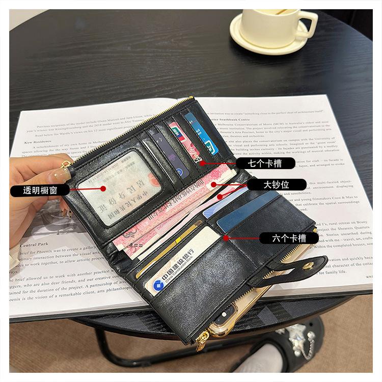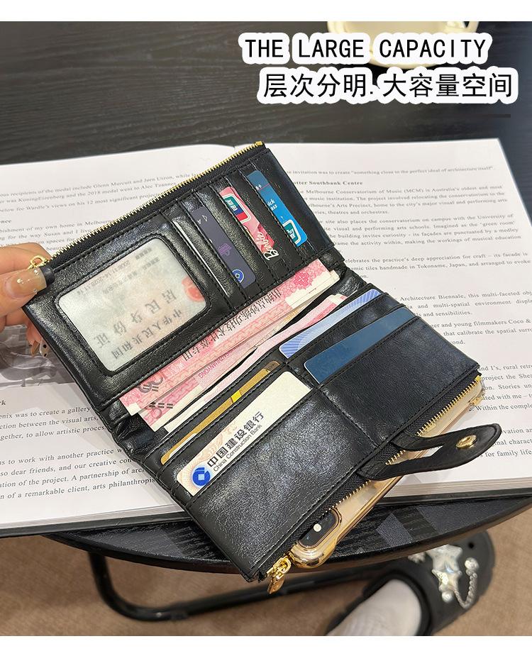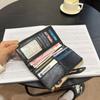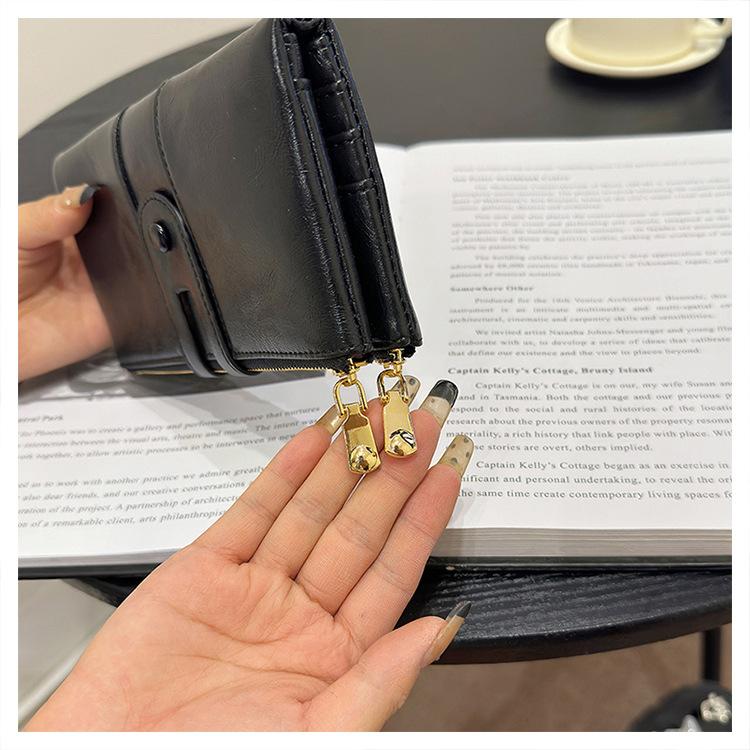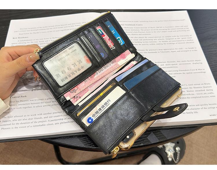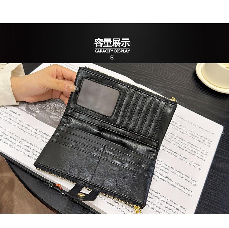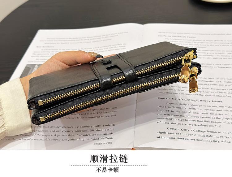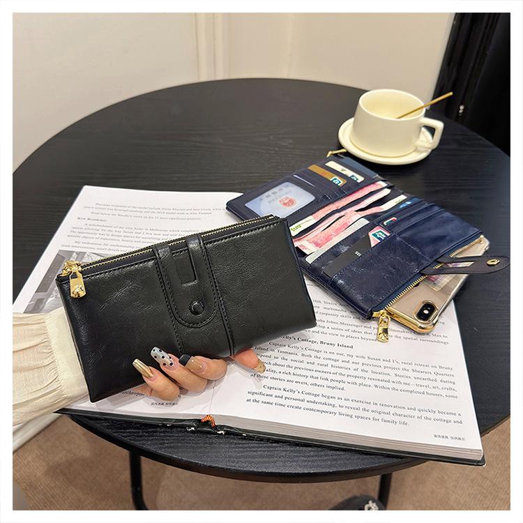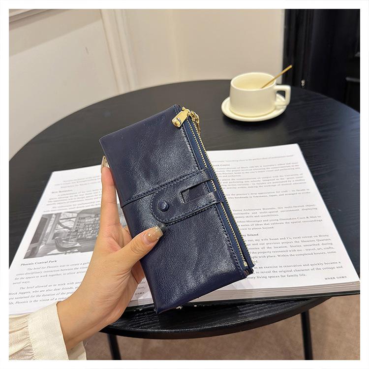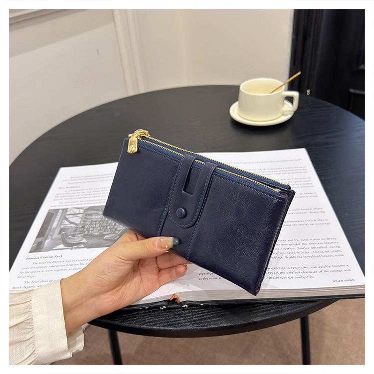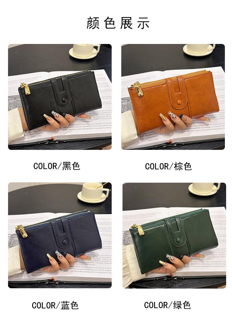 Cartera de comercio exterior transfronterizo para mujer, nueva cartera de 2024, cartera vintage de cuero con cera de aceite, cartera larga para mujer, venta al por mayor
