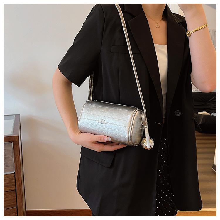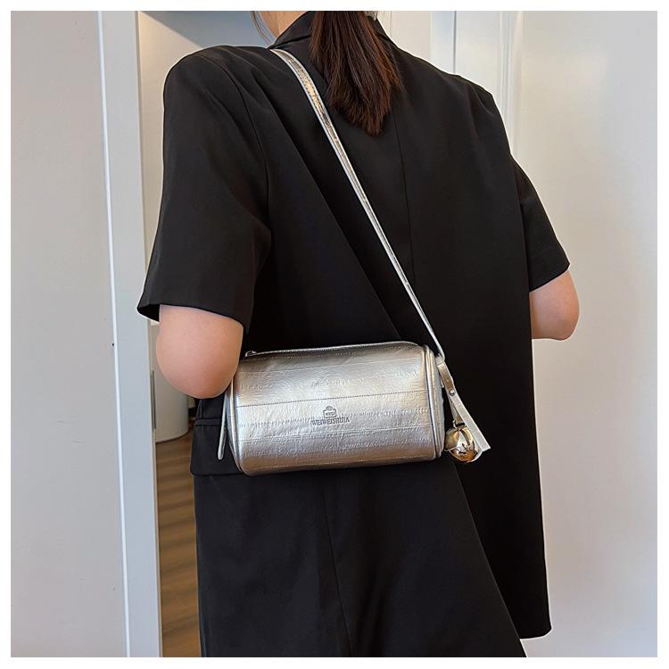 Bolso de Almohada Plateado de Moda para Mujer 2025 Verano Nuevo Estilo Bolso de Hombro Simple Versátil Bolso Cruzado de Alta Gama para Viajar