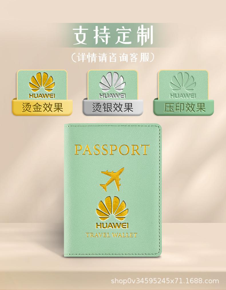 Estuche protector de cuero para pasaporte, con logotipo personalizado e imprimible, para guardar documentos y tarjetas, porta pasaporte de viaje impermeable integrado.