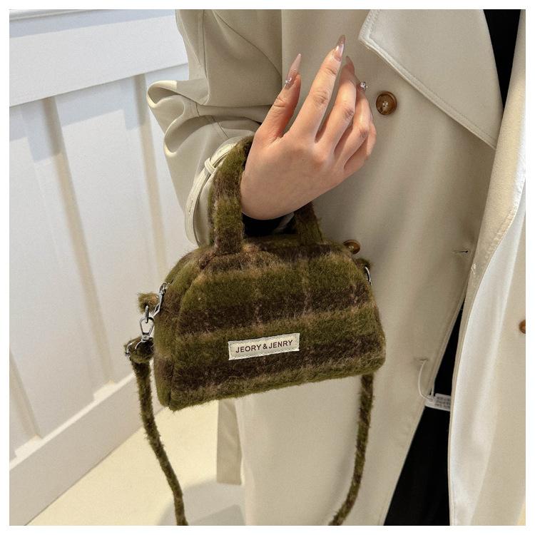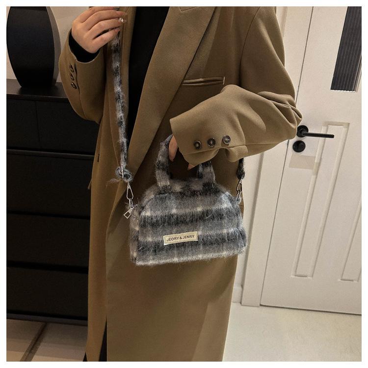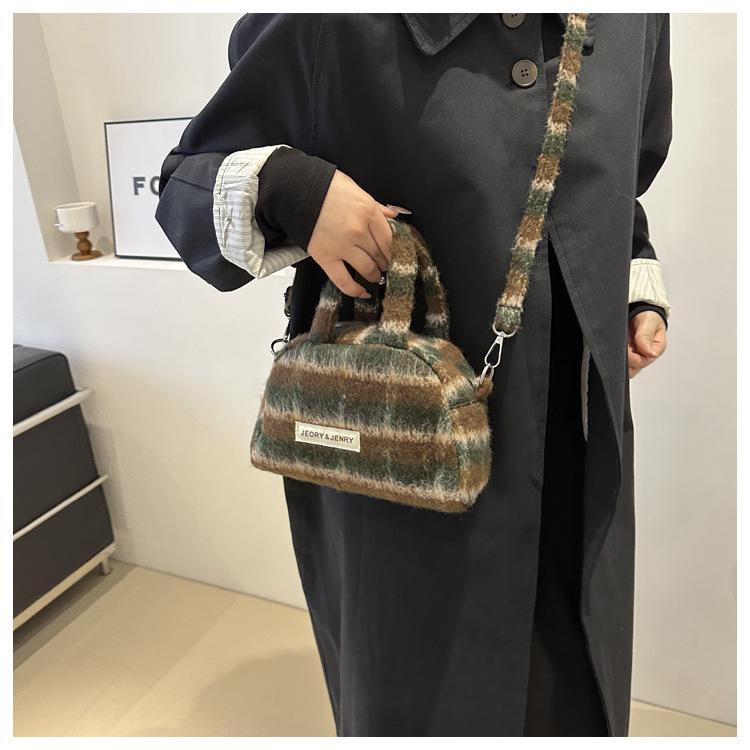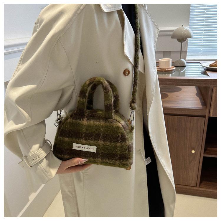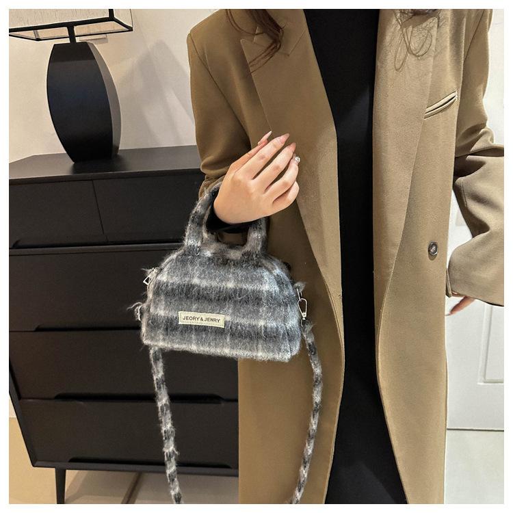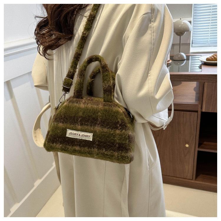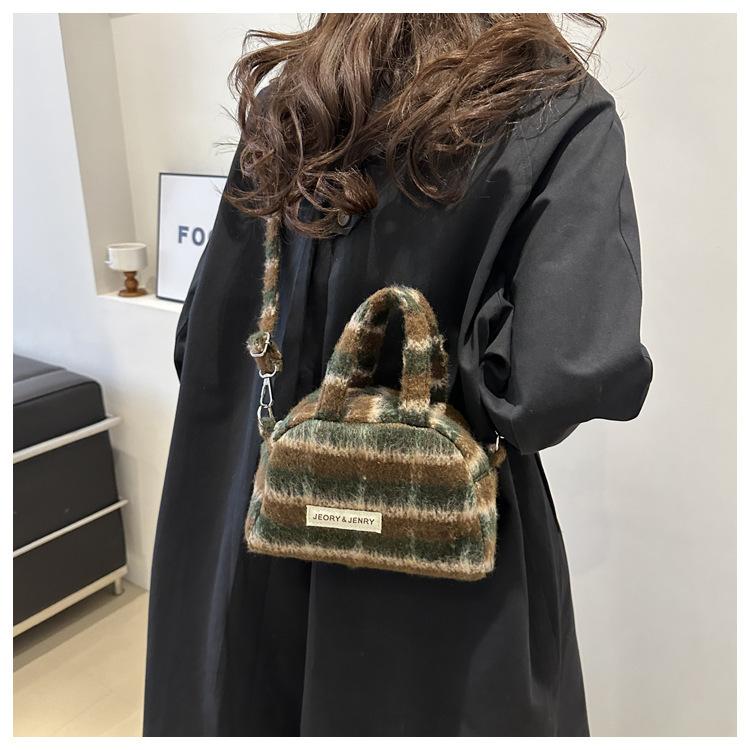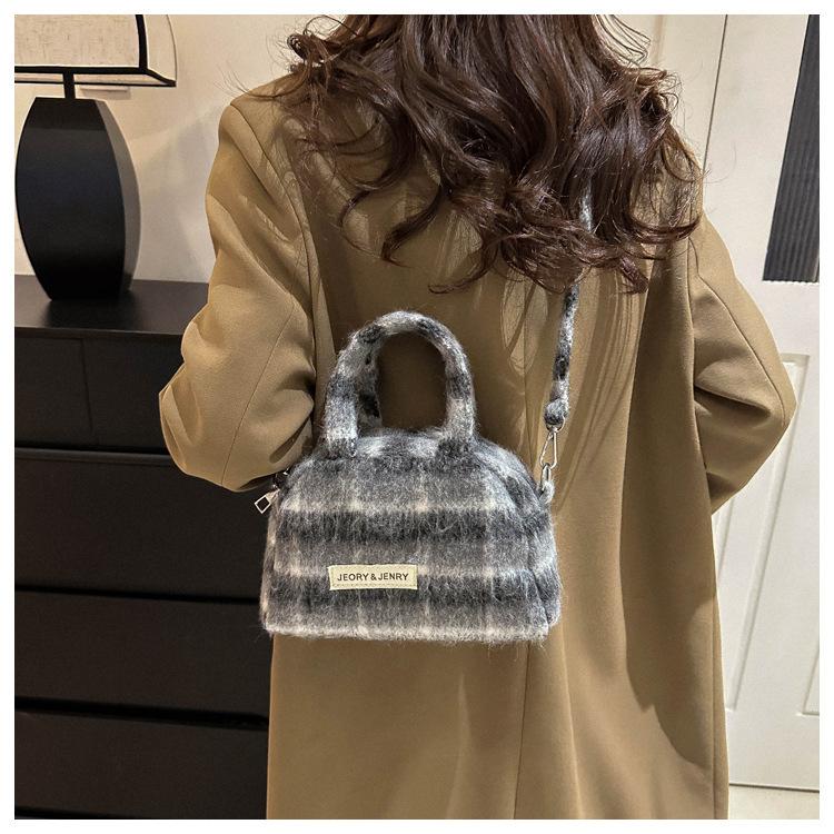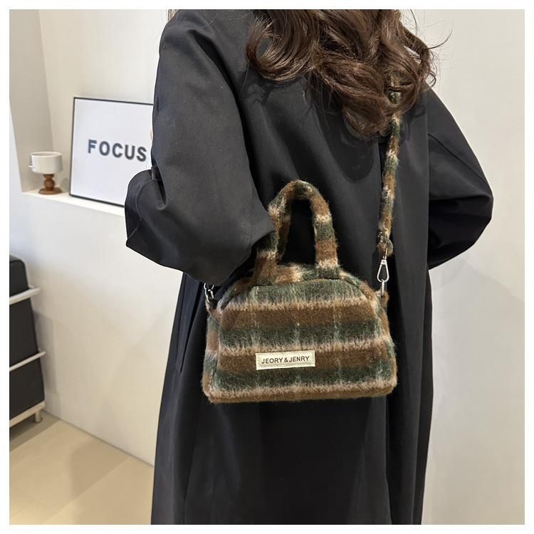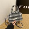 Bolso de Mano Estilo Hong Kong Moda Retro Simple Bandolera de un Hombro para Mujer 2024 Nuevo Bolso de Mano para Viaje de Tela Escocesa
