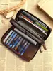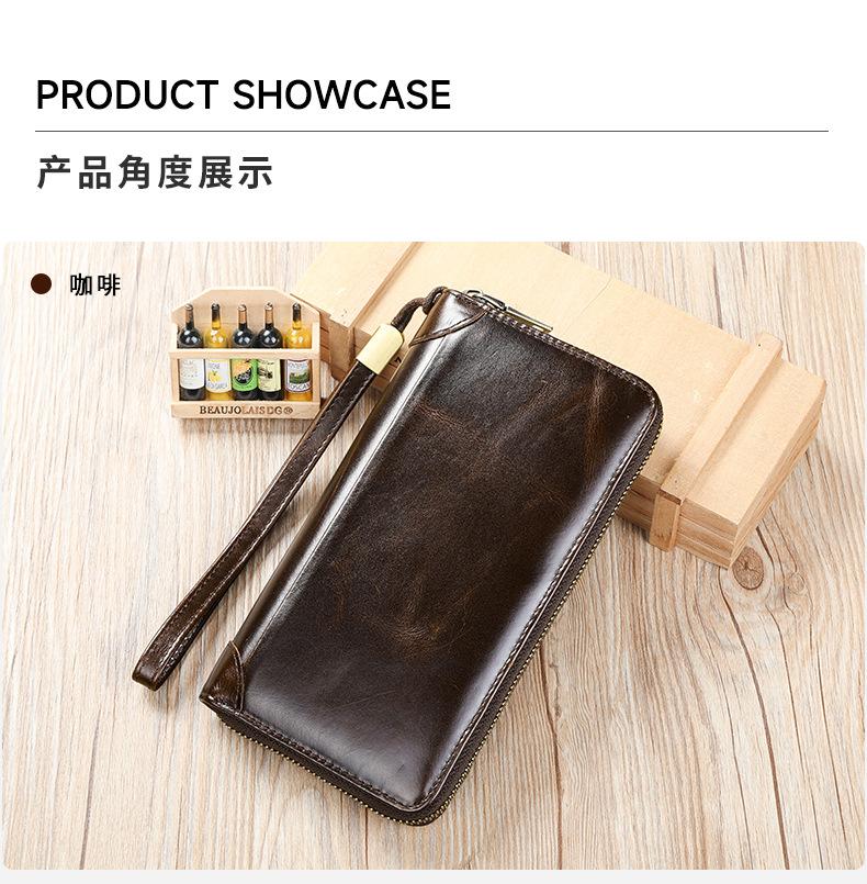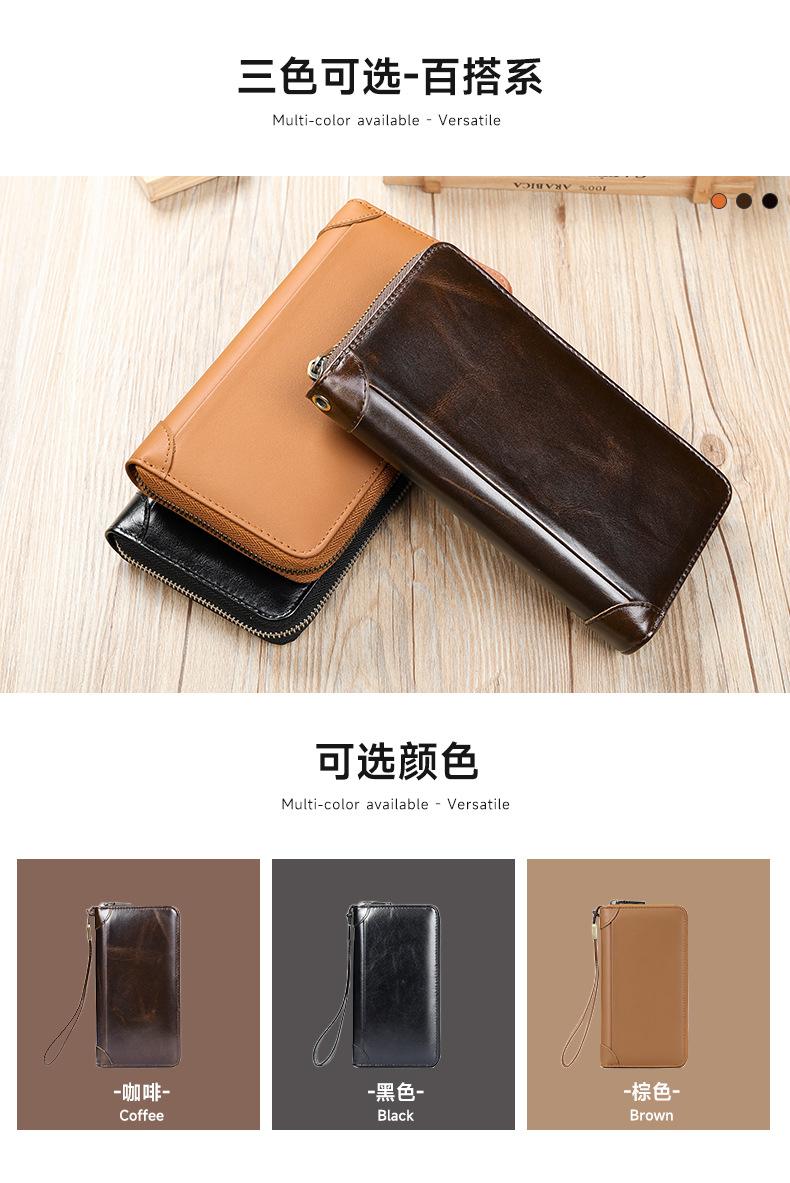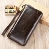 Cartera de negocios al por mayor para hombre, bolso de mano de piel de vaca de capa superior larga, monedero con cremallera de doble capa, monedero para hombre 9069