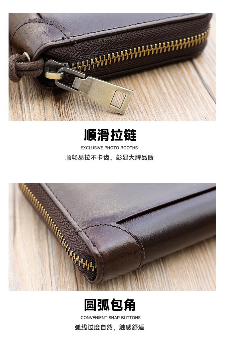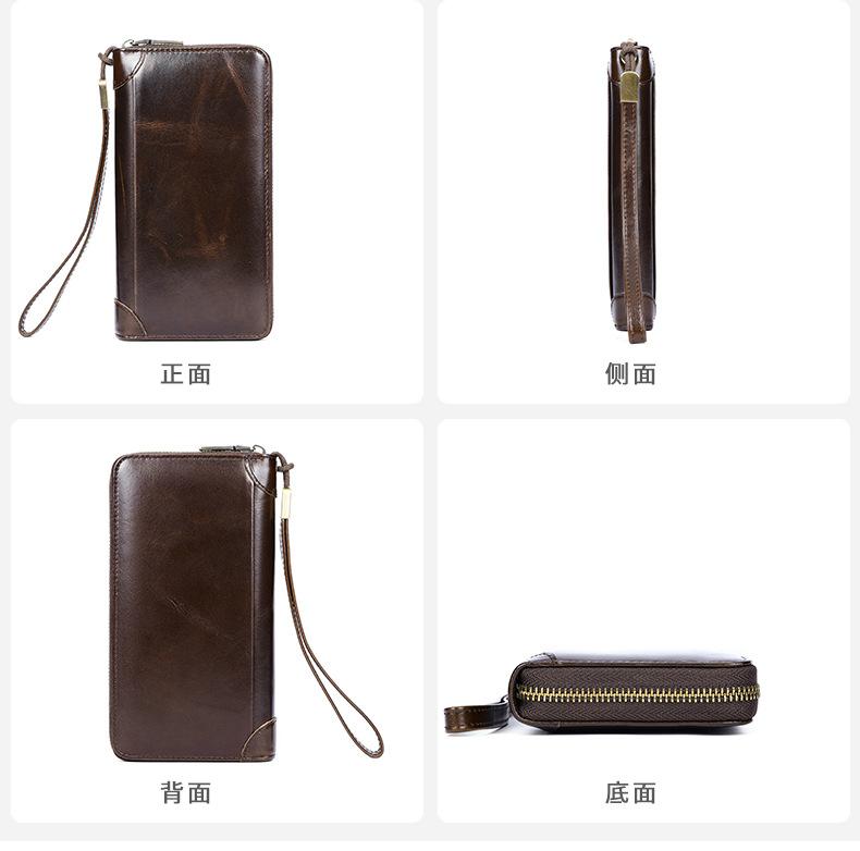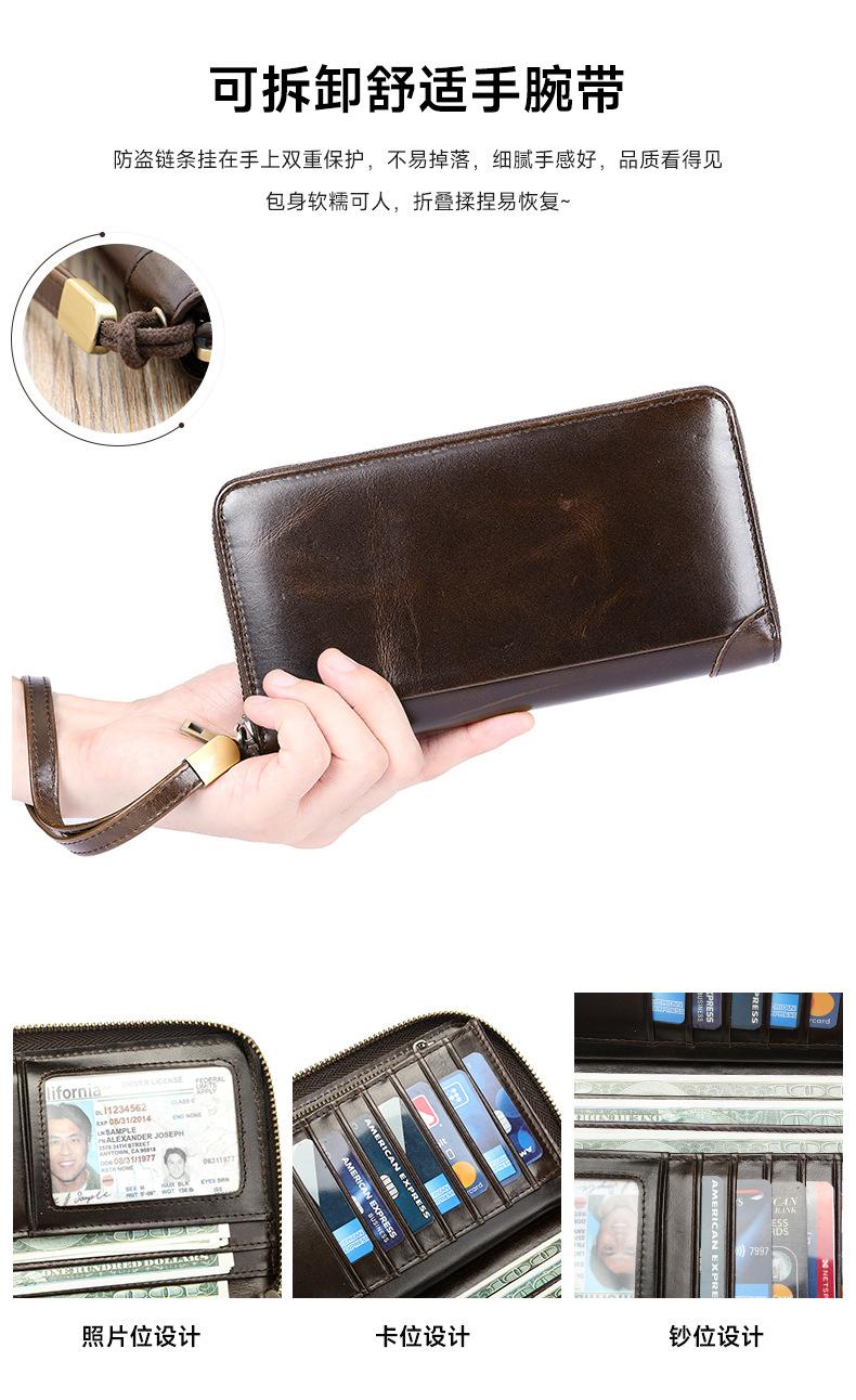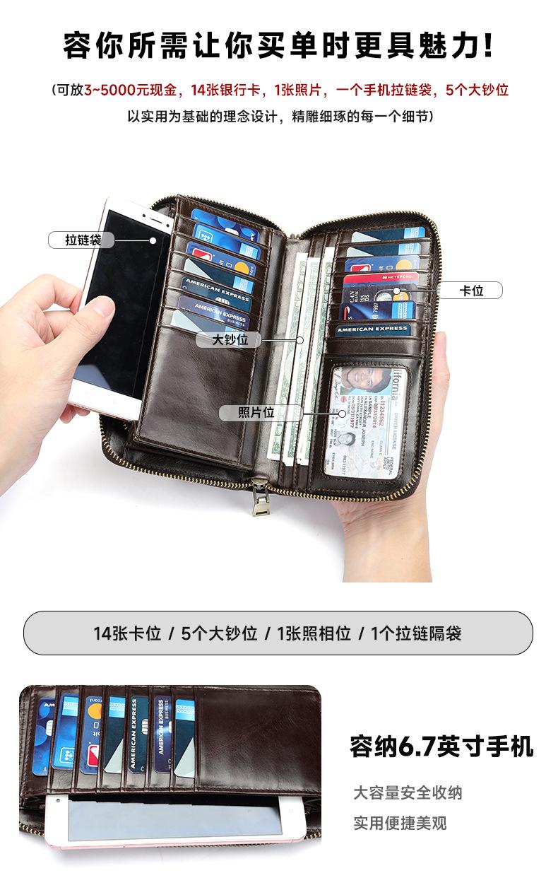 Cartera de hombre con dos bolsillos, billetera larga con ranuras para múltiples tarjetas, bolso de mano de cuero genuino para hombre, bolso de mano, negocio de suministro transfronterizo