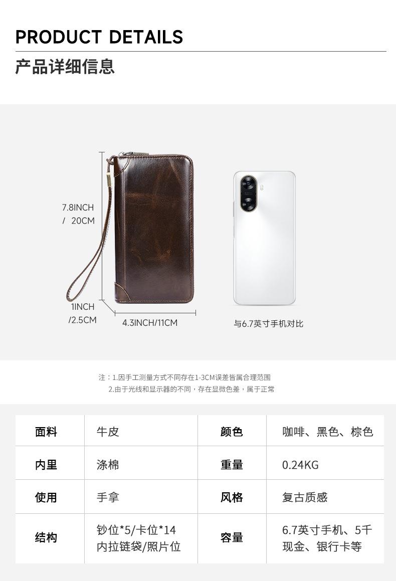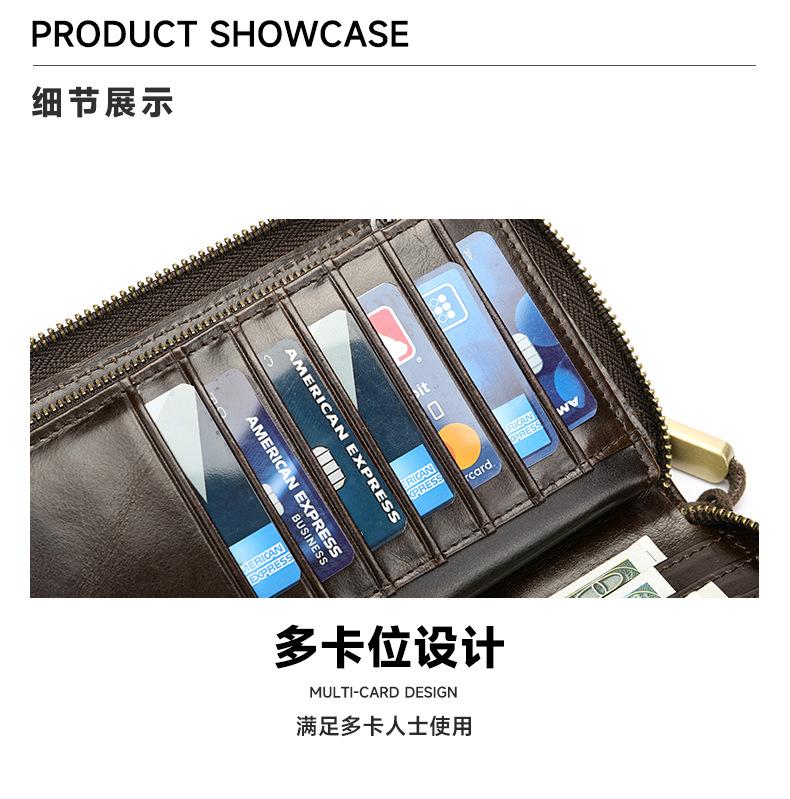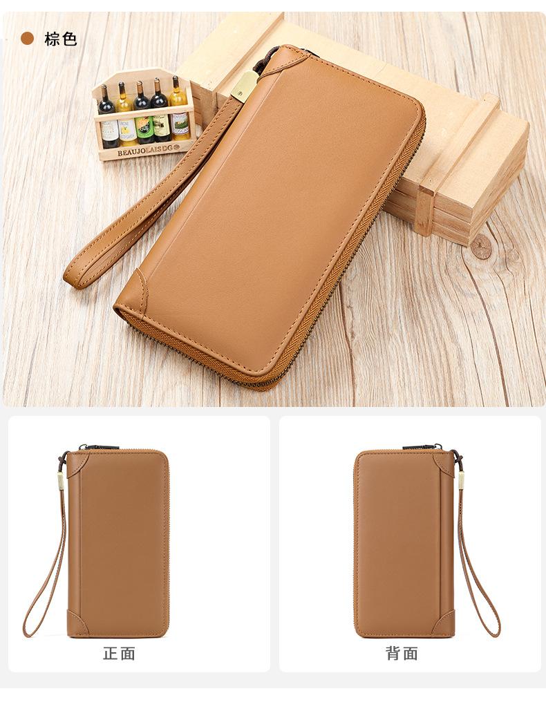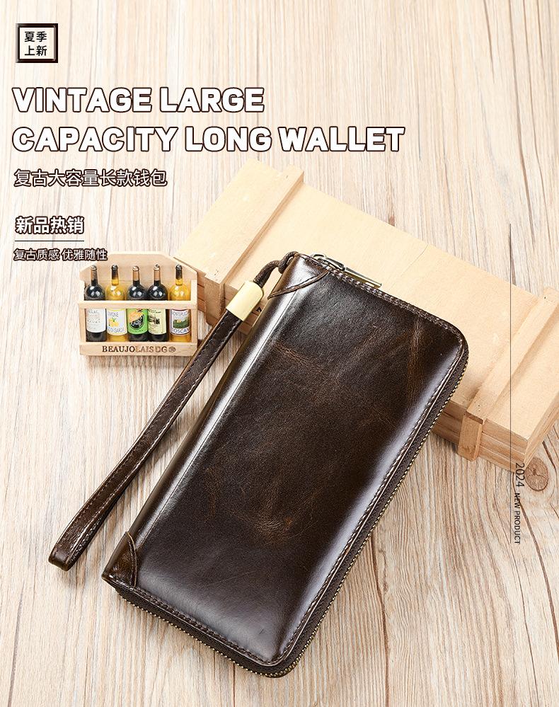 Cartera de hombre con dos bolsillos, billetera larga con ranuras para múltiples tarjetas, bolso de mano de cuero genuino para hombre, bolso de mano, negocio de suministro transfronterizo