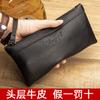Venta directa de fábrica, billetera larga de cuero genuino para hombre, primera capa de piel de vaca, billetera de negocios negra, bolso de mano cuadrado horizontal