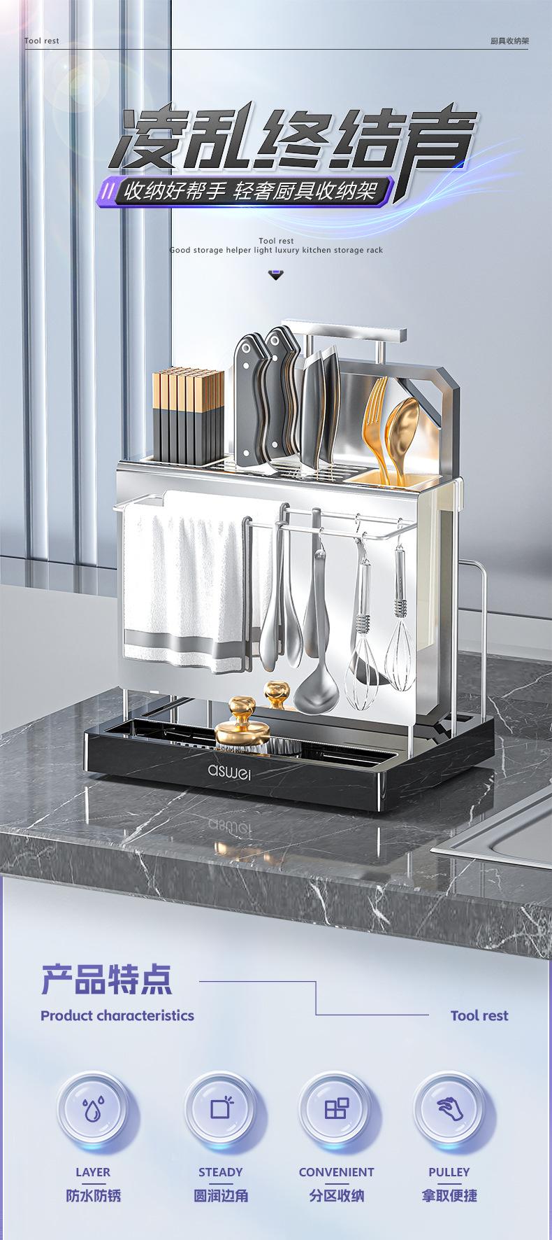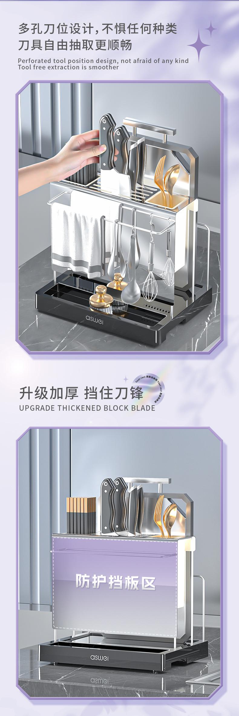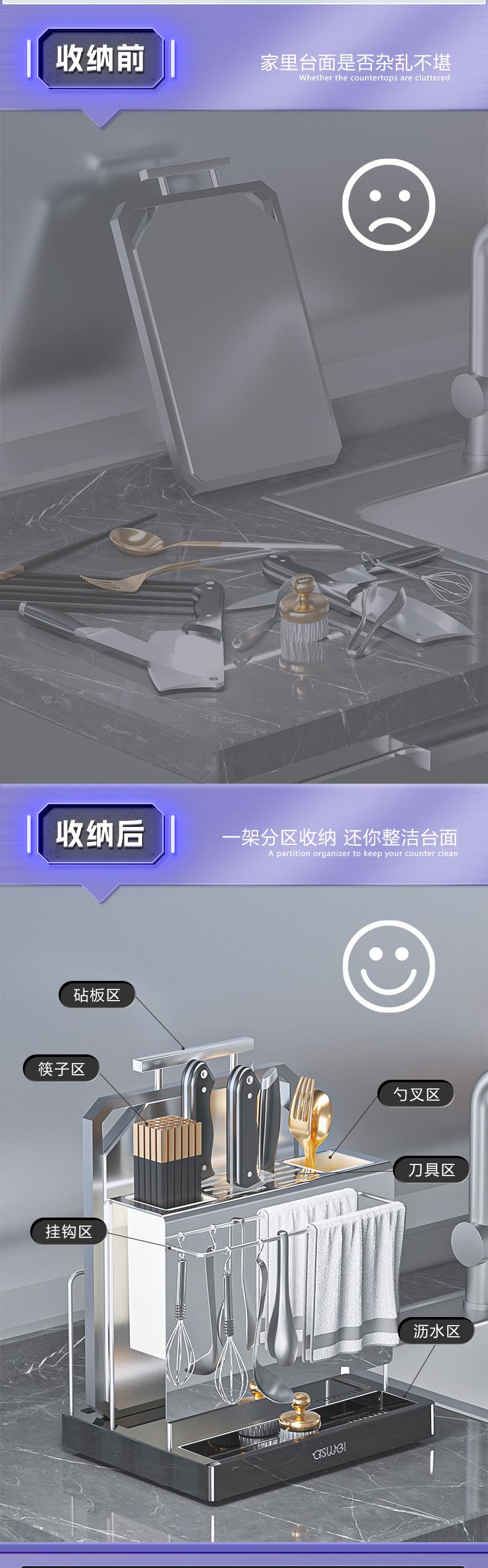 Soporte para cuchillos multifuncional de acero inoxidable para encimera de cocina, soporte para cuchillos de cocina, tabla de cortar, soporte para palillos, estante para guardar cuchillos