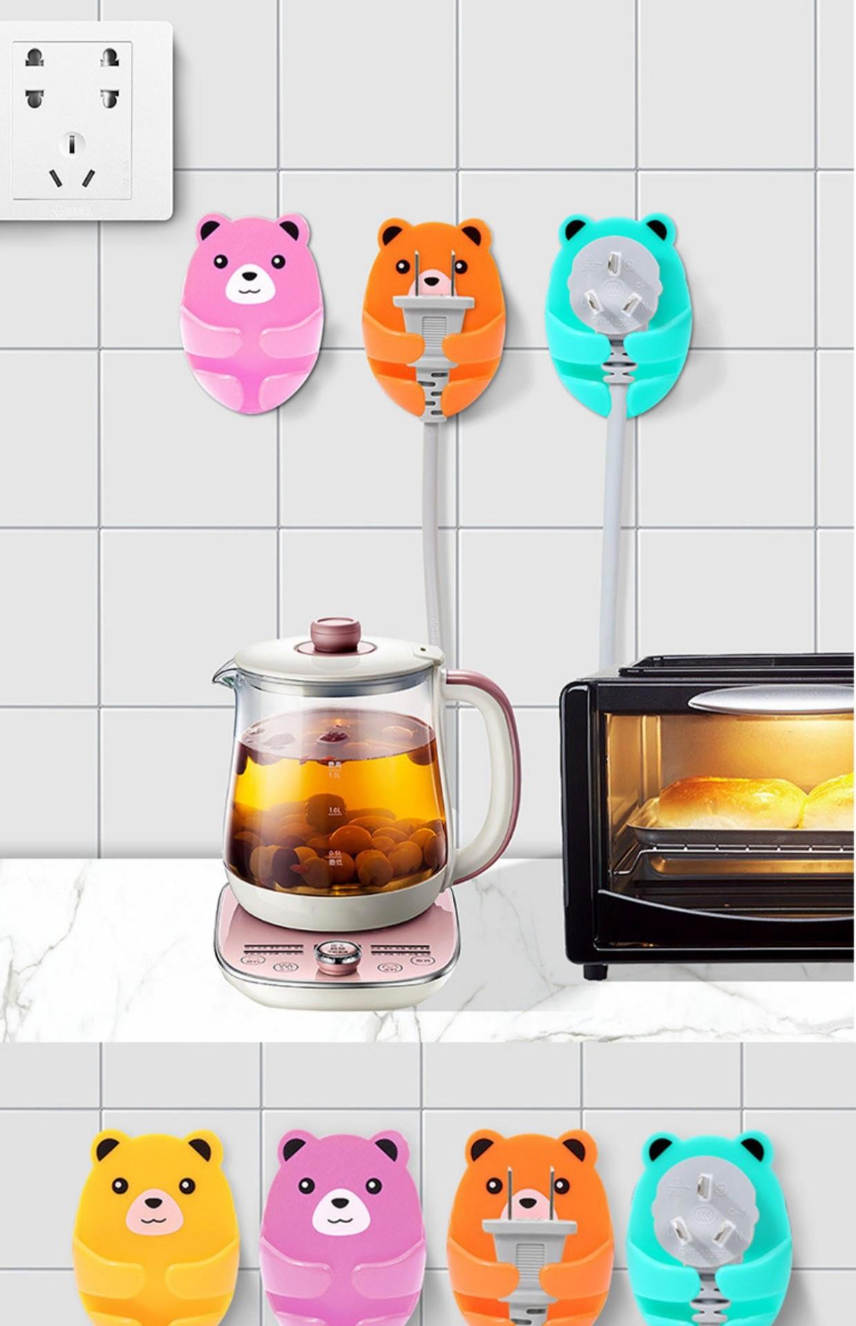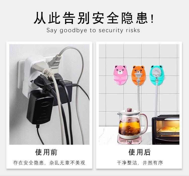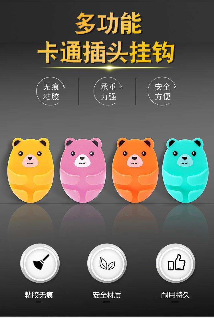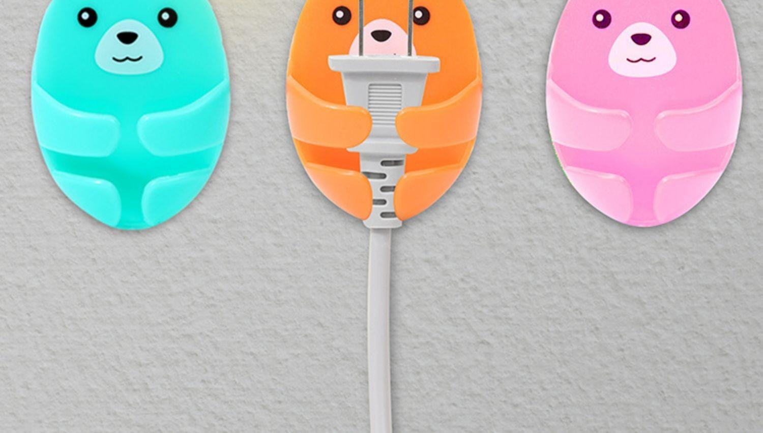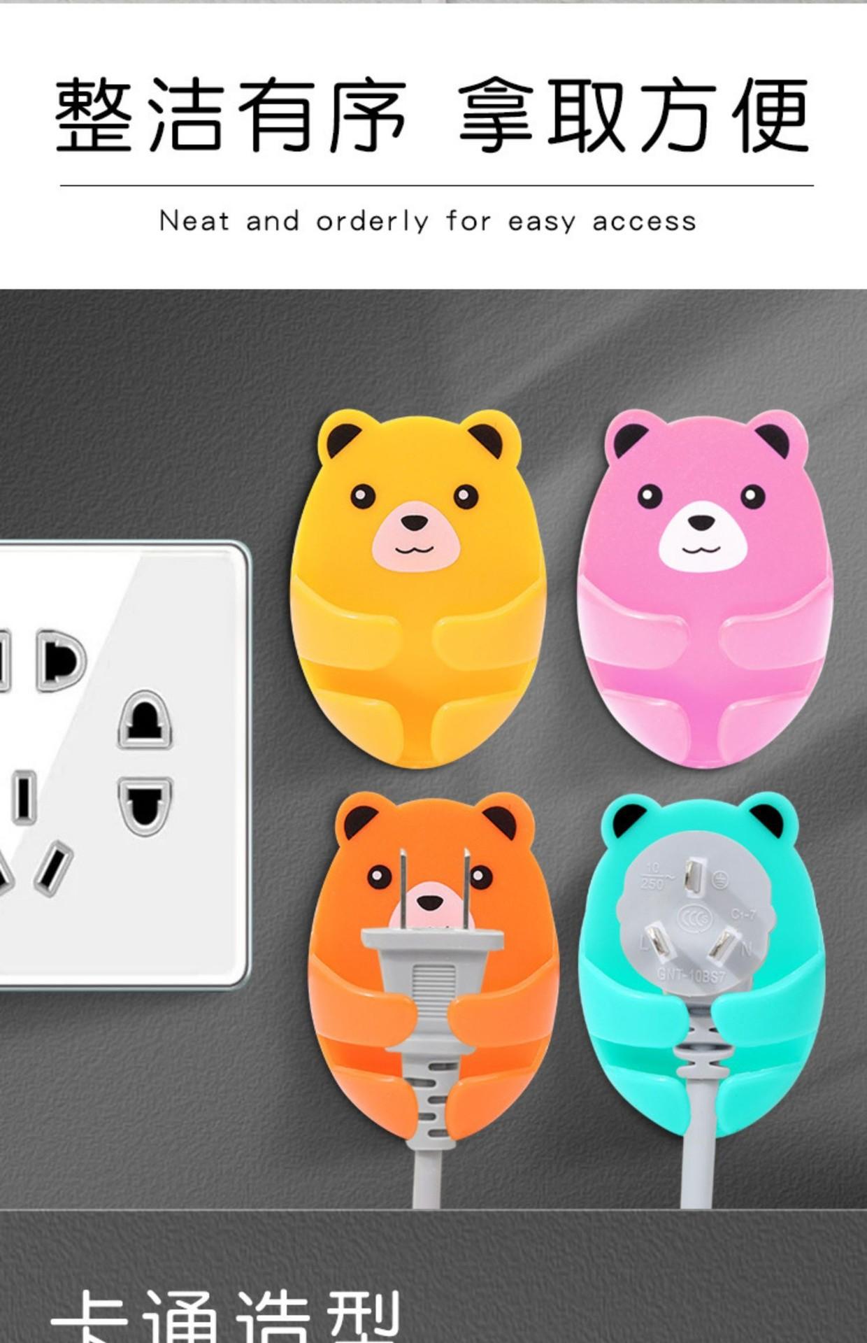 Compra Gancho para enchufe sin perforaciones de dibujos animados, soporte para enchufes con forma de oso, soporte creativo para almacenamiento de enchufes, adhesivo sin costuras al por mayor en Joom.pro