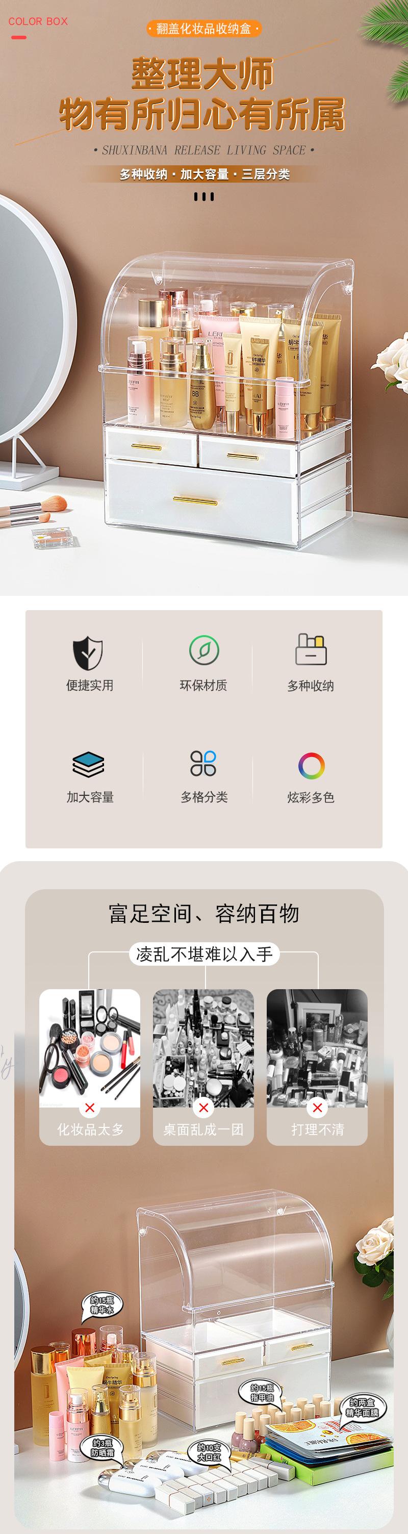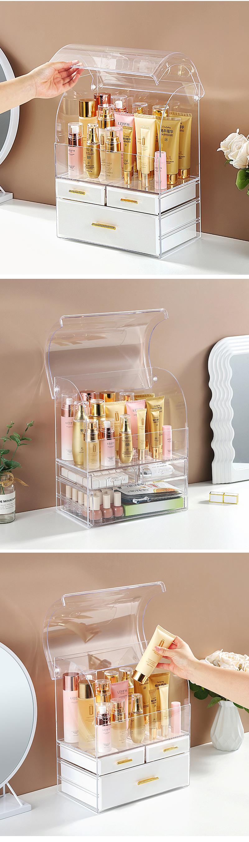 Caja de almacenamiento de cosméticos de escritorio, cajón para tocador, caja de acabado para el cuidado de la piel, estante de almacenamiento de perfumes de acrílico transparente