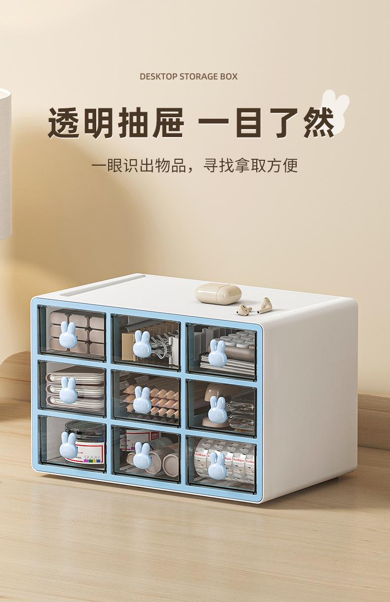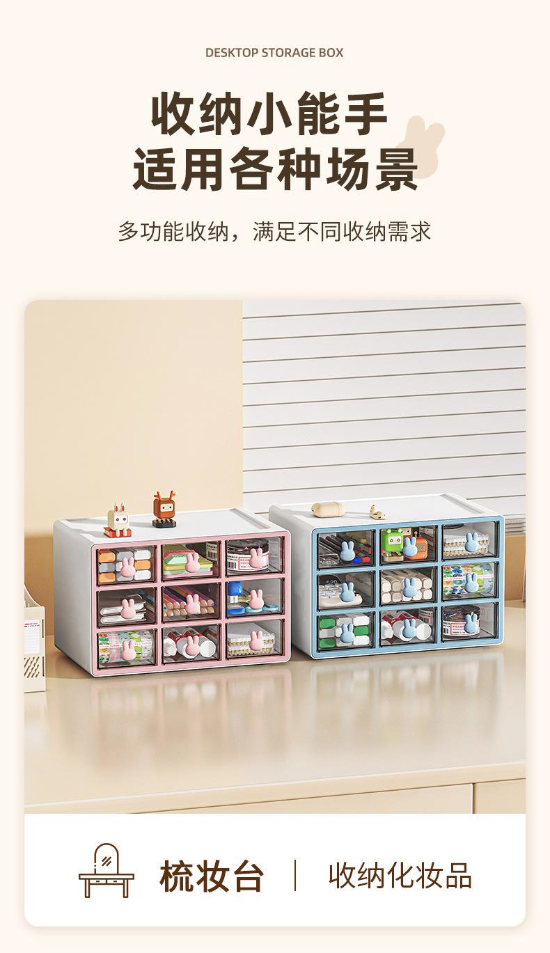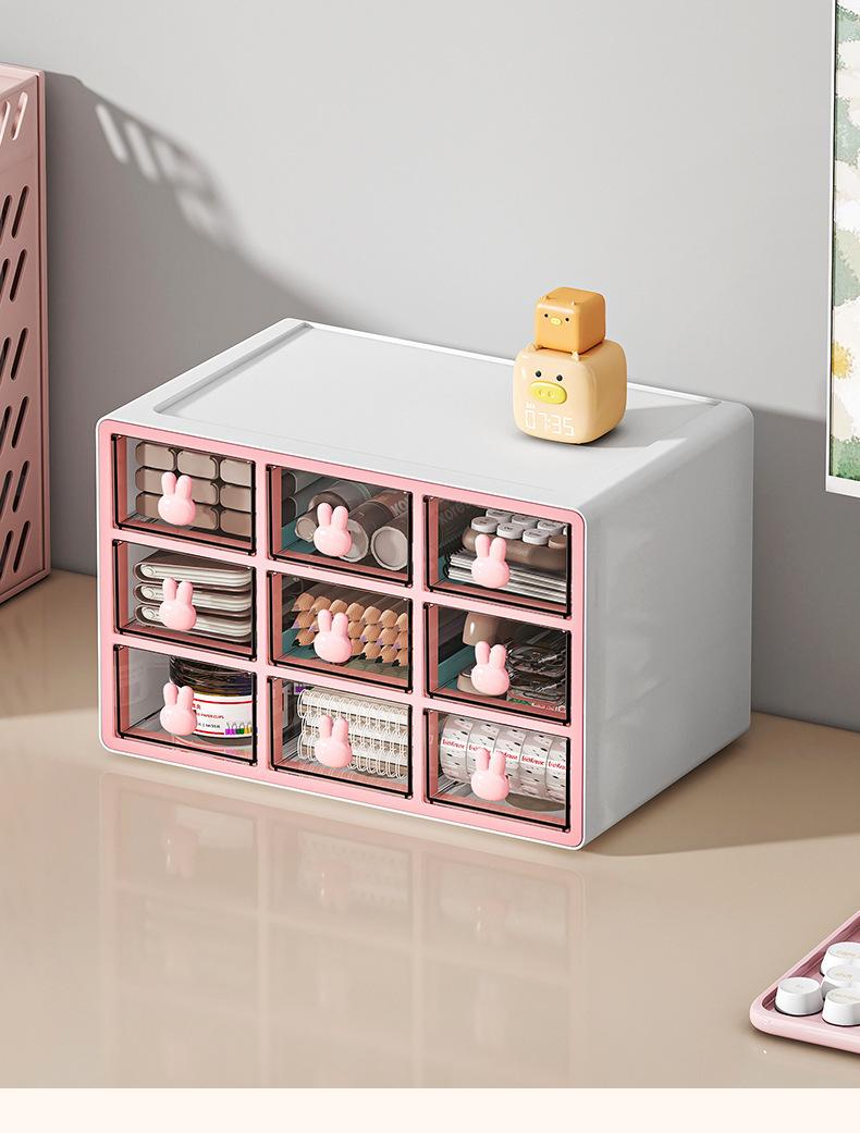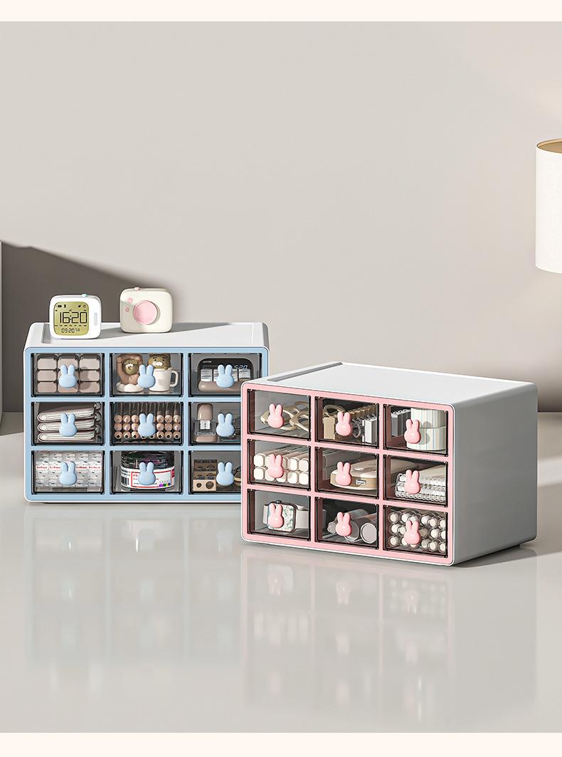 Compra Caja de almacenamiento de escritorio con cajón pequeño transparente, de plástico, con múltiples compartimentos, con dibujos animados, para papelería de conejo al por mayor en Joom.pro
