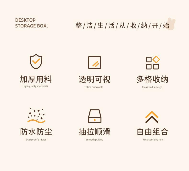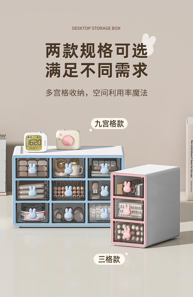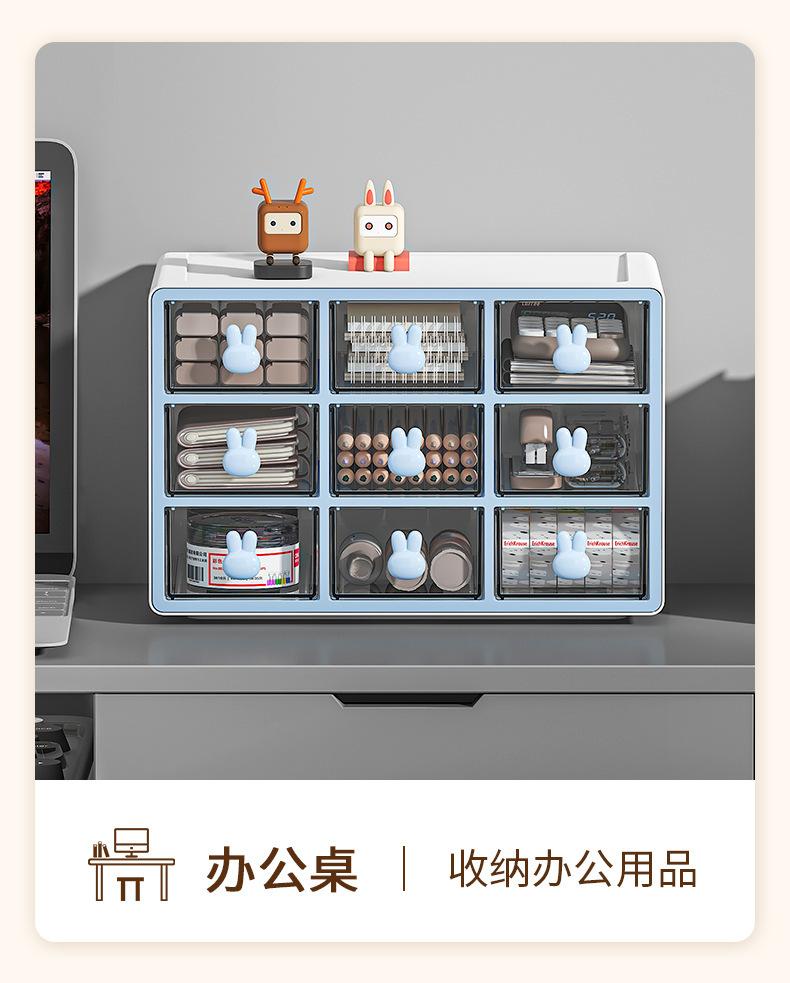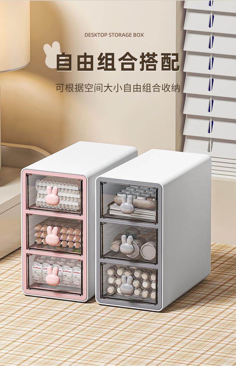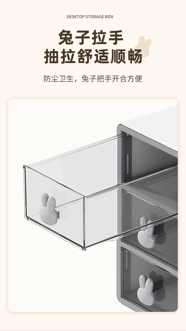 Compra Caja de almacenamiento de escritorio con cajón pequeño transparente, de plástico, con múltiples compartimentos, con dibujos animados, para papelería de conejo al por mayor en Joom.pro