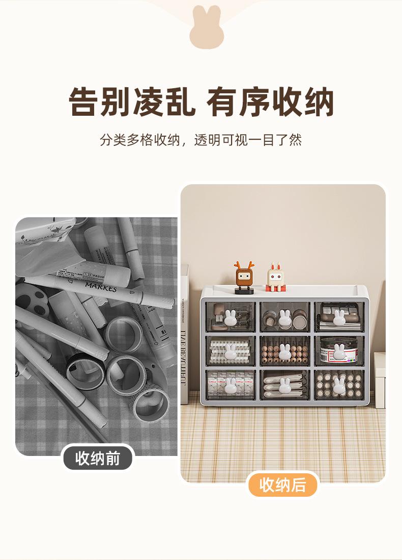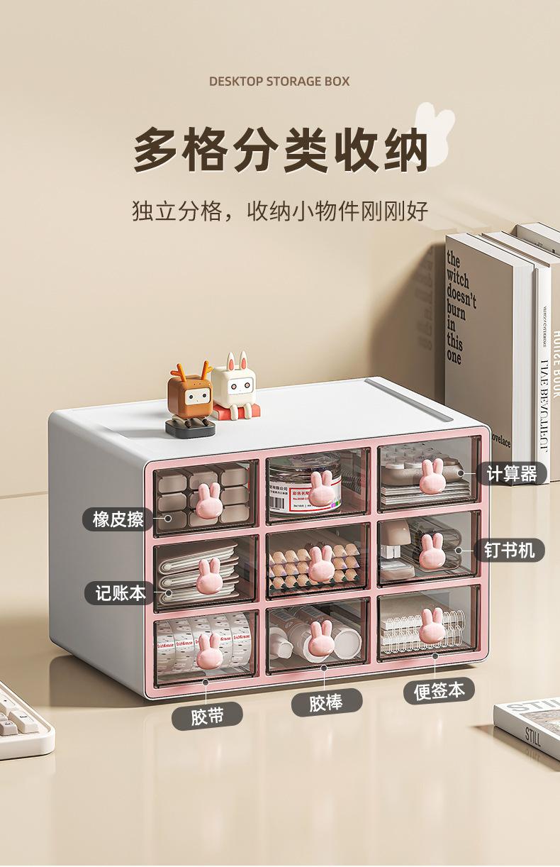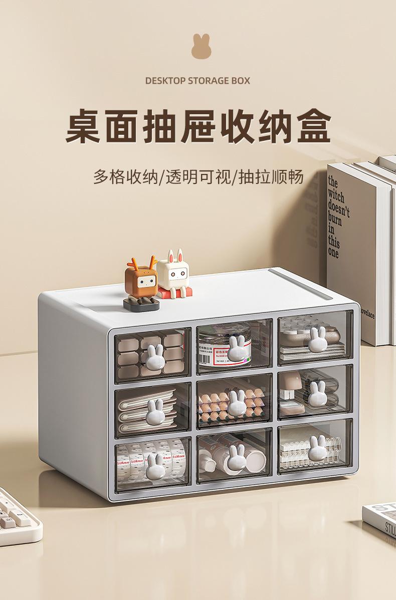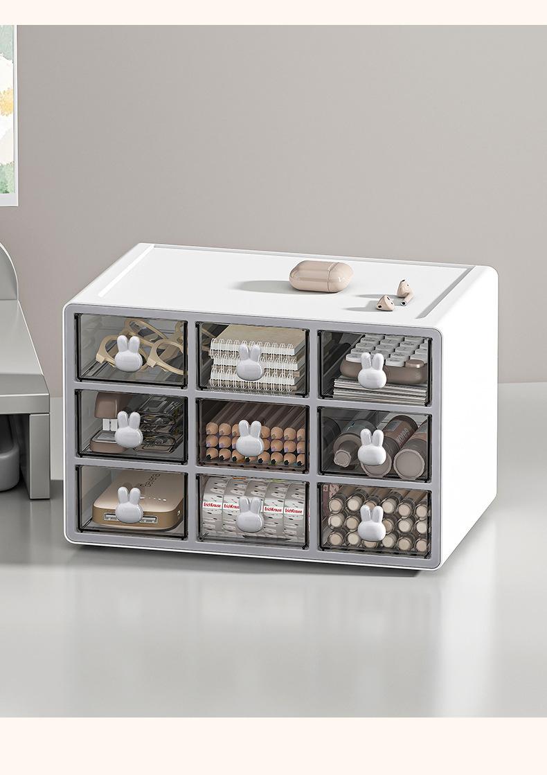 Caja de almacenamiento de escritorio con cajón pequeño transparente, de plástico, con múltiples compartimentos, con dibujos animados, para papelería de conejo