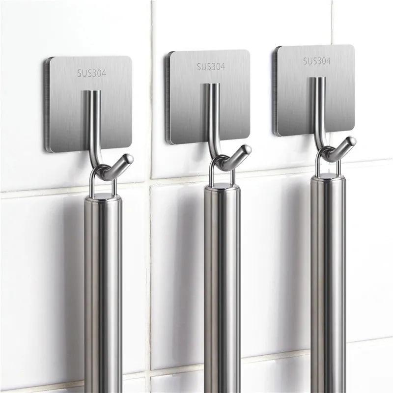 Gancho de Acero Inoxidable para Hogar Fuerte Adhesivo Sin Perforación Sin Rastro Gancho para Baño Gancho para Toalla Ropa Gancho Metálico de Pared con Capacidad de Carga