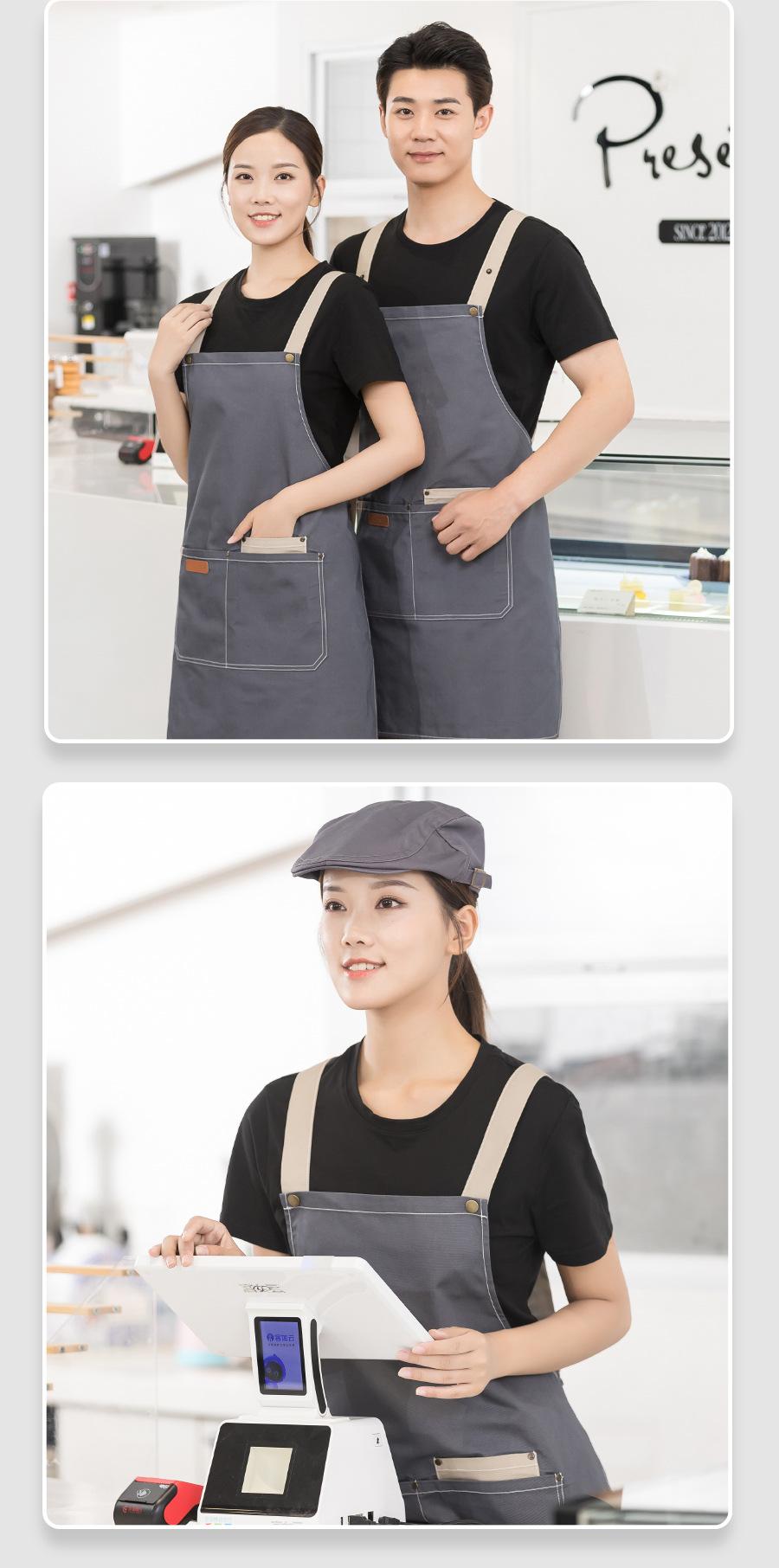 Algodón poliéster tirante cruzado en H camisa cultural ropa de trabajo personalizada tienda de té con leche camisa publicitaria delantal ropa de trabajo personalizada para ganadería