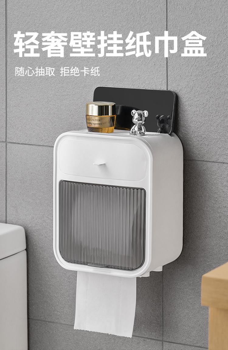 Ivory White-[Wall Hanging Punch-Free Waterproof and Dustproof Belt Roll Paper Shaft]]