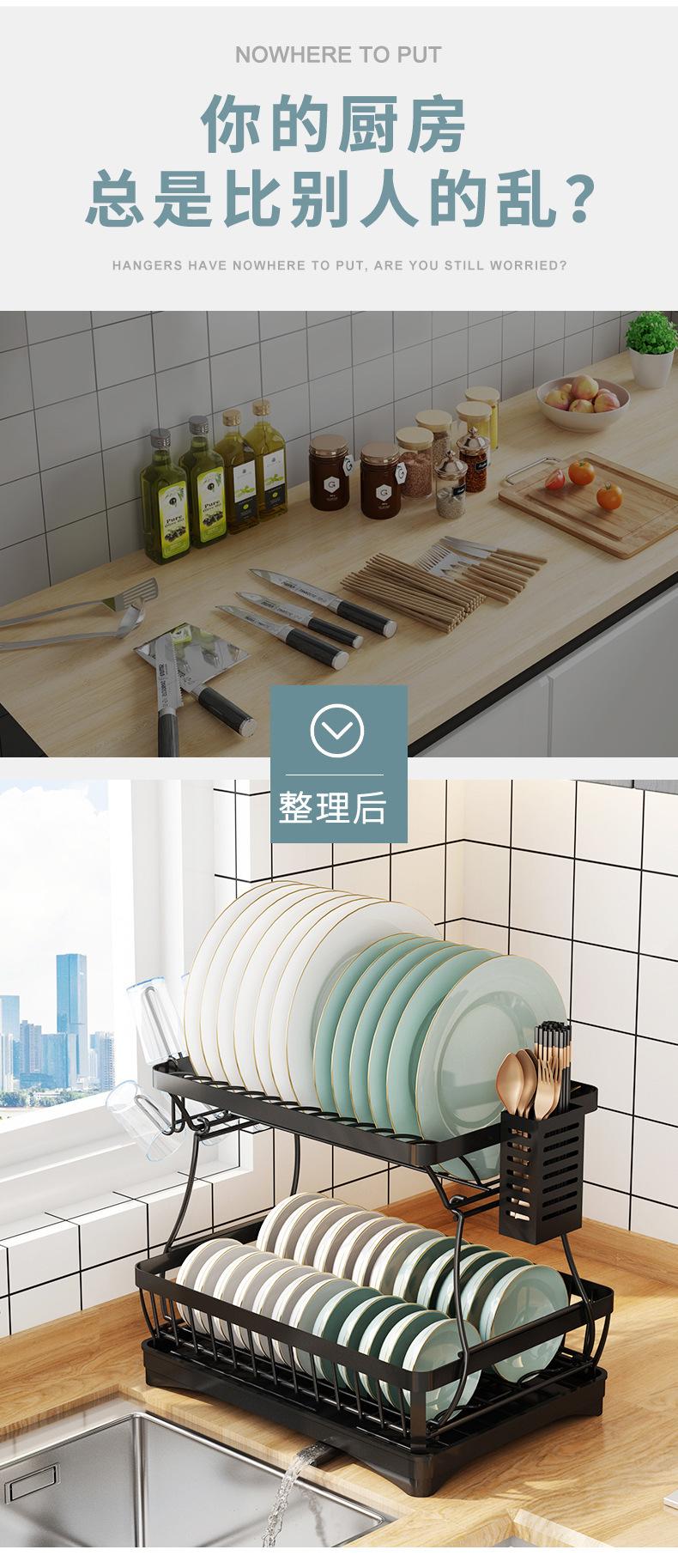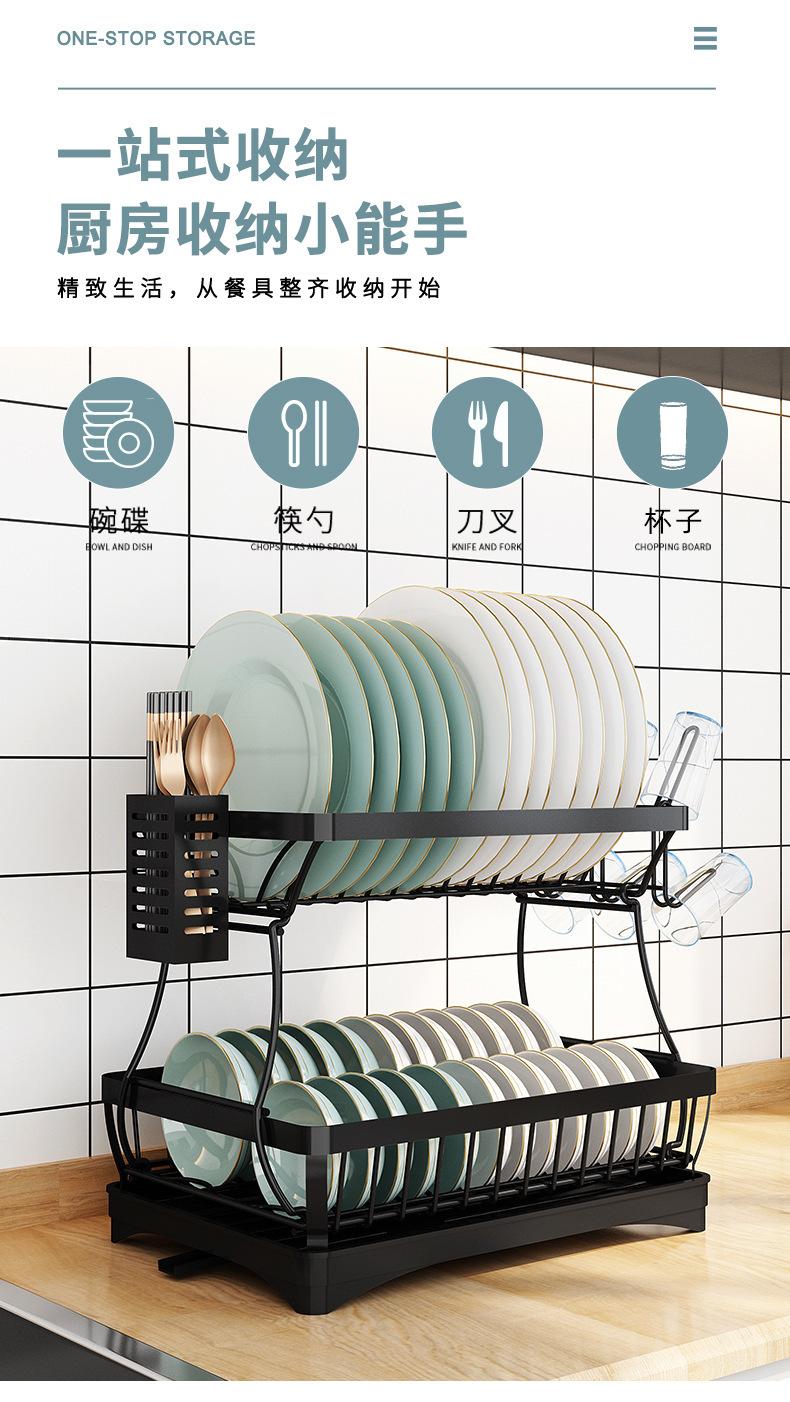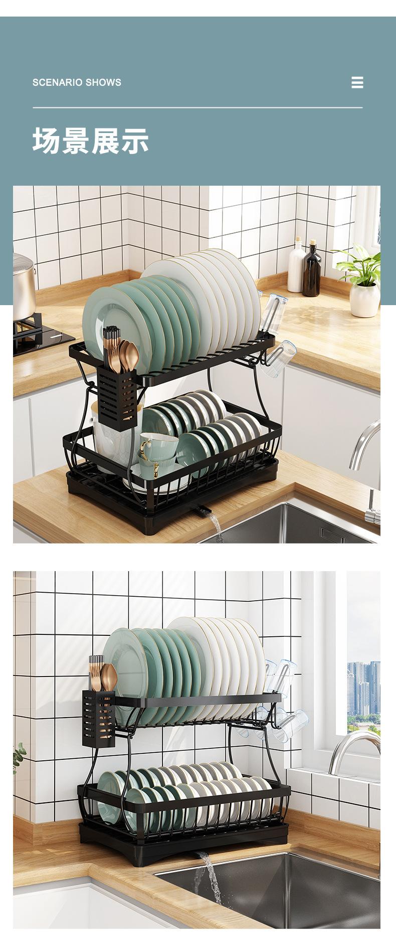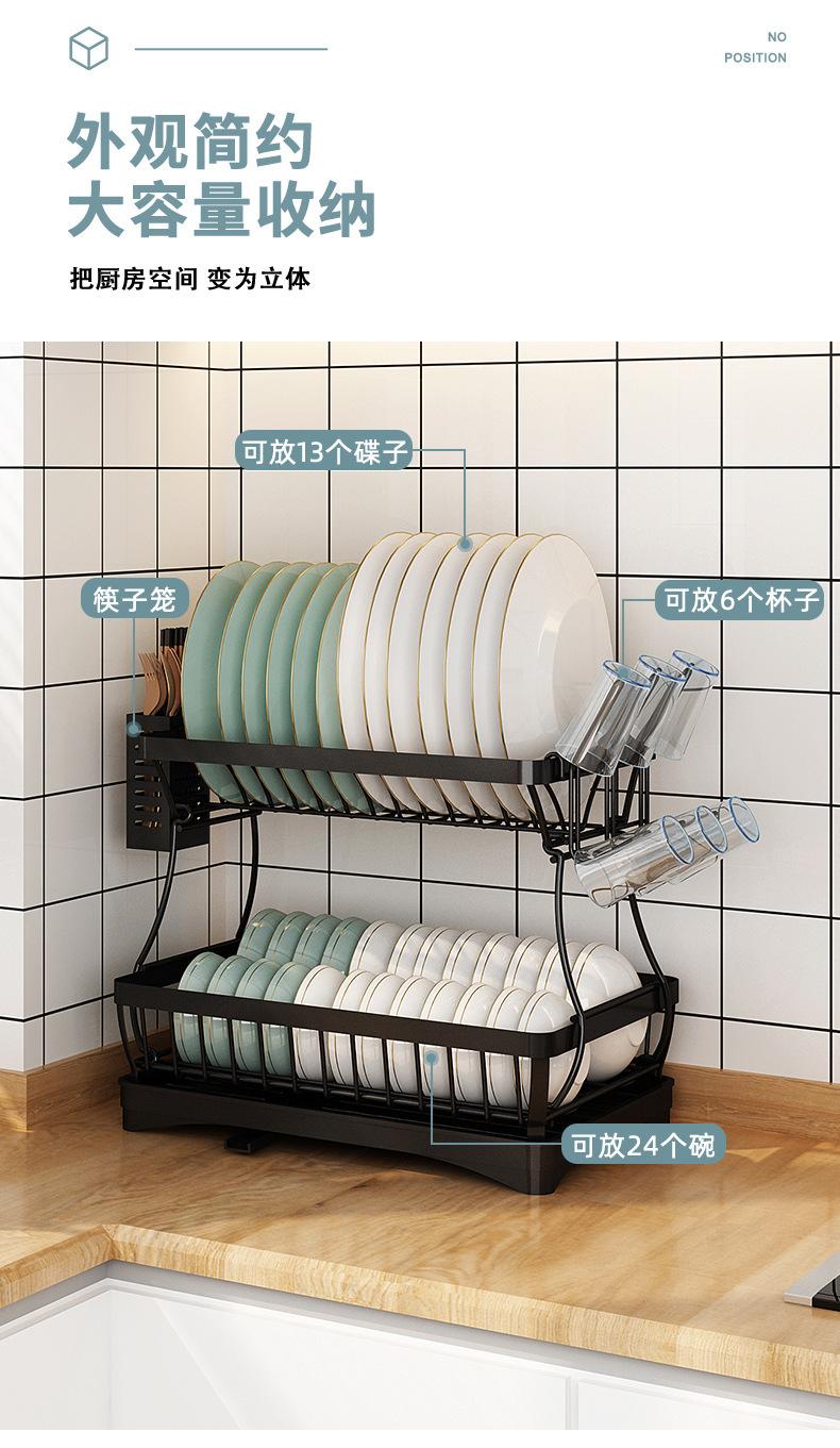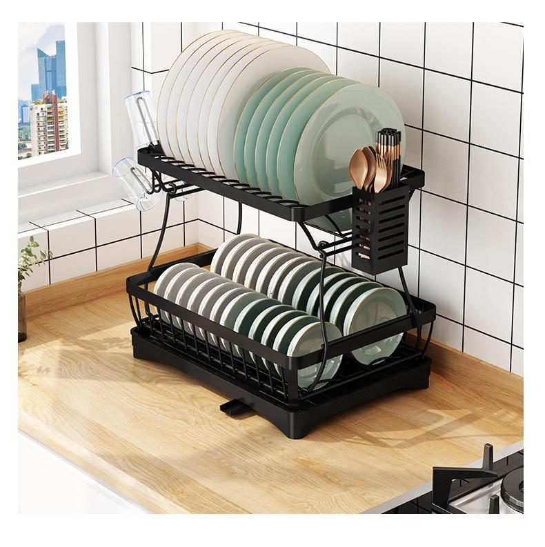 Escurridor de platos de doble capa, de escritorio, de acero inoxidable, para cocina