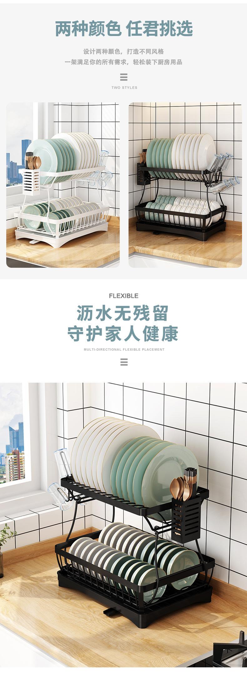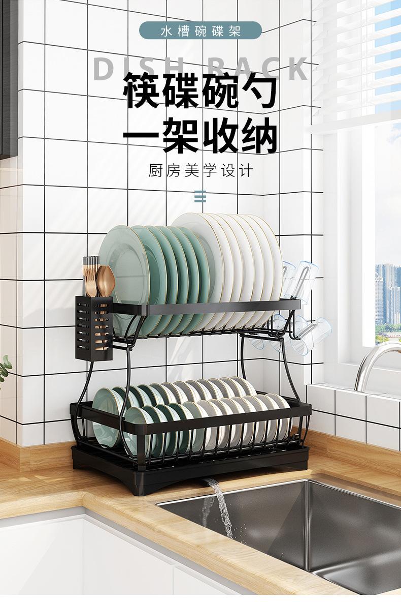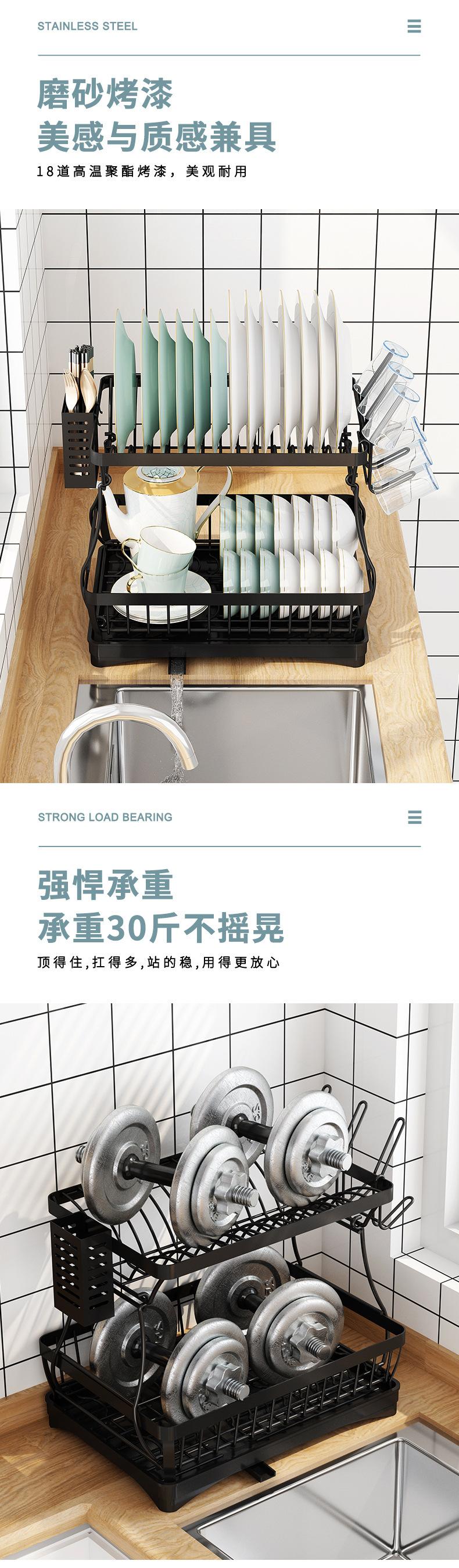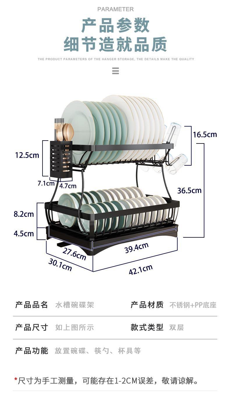 Escurridor de platos de doble capa, de escritorio, de acero inoxidable, para cocina