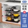 Estante de almacenamiento de ollas de cocina tipo piso, con capas, distancia ajustable, para fregadero de esquina, estante para ollas multicapa para el hogar