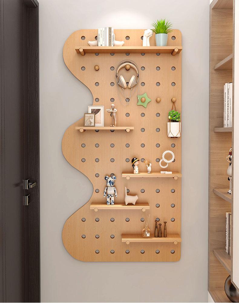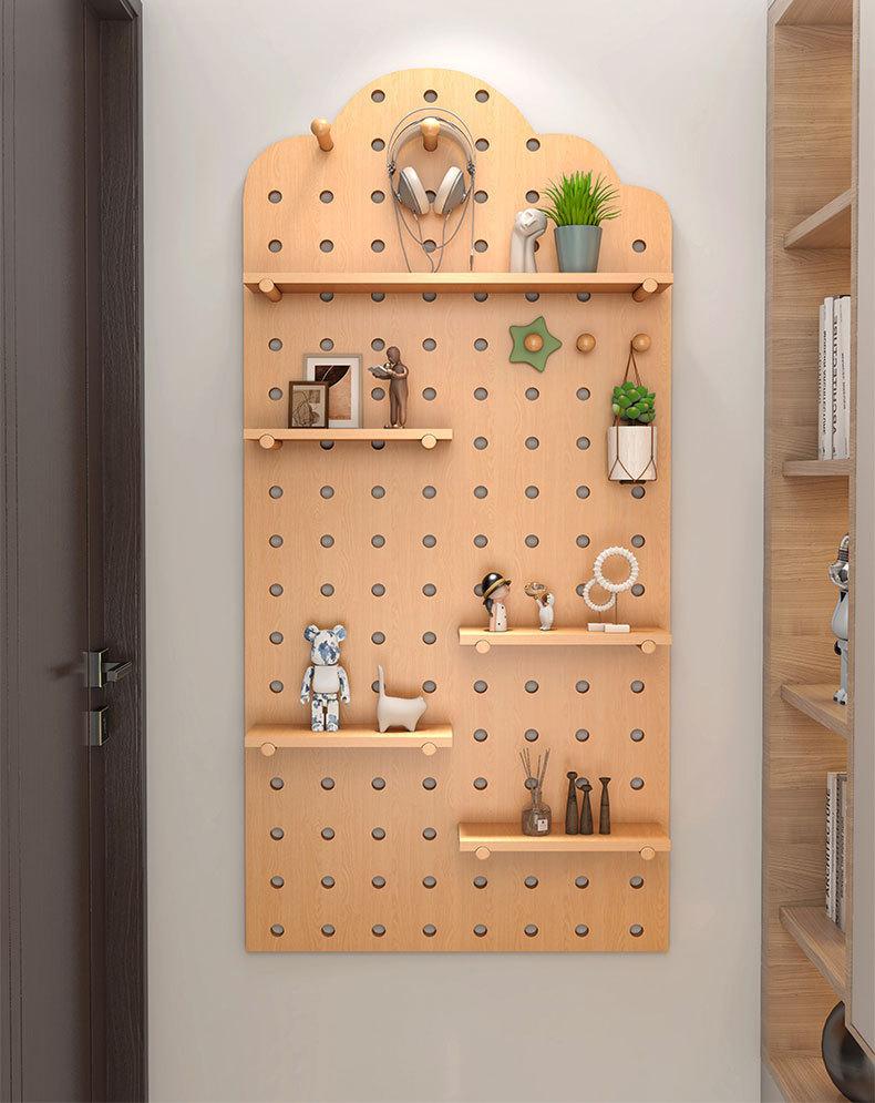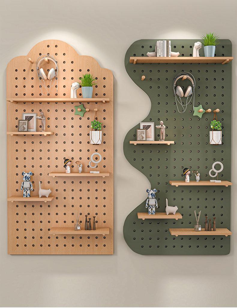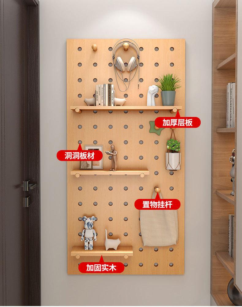 Compra Estante de almacenamiento de pared con tablero perforado, estante de exhibición de pared decorativo de madera maciza, estante de almacenamiento para el hogar al por mayor en Joom.pro