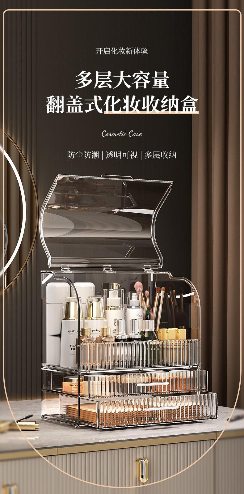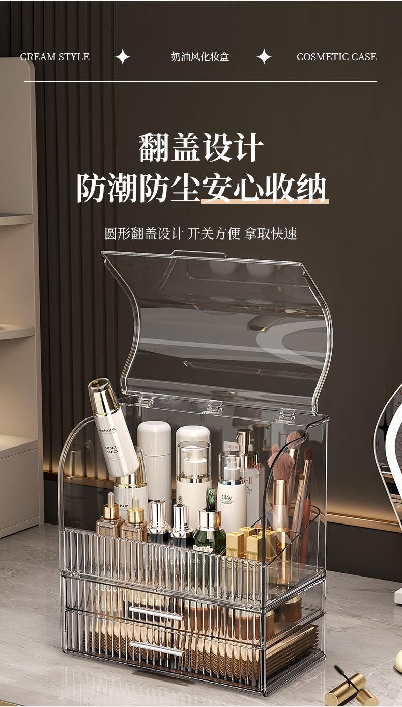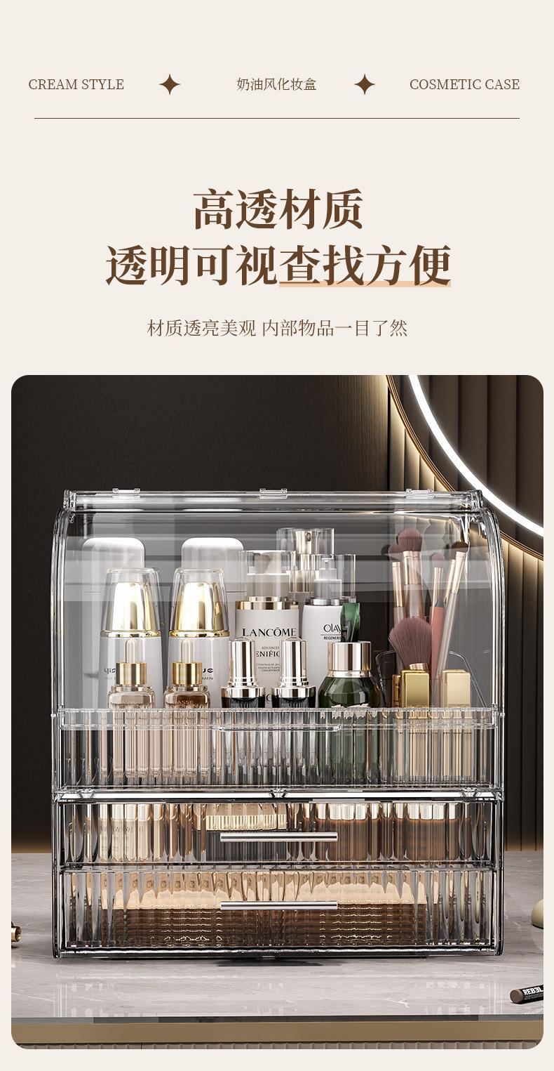 Caja de almacenamiento de cosméticos de escritorio, a prueba de polvo, para tocador, productos para el cuidado de la piel, estante de almacenamiento de lápiz labial, caja de almacenamiento de acrílico transparente, gabinete
