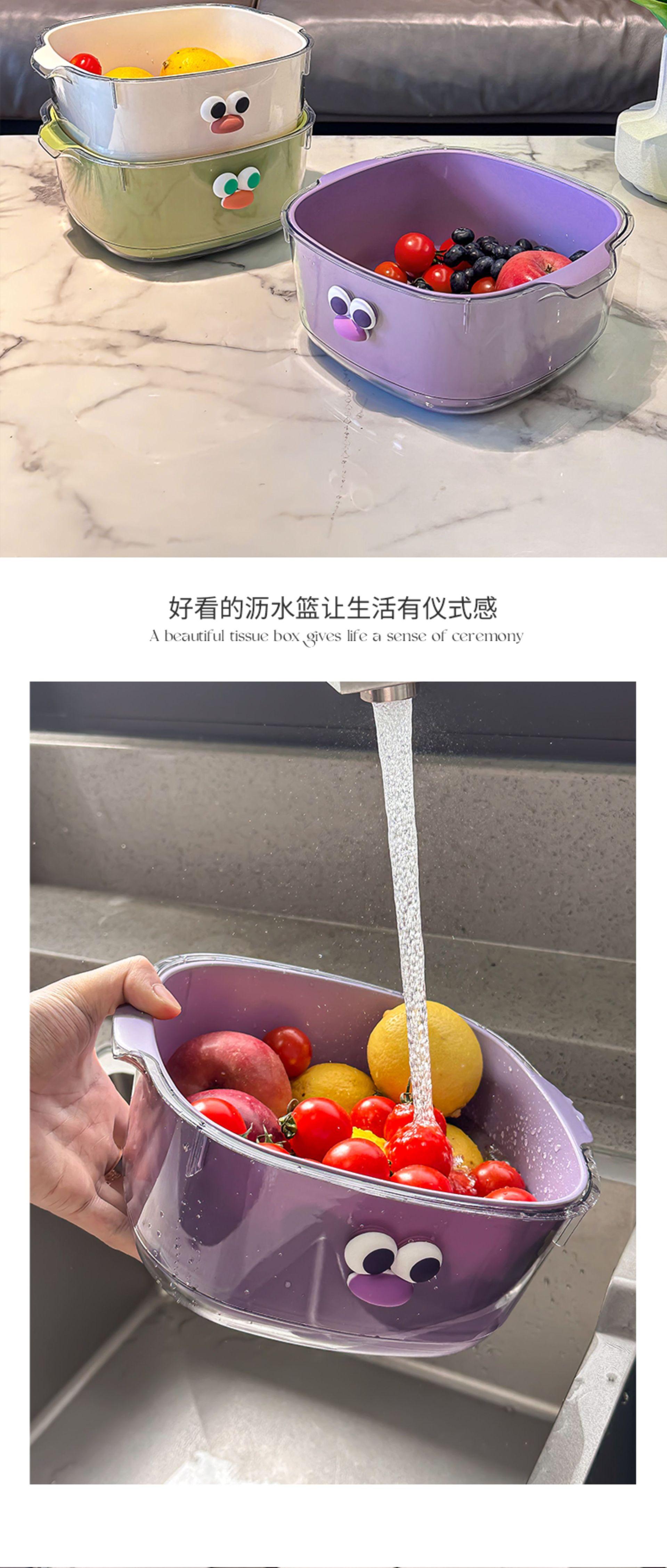 Cesta de drenaje de dopamina de doble capa, bonita cesta de frutas para el hogar, filtro de agua para limpieza, plato de fruta espesado dos en uno, cesta para lavar verduras