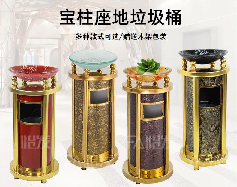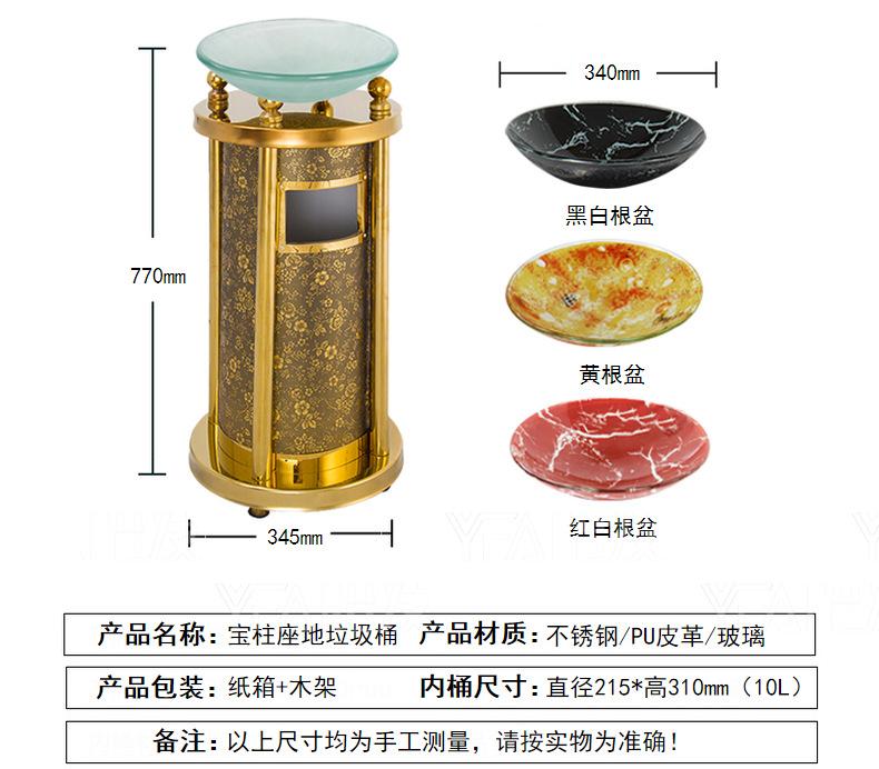 Bote de Basura de Pilar de Acero Inoxidable Cubo de Cenizas Redondo Estilo Europeo Tubo de Cuero Hotel Club Pasillo Elevador Caja de Cenizas