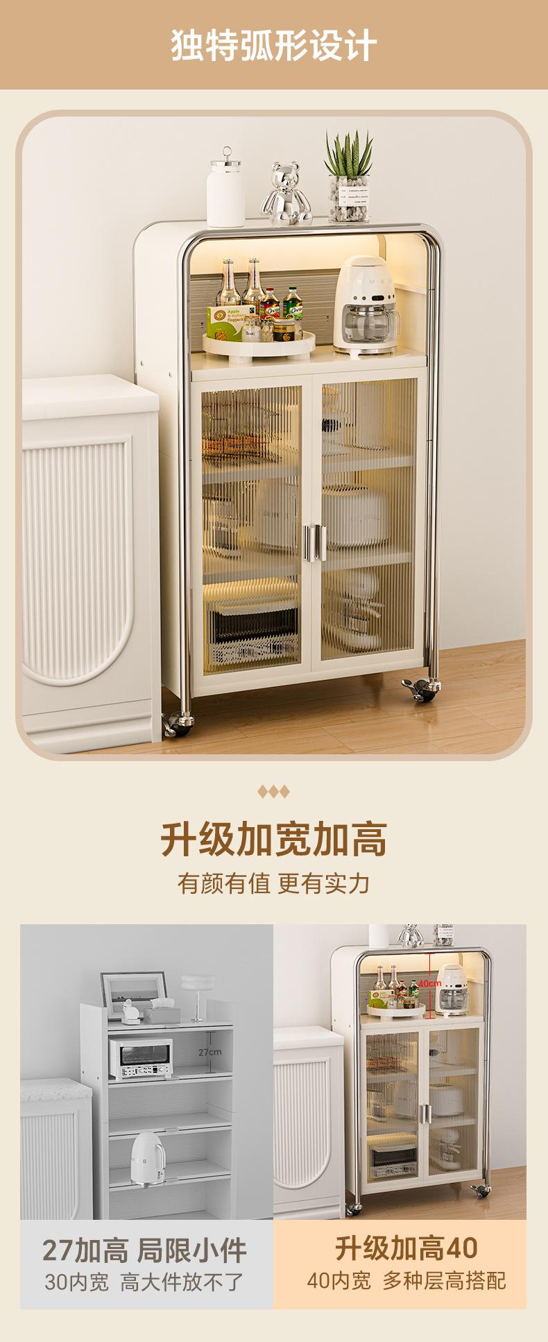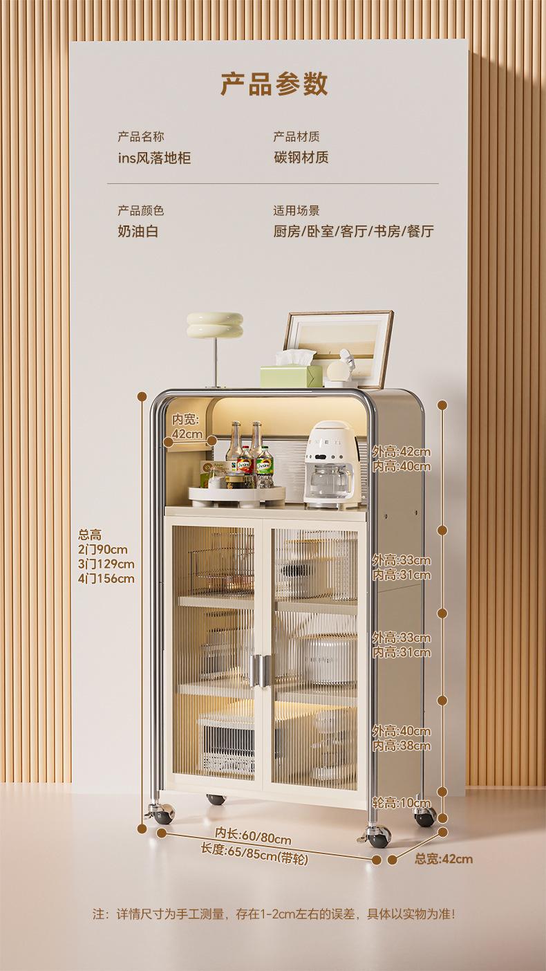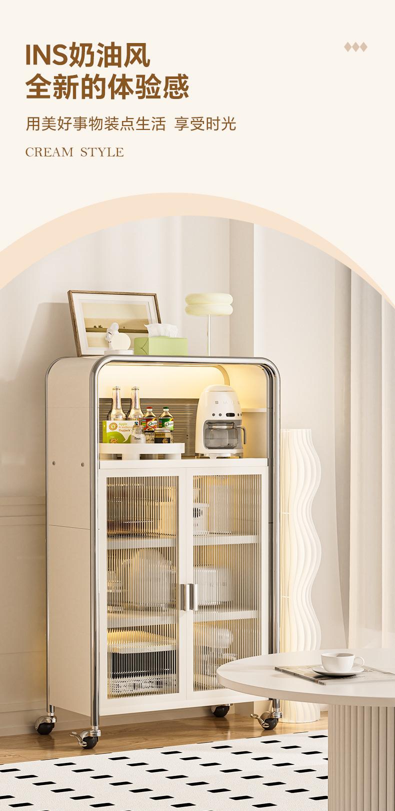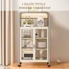 Estante de cocina de estilo crema, armario de almacenamiento multicapa, aparador de suelo para el hogar, armario de almacenamiento multifuncional.
