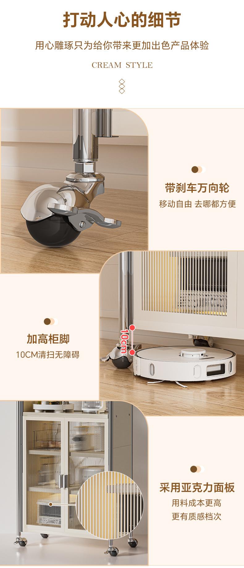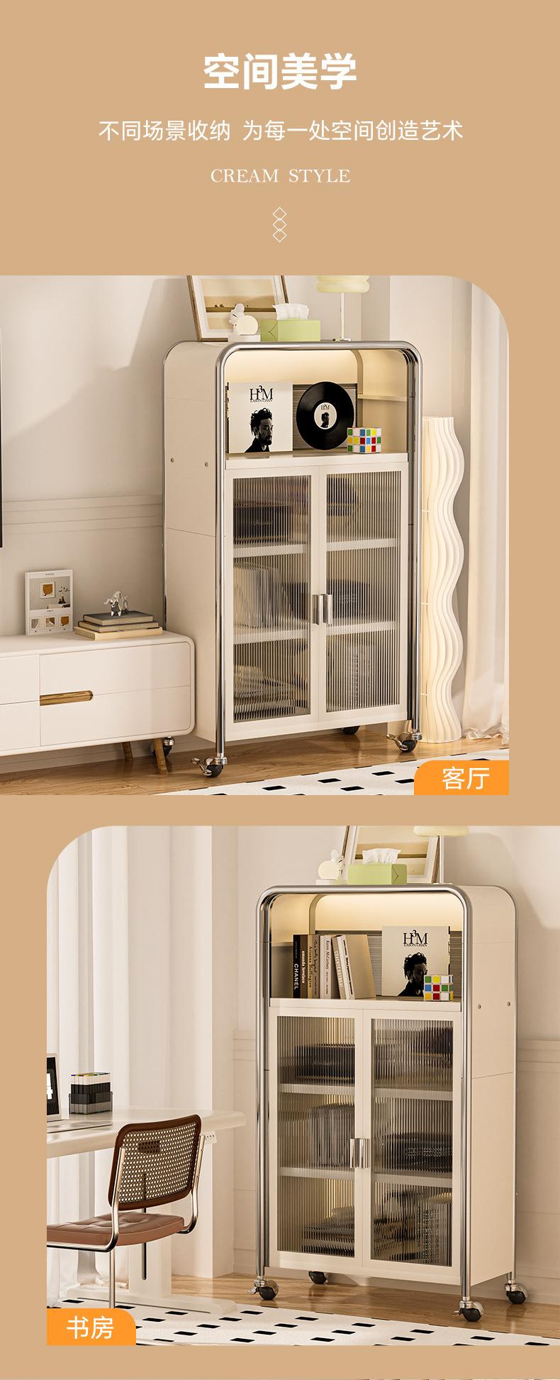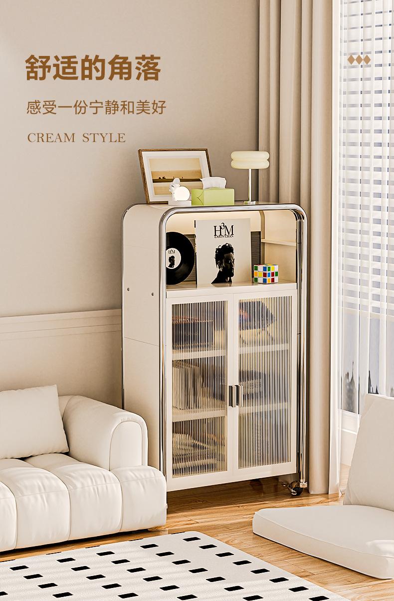 Estante de cocina de estilo crema, armario de almacenamiento multicapa, aparador de suelo para el hogar, armario de almacenamiento multifuncional.