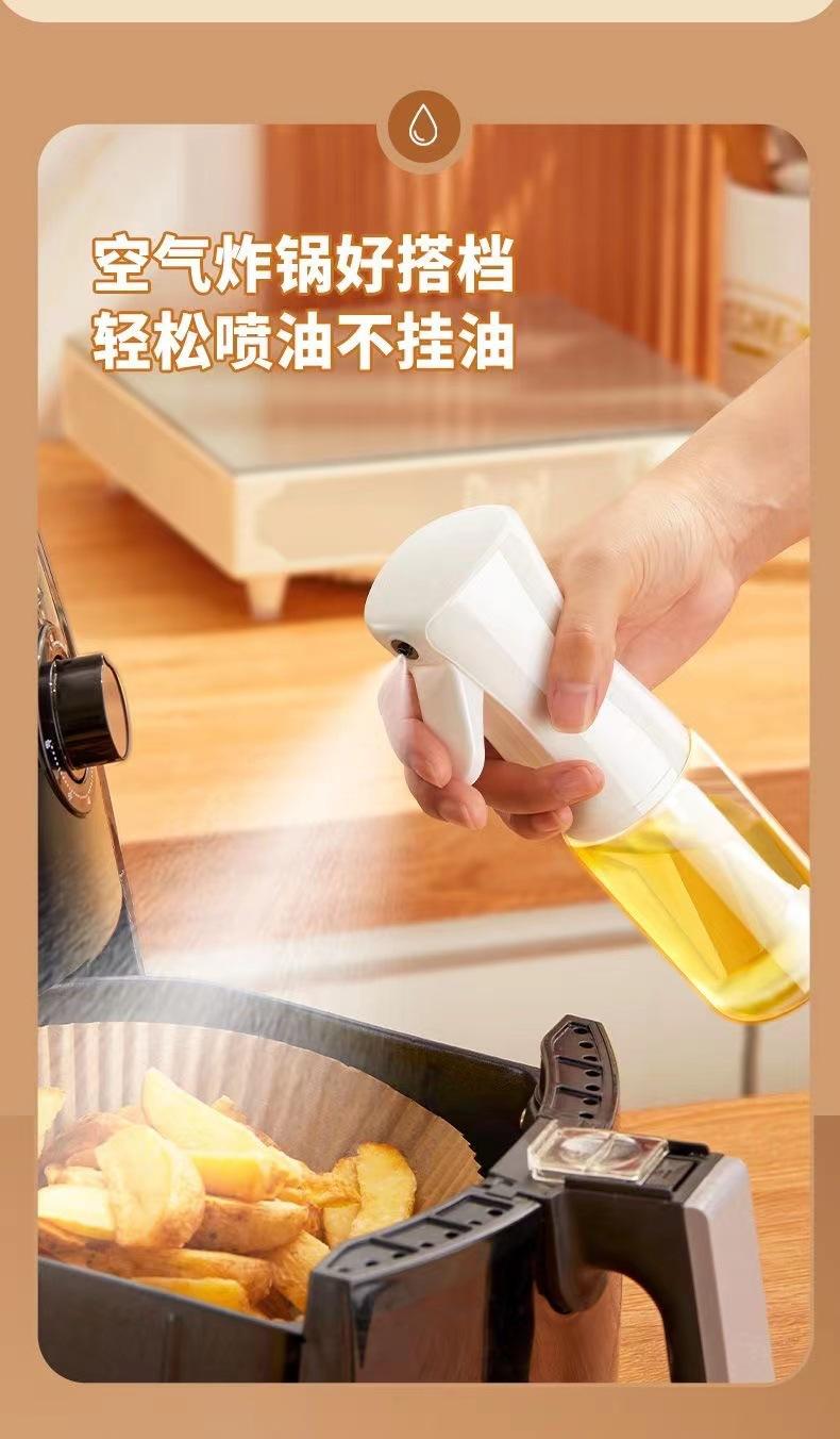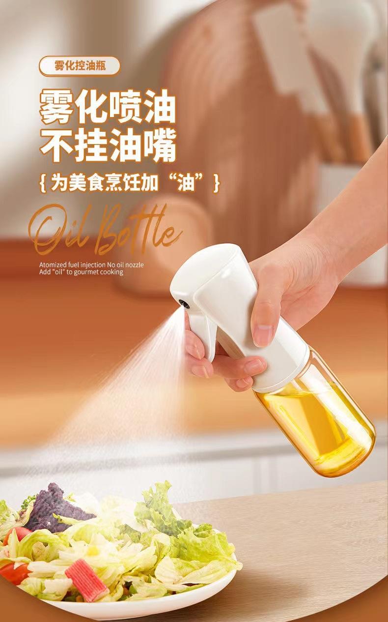 Aceitera de cocina doméstica, tipo prensa, botella de vidrio con pulverizador, aceite comestible de grado alimenticio, atomizador, antifugas, sin goteo.