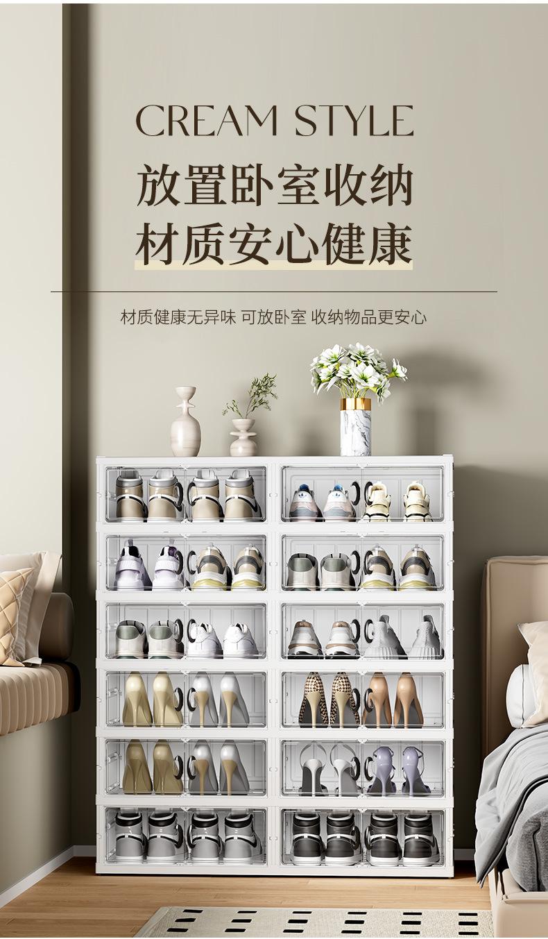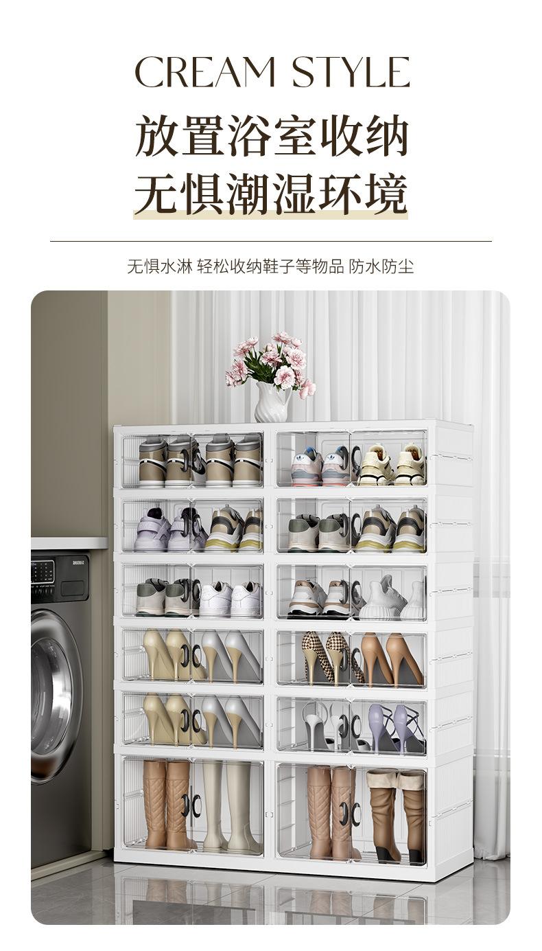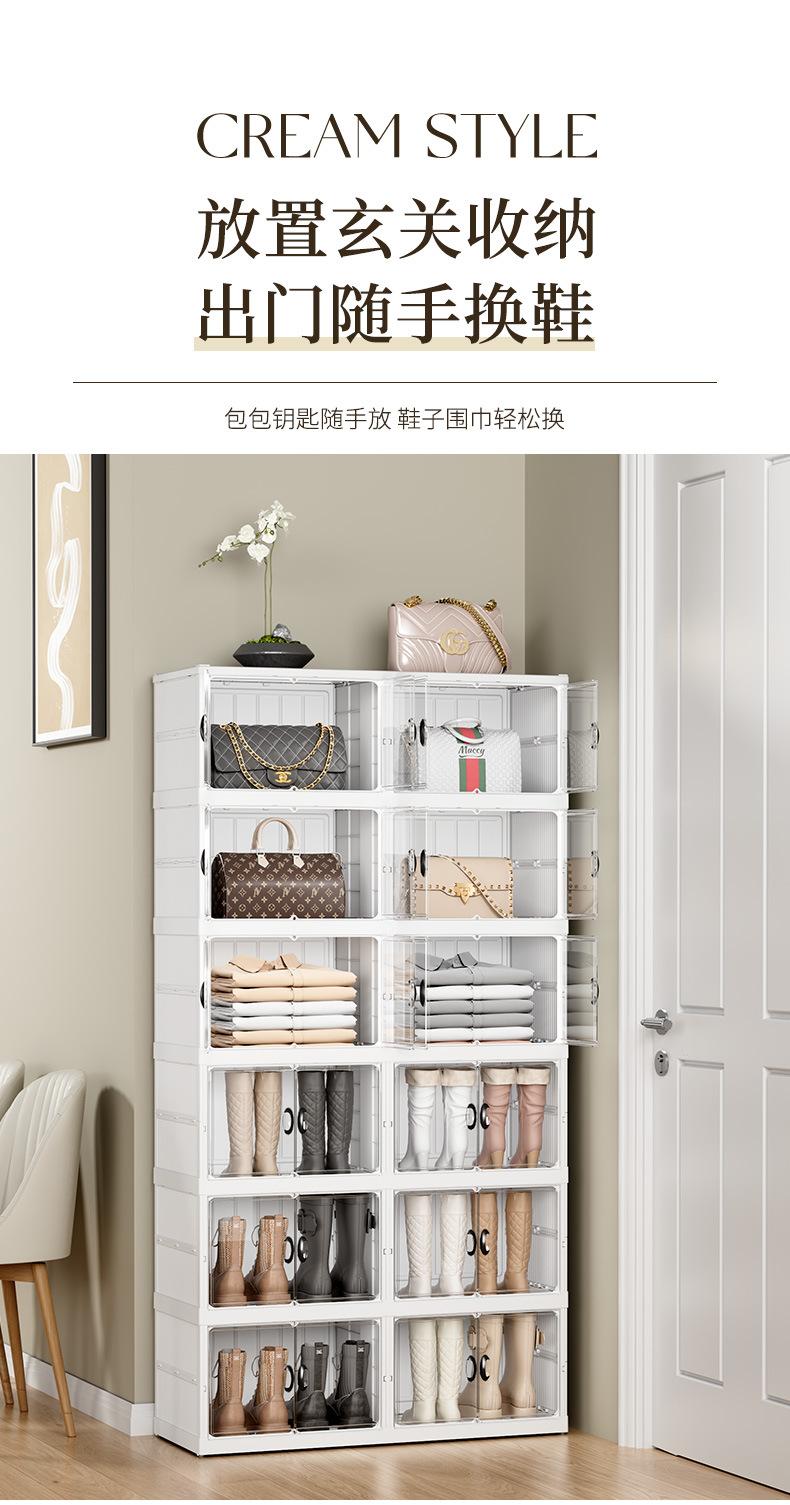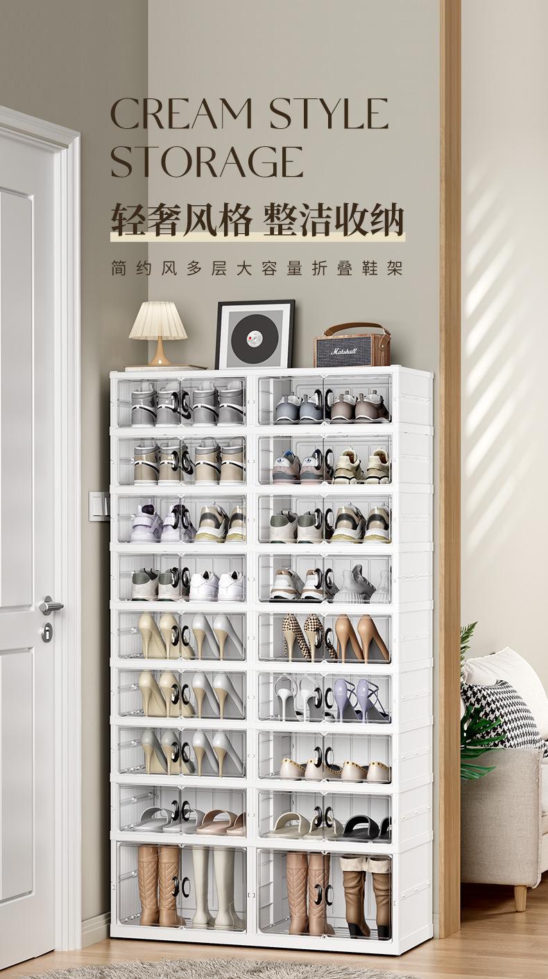 Caja de zapatos plegable de cuatro filas sin instalación transfronteriza, caja de almacenamiento de zapatos transparente con atracción magnética, zapatero de plástico, gabinete de zapatos integrado