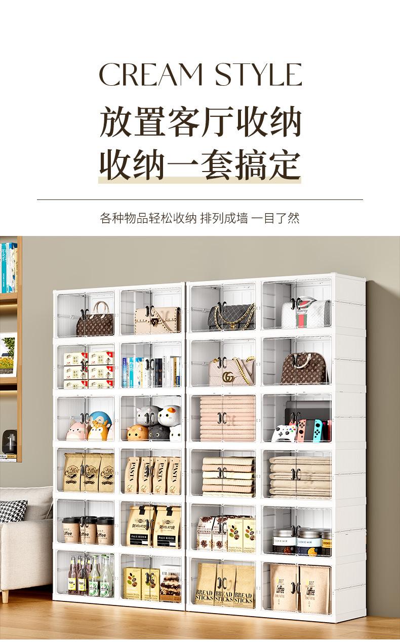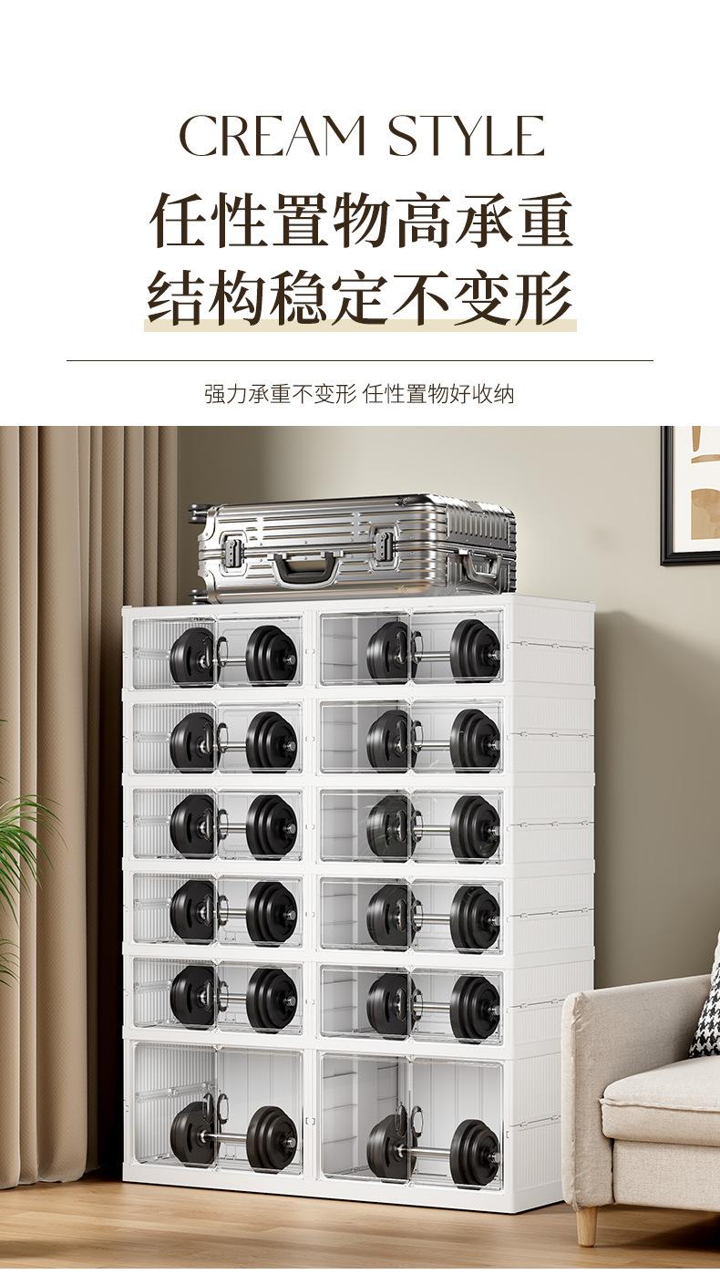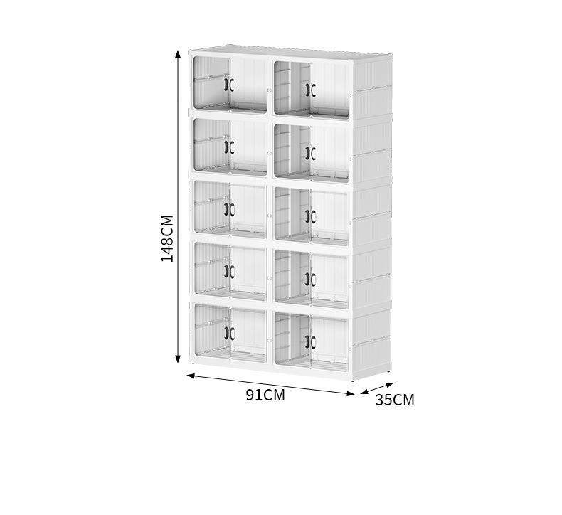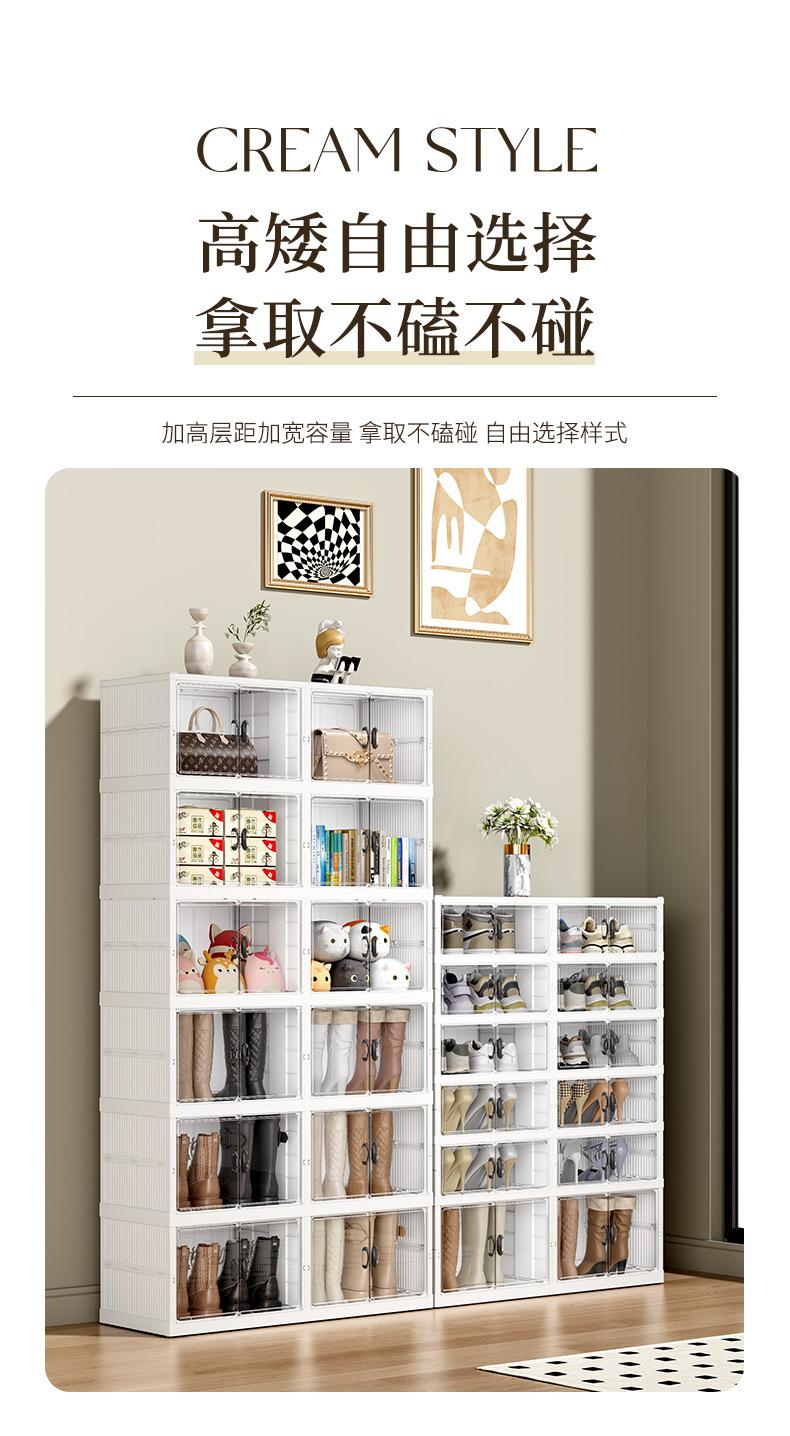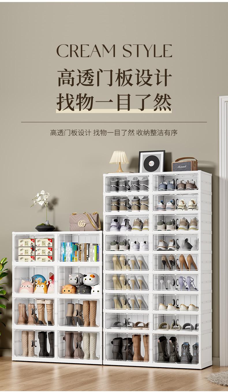 Caja de zapatos plegable de cuatro filas sin instalación transfronteriza, caja de almacenamiento de zapatos transparente con atracción magnética, zapatero de plástico, gabinete de zapatos integrado