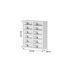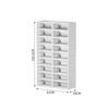Four rows of white 6 short (no wheel-can hold 24 pairs of shoes), Four rows of white, one high and five short ...