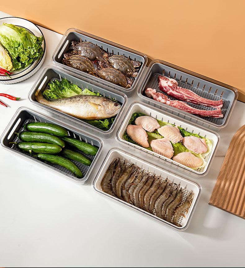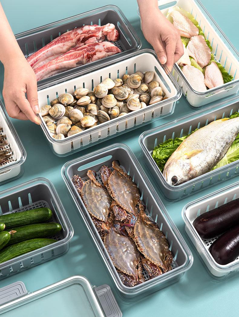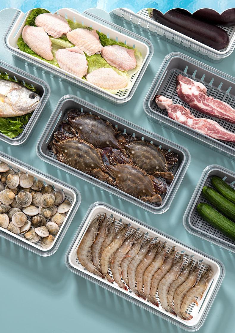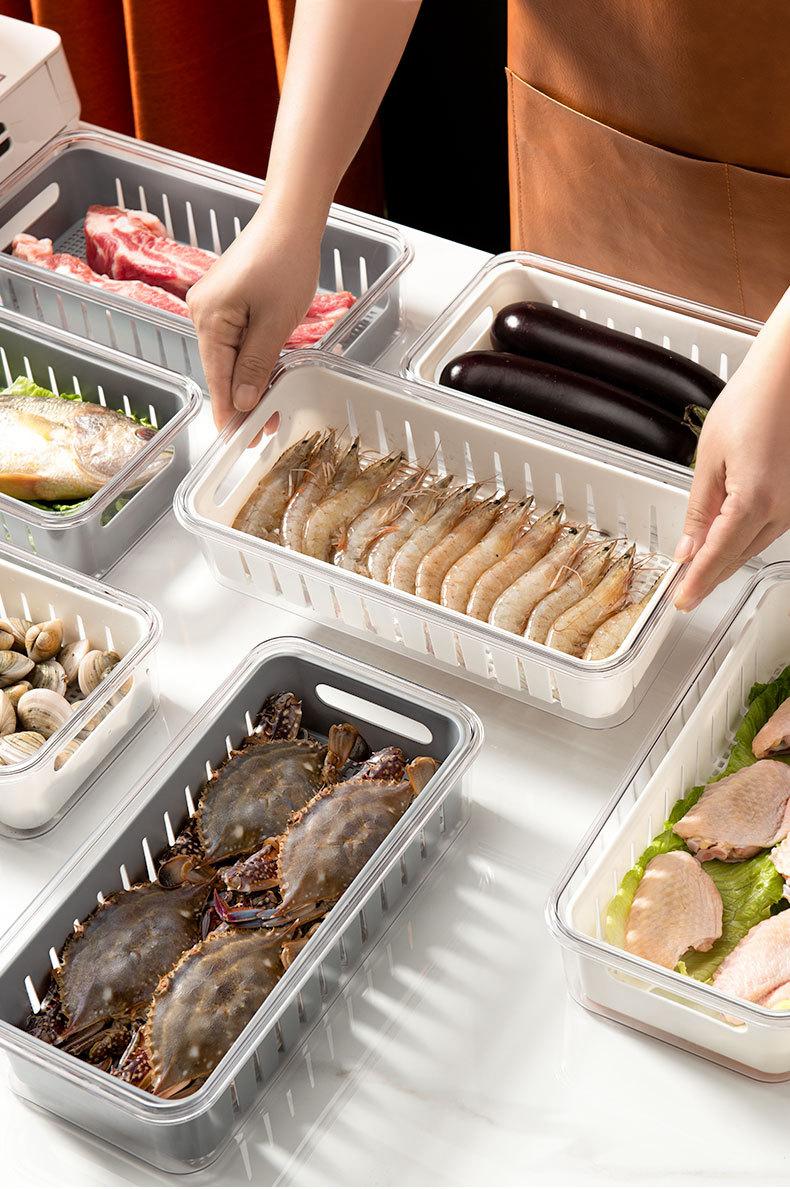 Caja de almacenamiento para refrigerador, escurridor de mariscos, caja de conservación de alimentos frescos, escurridor de grado alimenticio con tapa, caja de congelación para almacenamiento en la cocina