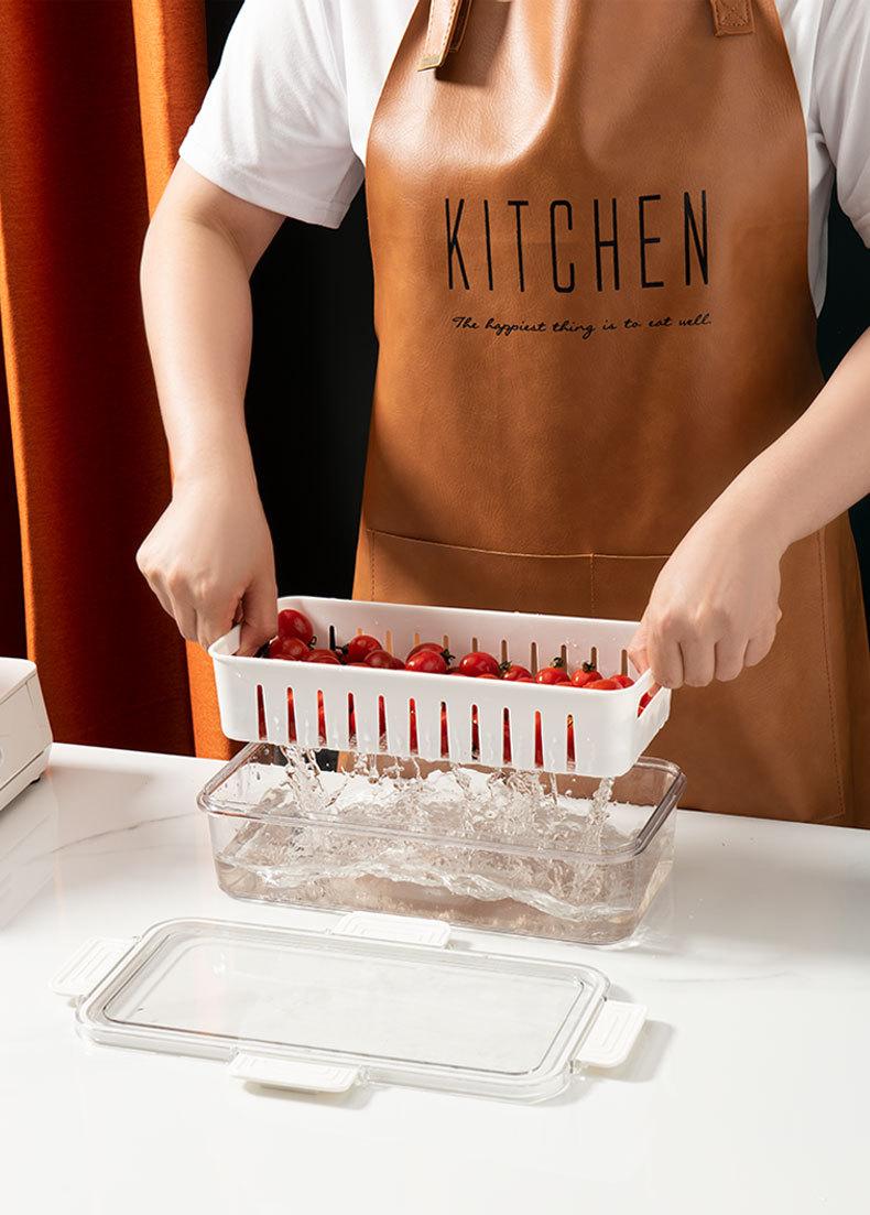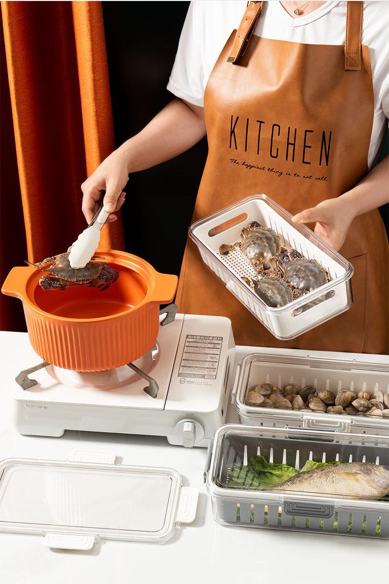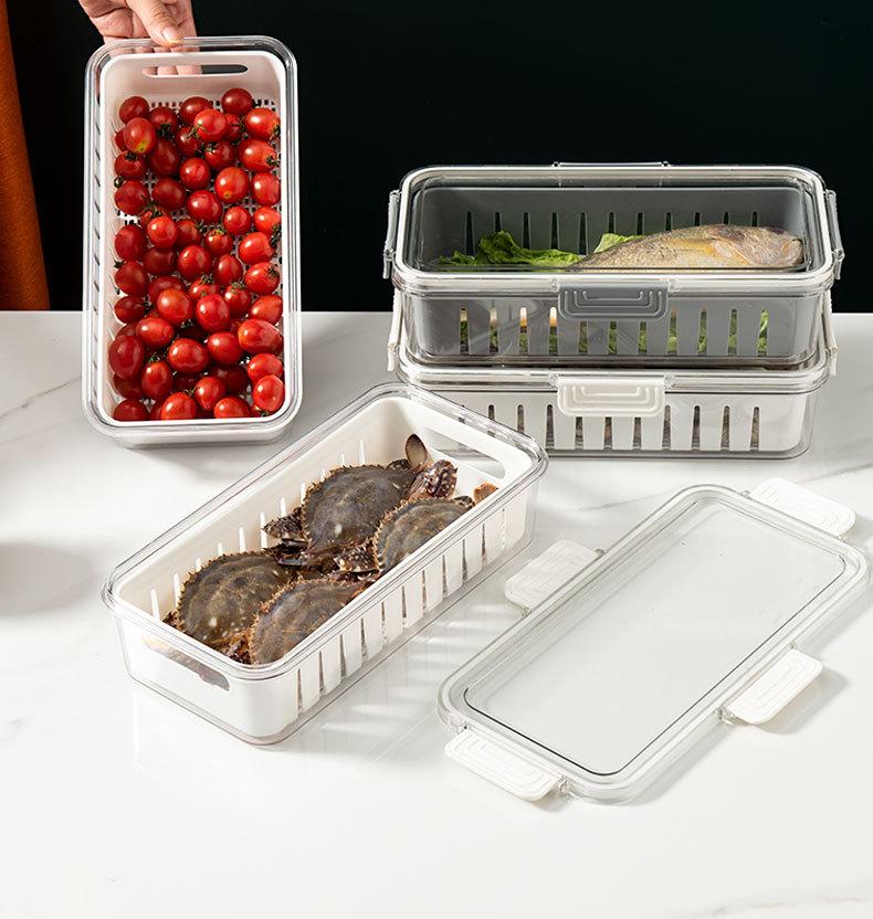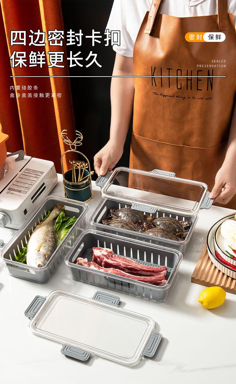 Caja de almacenamiento para refrigerador, escurridor de mariscos, caja de conservación de alimentos frescos, escurridor de grado alimenticio con tapa, caja de congelación para almacenamiento en la cocina
