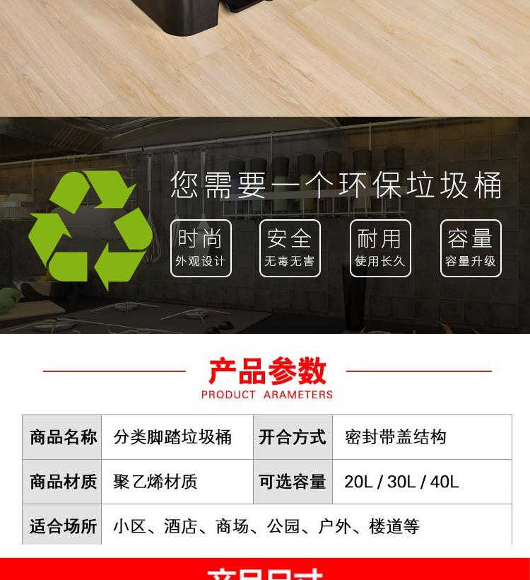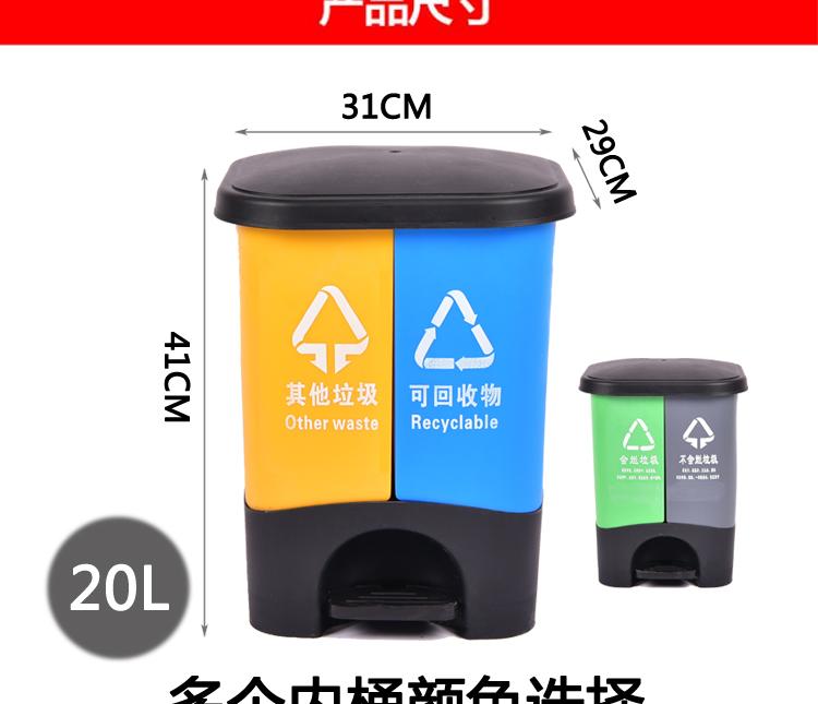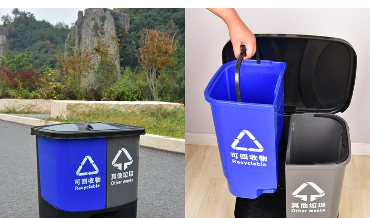Bote de basura de clasificación 40L30l20 L pedal tubo hogar cocina sala de estar pedal doble barril cubo de una pieza cuadrado creativo